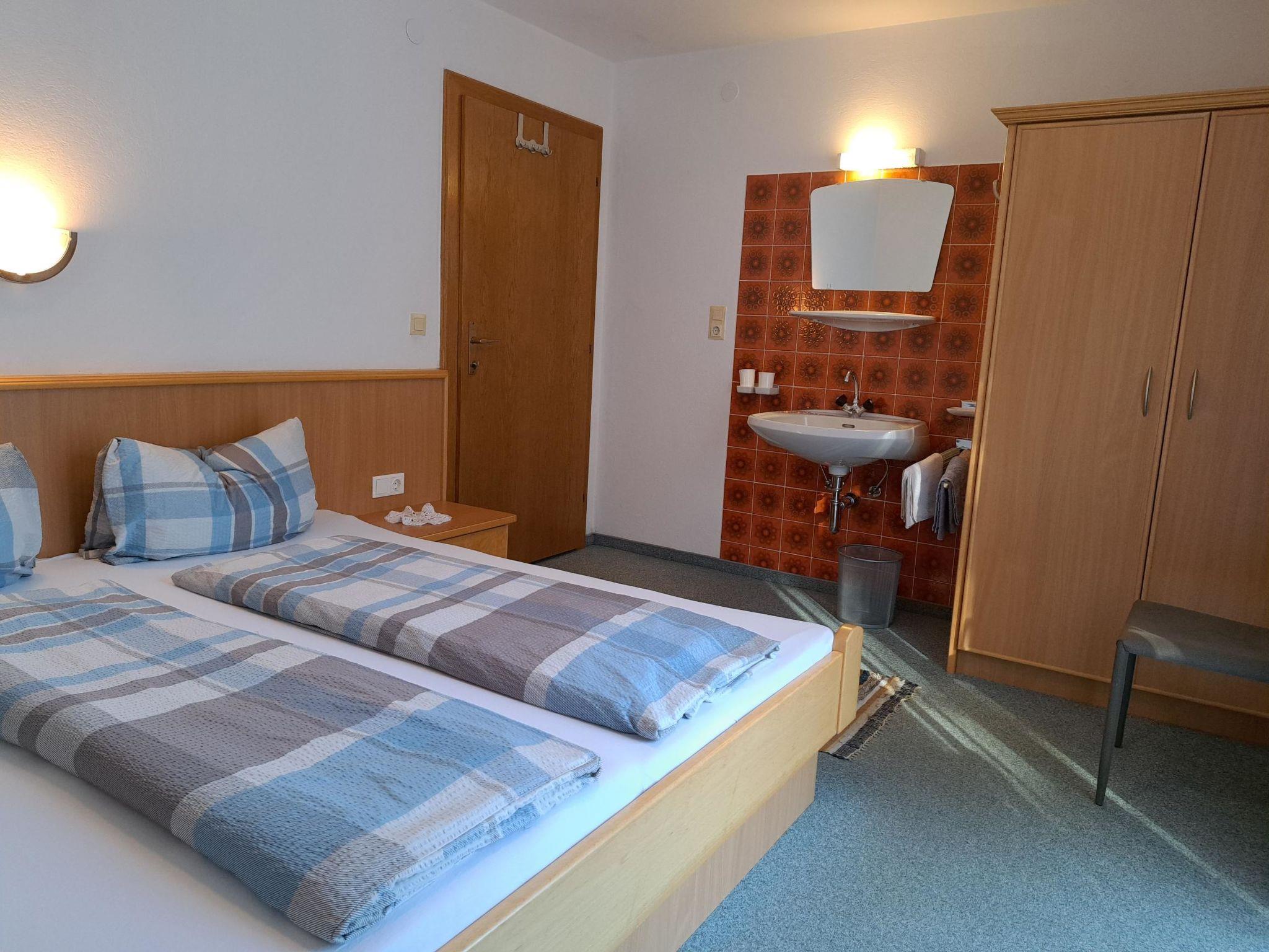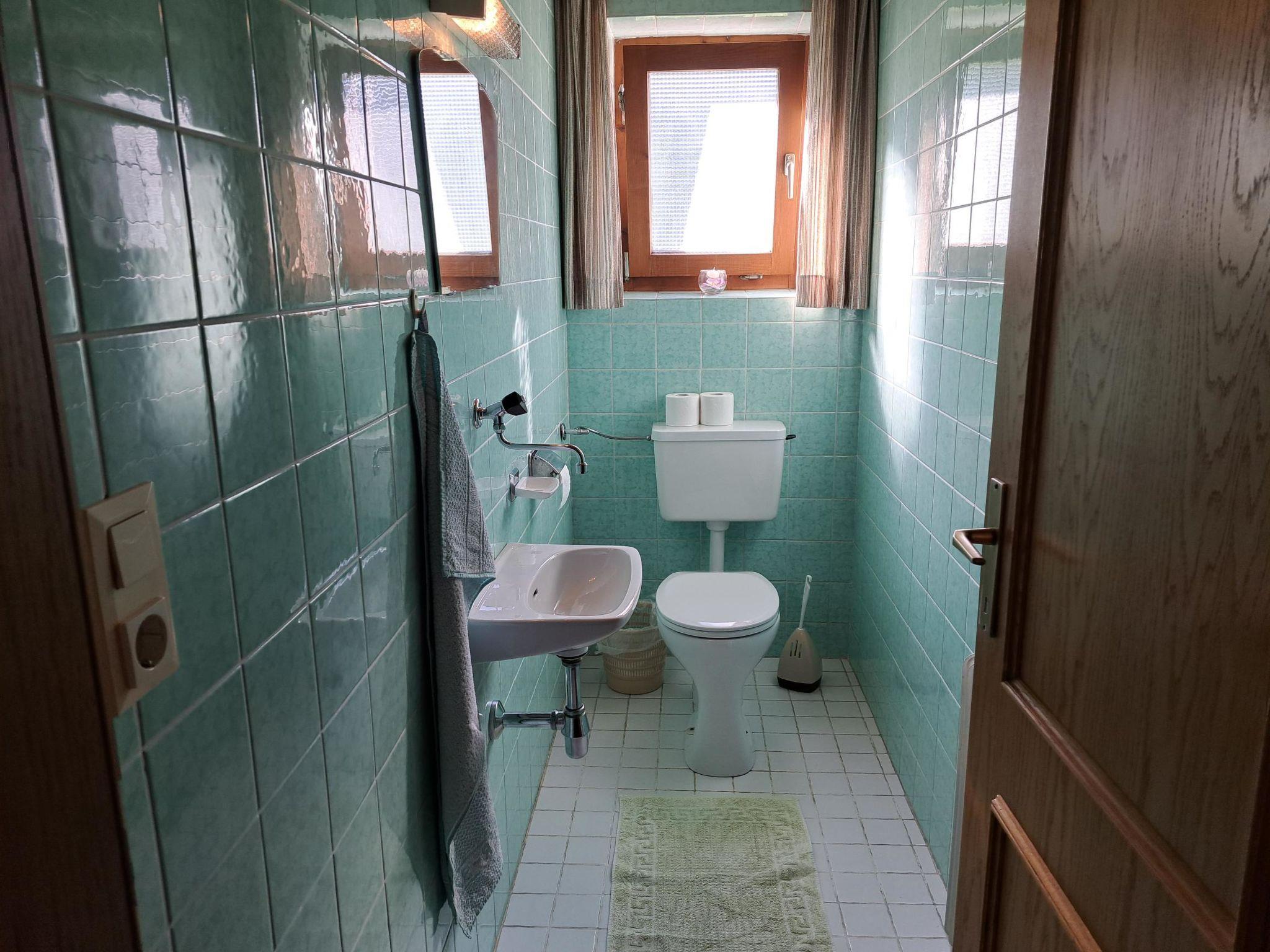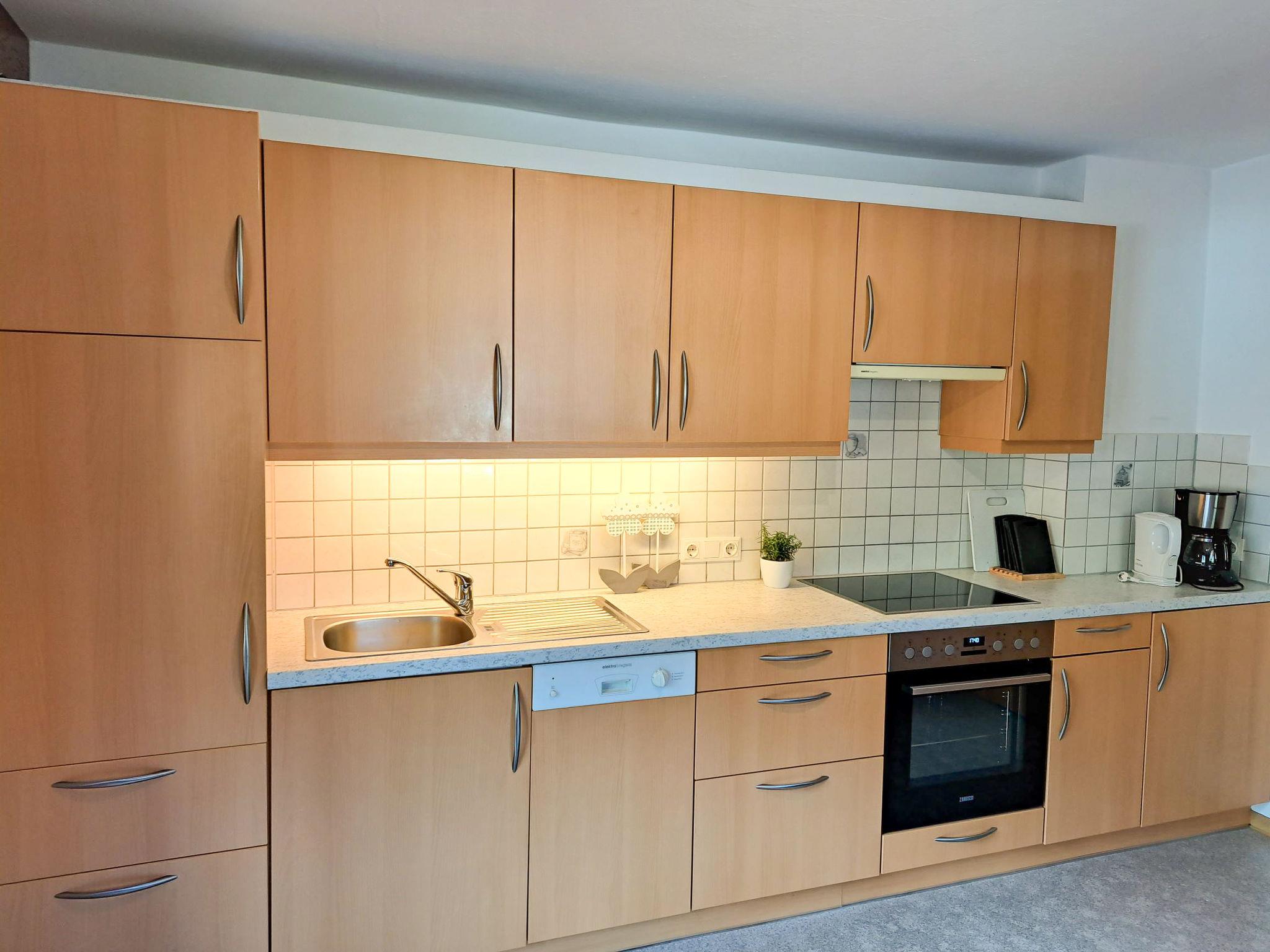 4-room apartment 70 m2 on 1st floor. Practical furnishings: 1 room with 1 bed, 1 double bed and hand-basin. Exit to the balcony. 1 double bedroom with hand-basin. Exit to the balcony. 1 room with 1 bed and hand-basin. Kitchen-/living room (oven, dishwasher, 4 ceramic glass hob hotplates, toaster, kettle, electric coffee machine) with dining table and satellite TV. Exit to the balcony. Shower, sep. WC. Oil heating. Carpet. Balcony, patio roofed, small garden, lawn. Terrace furniture, barbecue (portable). Facilities: children's high chair, baby cot. Internet (WiFi, free). Please note: non-smokers only. Smoke alarm. When there are less than the maximum number of guests staying at the property, not all of the bedrooms will be available for use.
