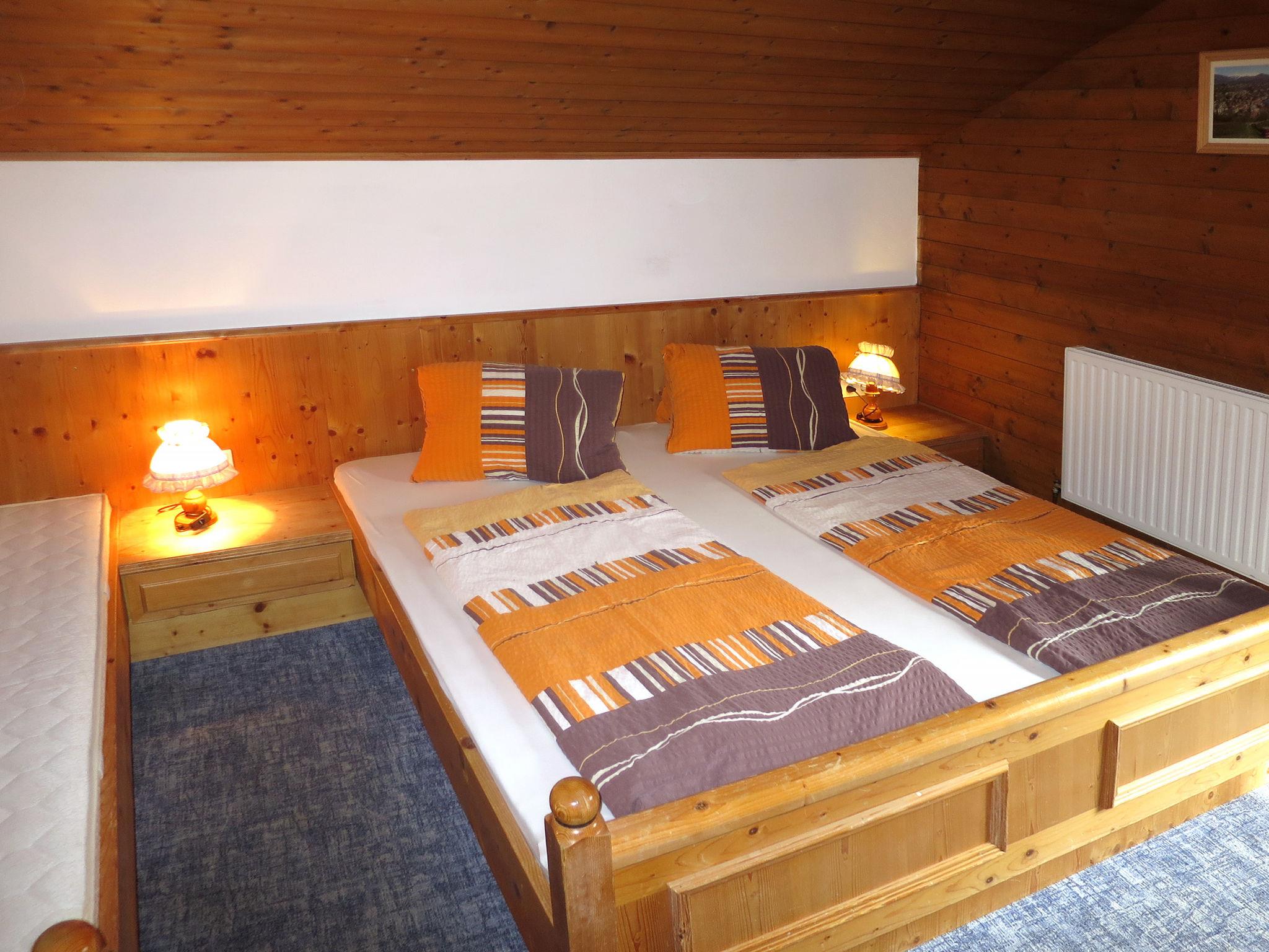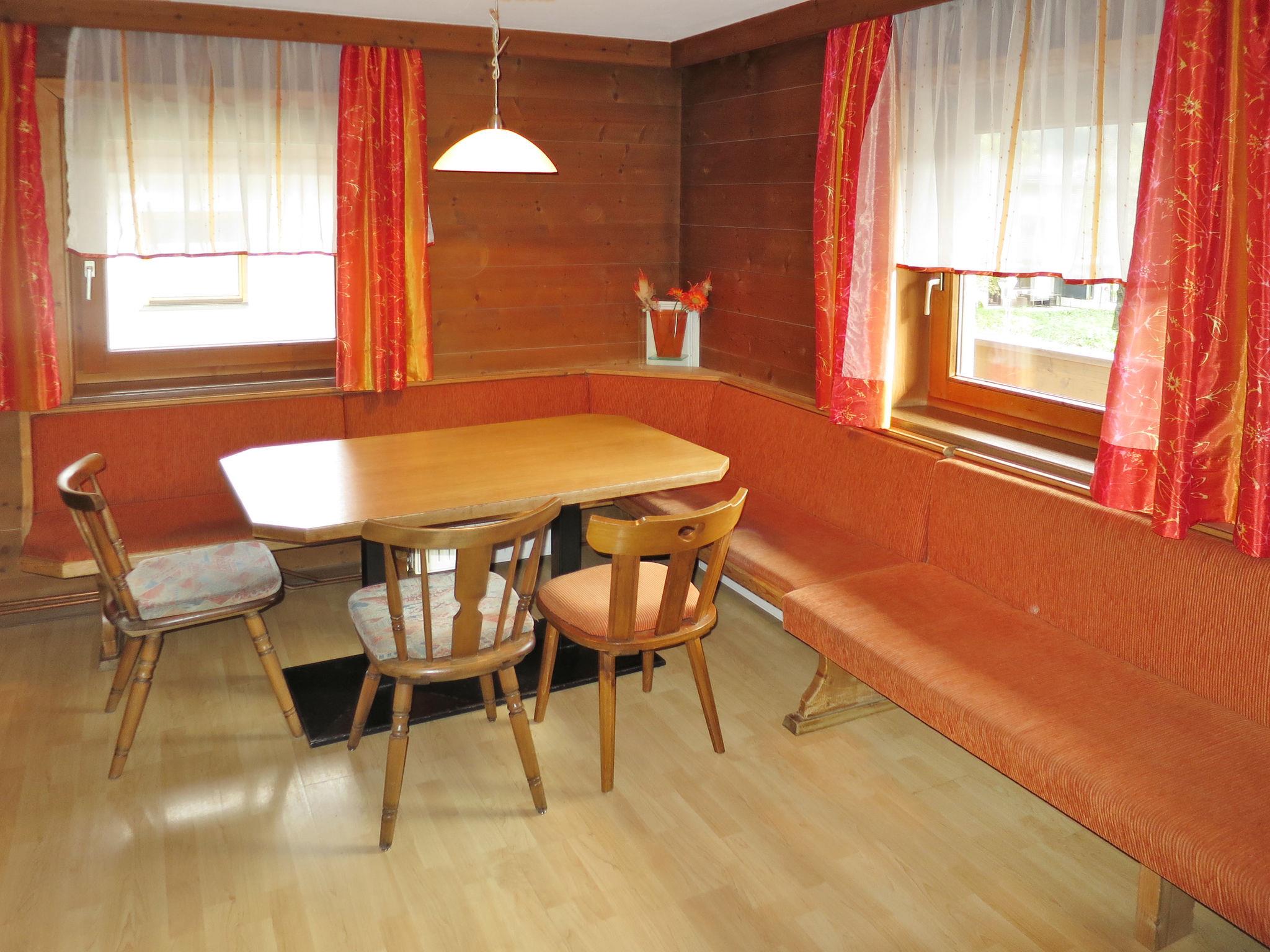 "Eberharter", 7-room apartment 150 m2 on 2 levels. Cosy and wooden furniture furnishings: upper floor: living room with dining table, satellite TV, DVD and tiled stove. 1 double bedroom. 1 room with 1 bed and 1 double bed. Kitchen (oven, dishwasher, 4 ceramic glass hob hotplates, kettle, electric coffee machine) with dining table. Bath/WC, sep. WC, double hand-basin. 2nd upper floor: 2 rooms, each room with 1 bed and 1 double bed. Exit to the balcony. 1 small room with sloping ceilings with 1 french bed. Kitchen-/living room (4 hot plates, oven, dishwasher, toaster, kettle, electric coffee machine) with dining table, satellite TV and DVD. Shower, sep. WC. Carpet. Balcony 10 m2, balcony 20 m2. Balcony furniture. Facilities: Internet (WiFi, free). Please note: one double bedroom is outside the apartment. Non-smokers only. Fire extinguisher. No internal connecting door between the floors.
