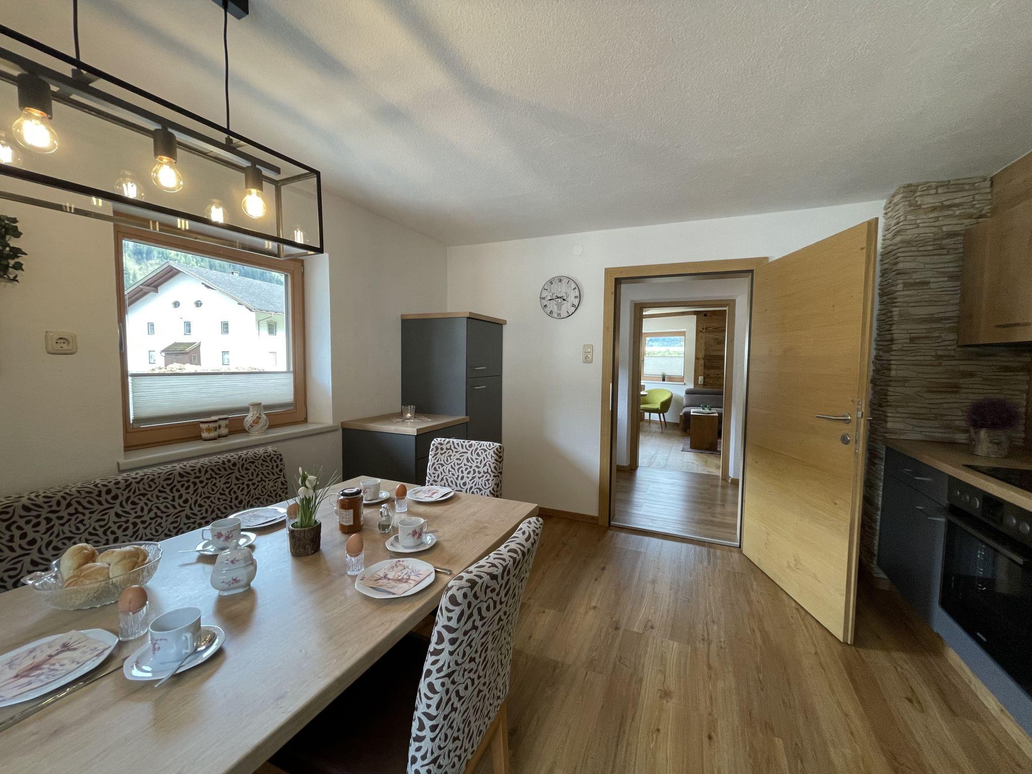 "Eberharter", 3-room apartment 80 m2, on the upper ground floor. Object suitable for 4 adults + 2 children. Renovated in 2018, cosy and wooden furniture furnishings: living/sleeping room with 1 double sofabed and satellite TV. 2 double bedrooms. Kitchen (oven, dishwasher, 4 ceramic glass hob hotplates, toaster, kettle, freezer, electric coffee machine) with dining nook. Bath/WC. Wooden floors. Facilities: Internet (WiFi, free). Please note: non-smokers only. Private entrance, fire extinguisher.