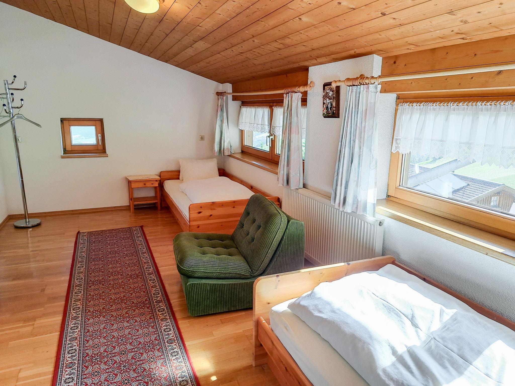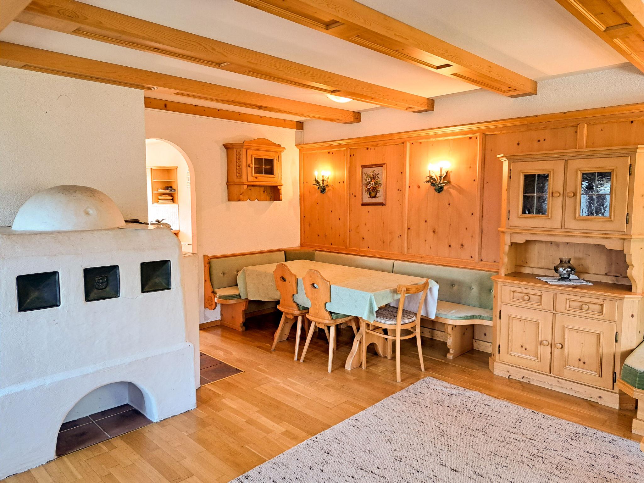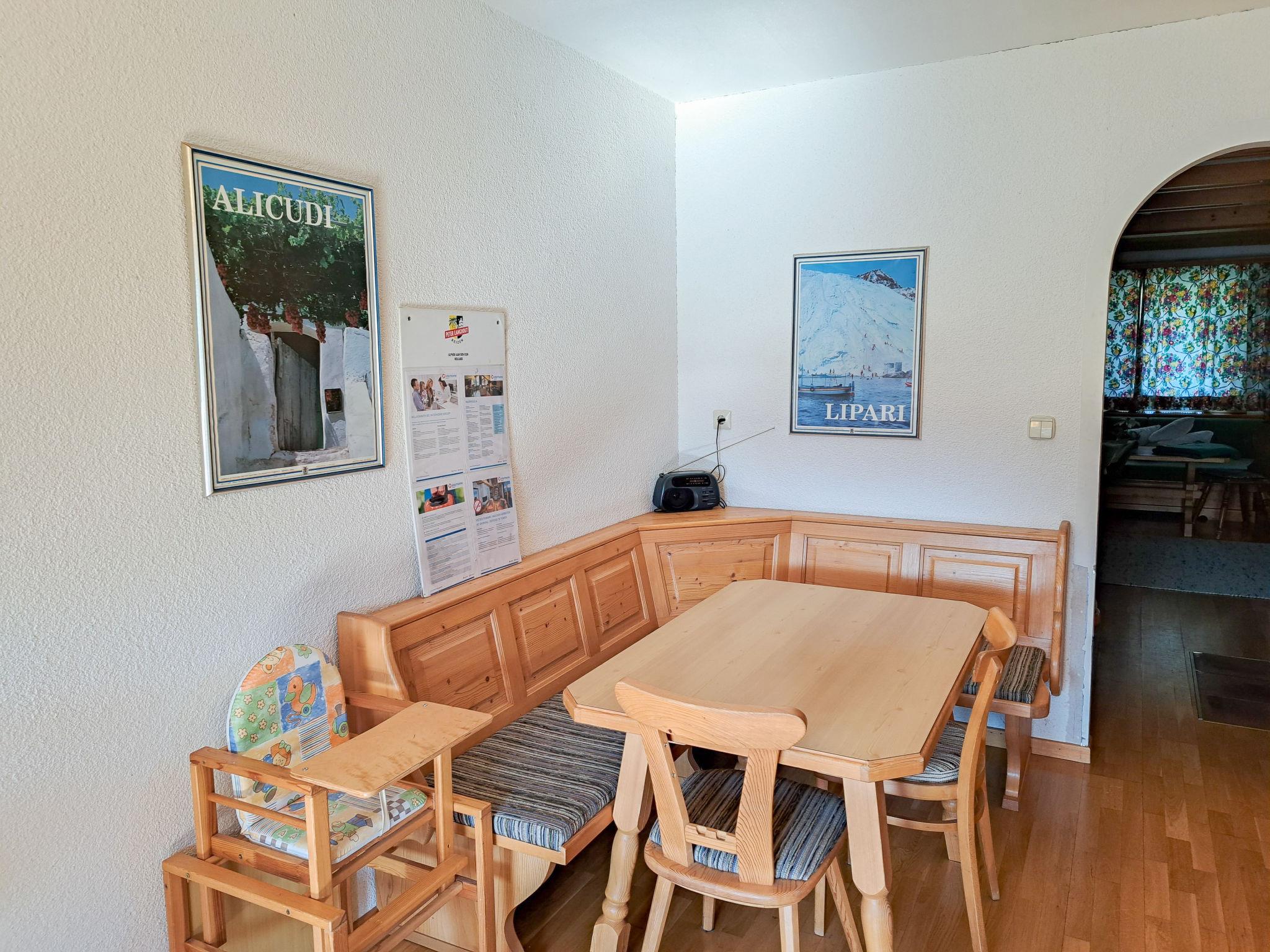 "Ragusa", 6-room terraced house 160 m2 on 3 levels. Cosy furnishings: 1 room with 1 bed, 1 double bed, hand-basin and shower. Exit to the balcony. 1 room with 2 beds, hand-basin and shower. Sep. WC. Upper floor: living room with dining nook, satellite TV and tiled stove. Exit to the balcony. 1 room with 1 double sofabed. Exit to the balcony. Open kitchen (oven, dishwasher, 4 ceramic glass hob hotplates, toaster, kettle, electric coffee machine) with dining nook. Exit to the balcony. 2nd upper floor: 1 room with sloping ceilings with 1 bed, 1 double bed and separate WC. 1 room with sloping ceilings with 2 beds and separate WC. Bath/shower, double hand-basin. Oil heating. Parquet floors. Balcony. Beautiful view of the mountains and the valley. Facilities: children's high chair, baby cot. Please note: non-smoking house. Smoke alarm, fire extinguisher.