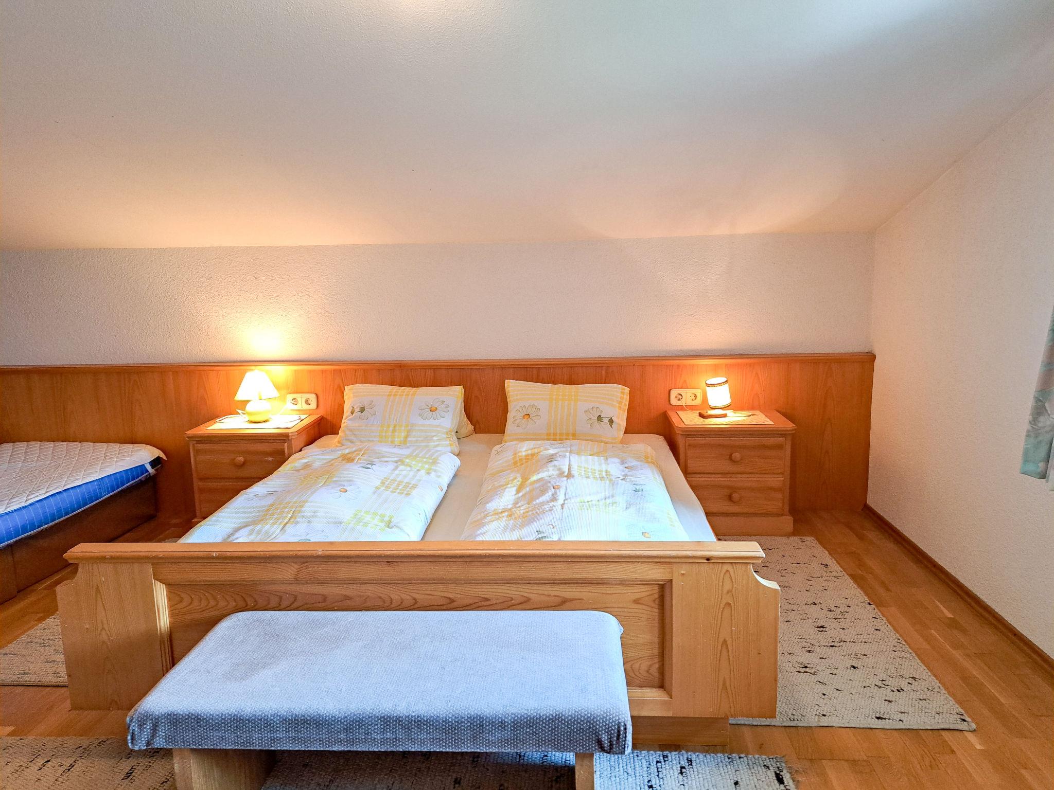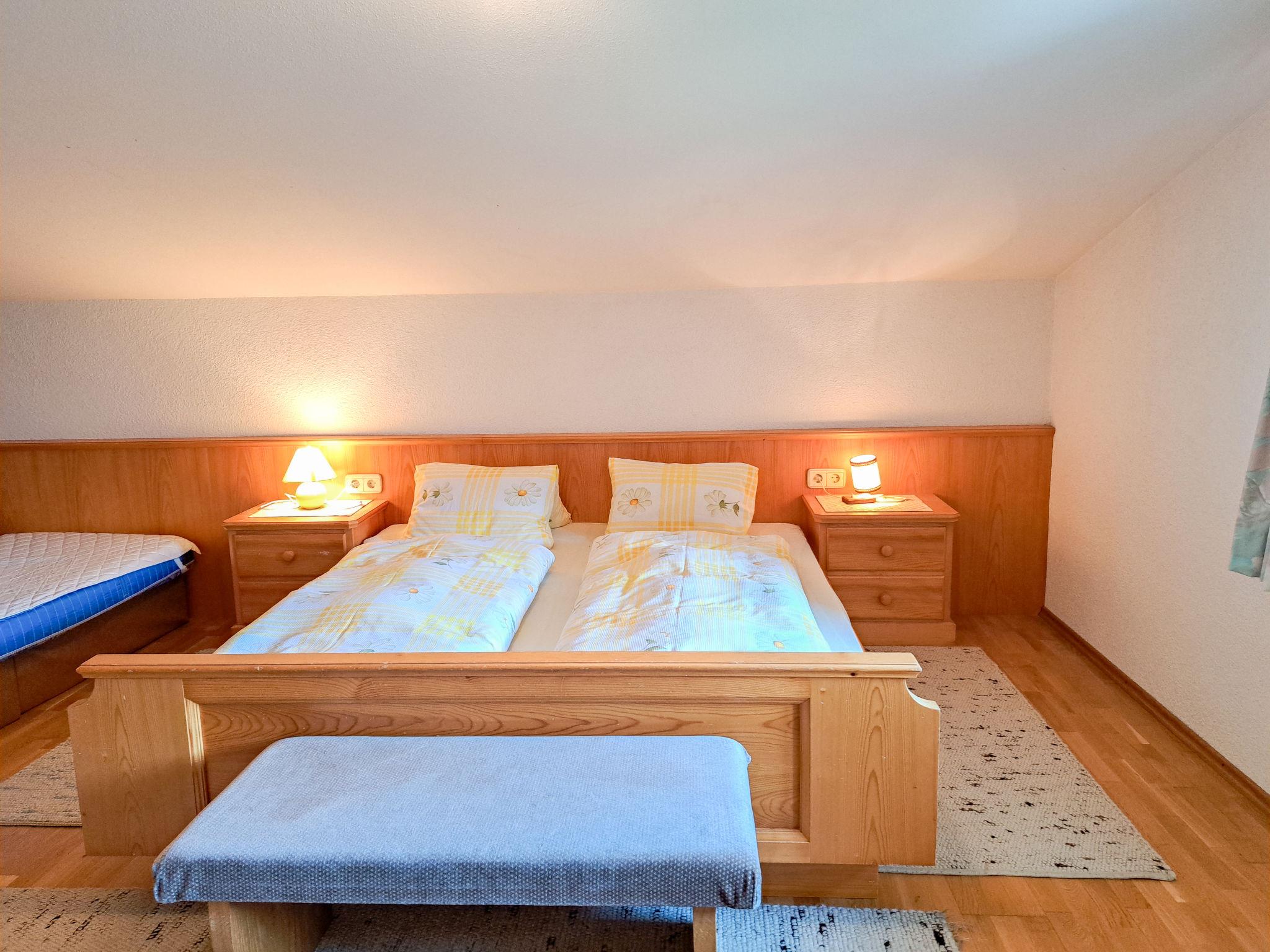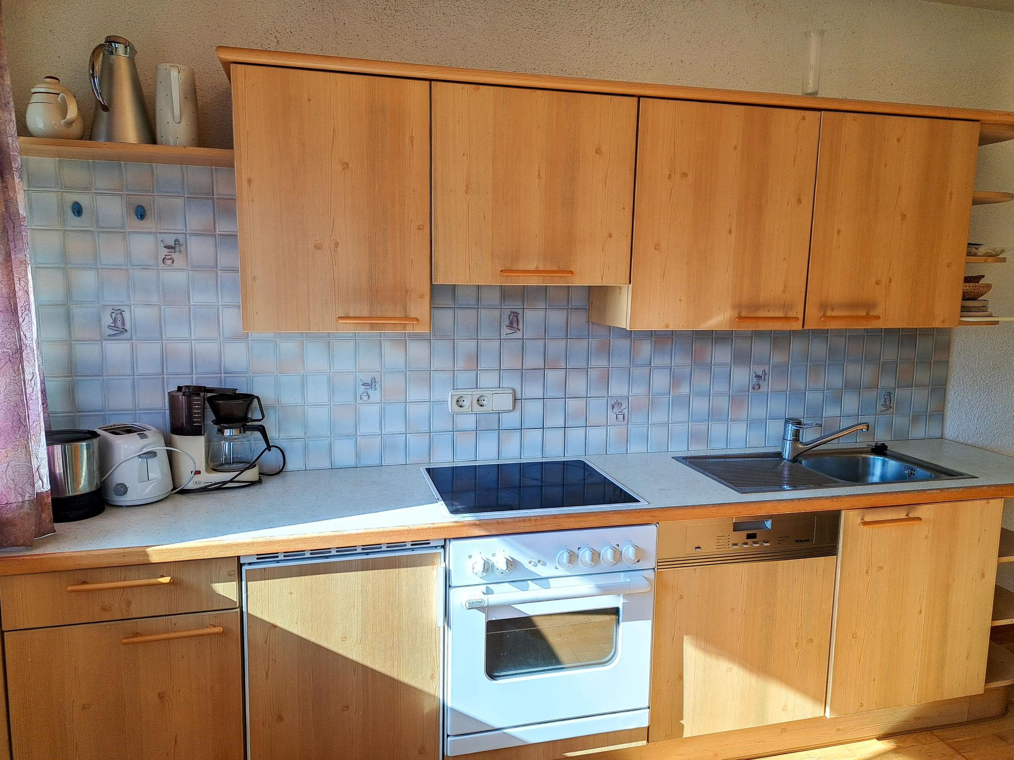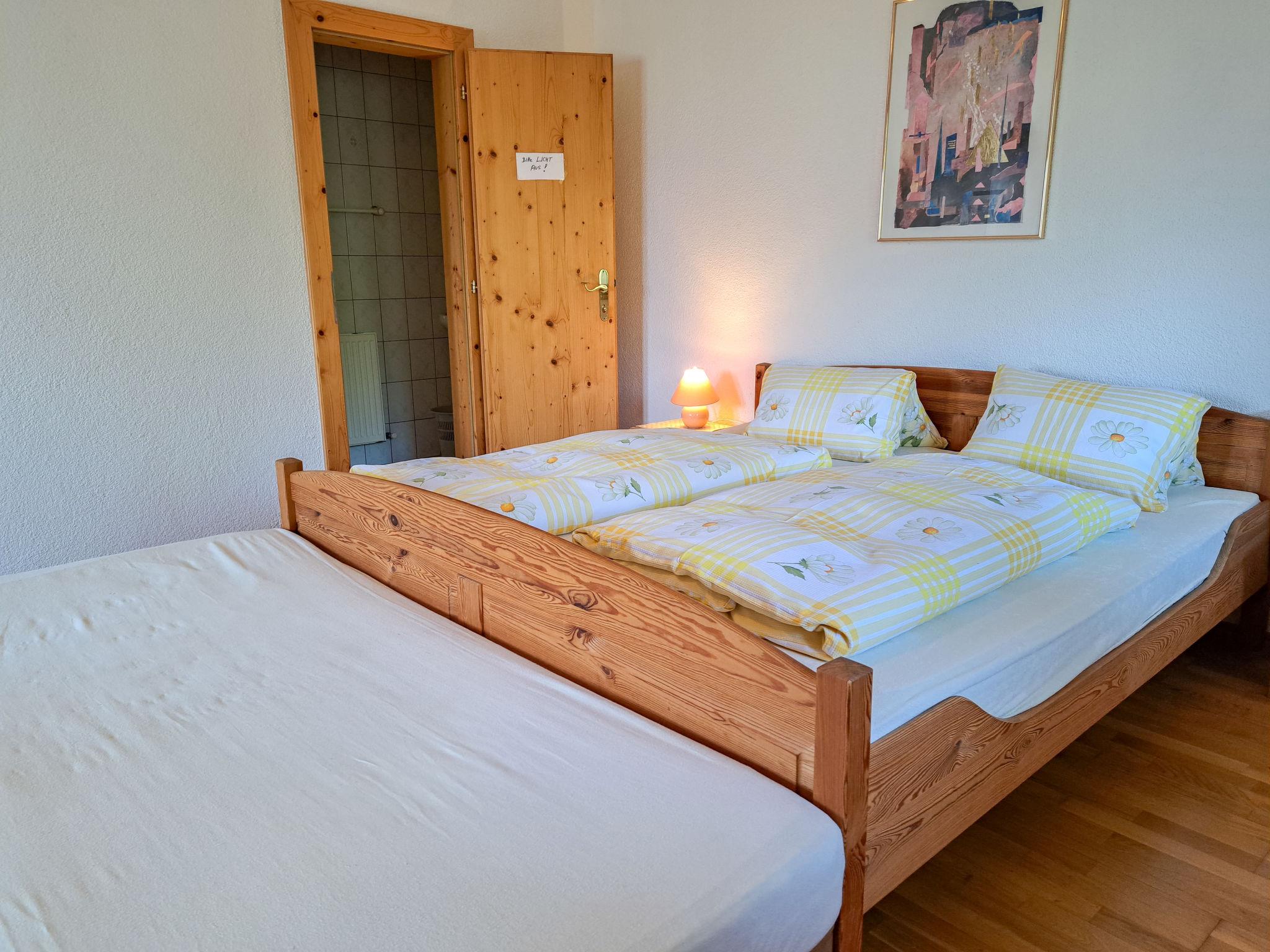 "Ragusa", 6-room terraced house 160 m2 on 3 levels. Cosy furnishings: 1 room with 1 bed, 1 double bed, hand-basin and shower. Exit to the balcony. 1 room with 2 beds, hand-basin and shower. Sep. WC. Upper floor: living room with dining nook, satellite TV and tiled stove. Exit to the balcony. 1 room with 1 double sofabed. Exit to the balcony. Open kitchen (oven, dishwasher, 4 ceramic glass hob hotplates, toaster, kettle, electric coffee machine) with dining nook. Exit to the balcony. 2nd upper floor: 1 room with sloping ceilings with 1 bed, 1 double bed and separate WC. 1 room with sloping ceilings with 2 beds and separate WC. Bath/shower, double hand-basin. Oil heating. Parquet floors. Balcony. Beautiful view of the mountains and the valley. Facilities: children's high chair, baby cot. Please note: non-smoking house. Smoke alarm, fire extinguisher.