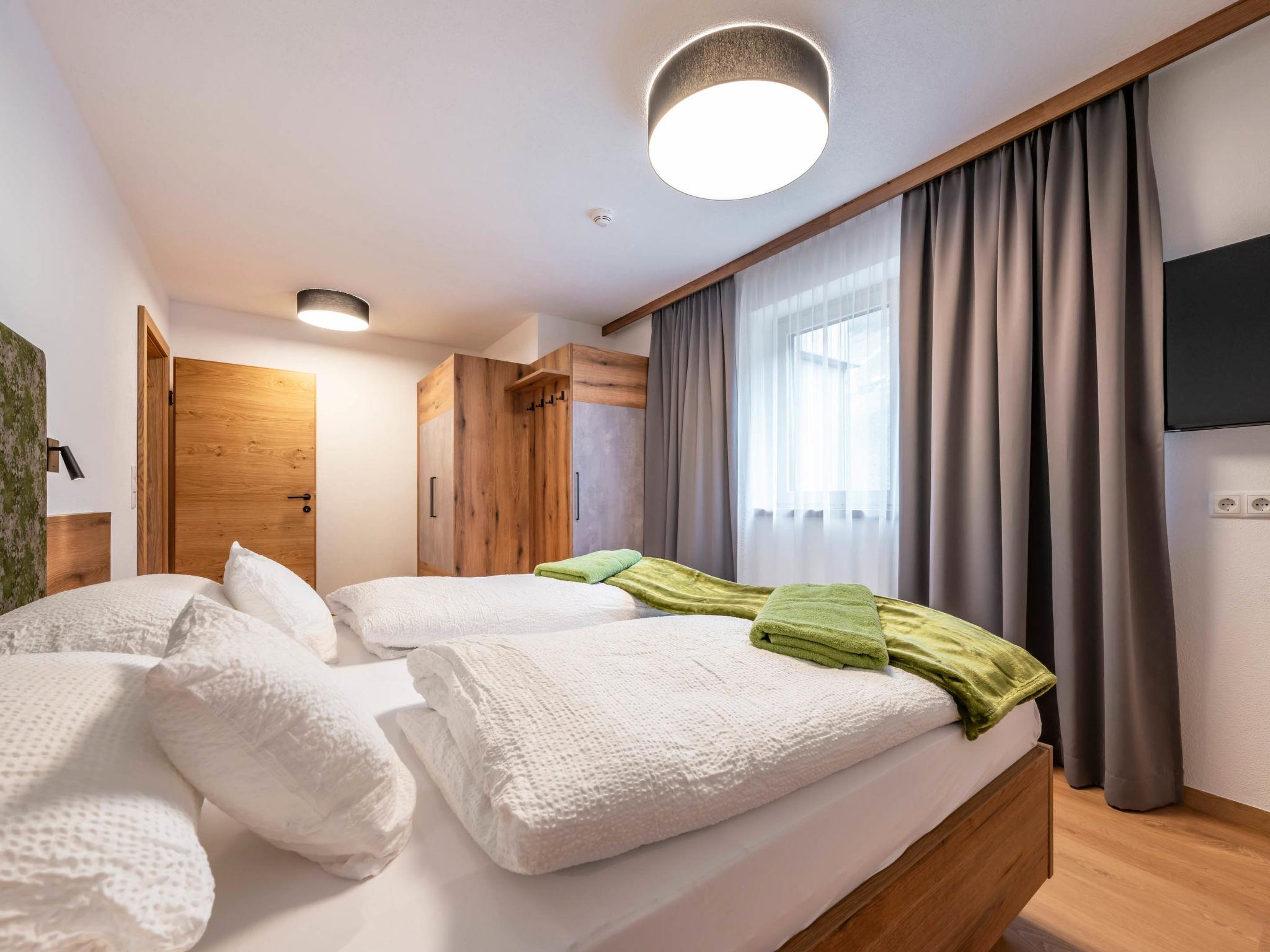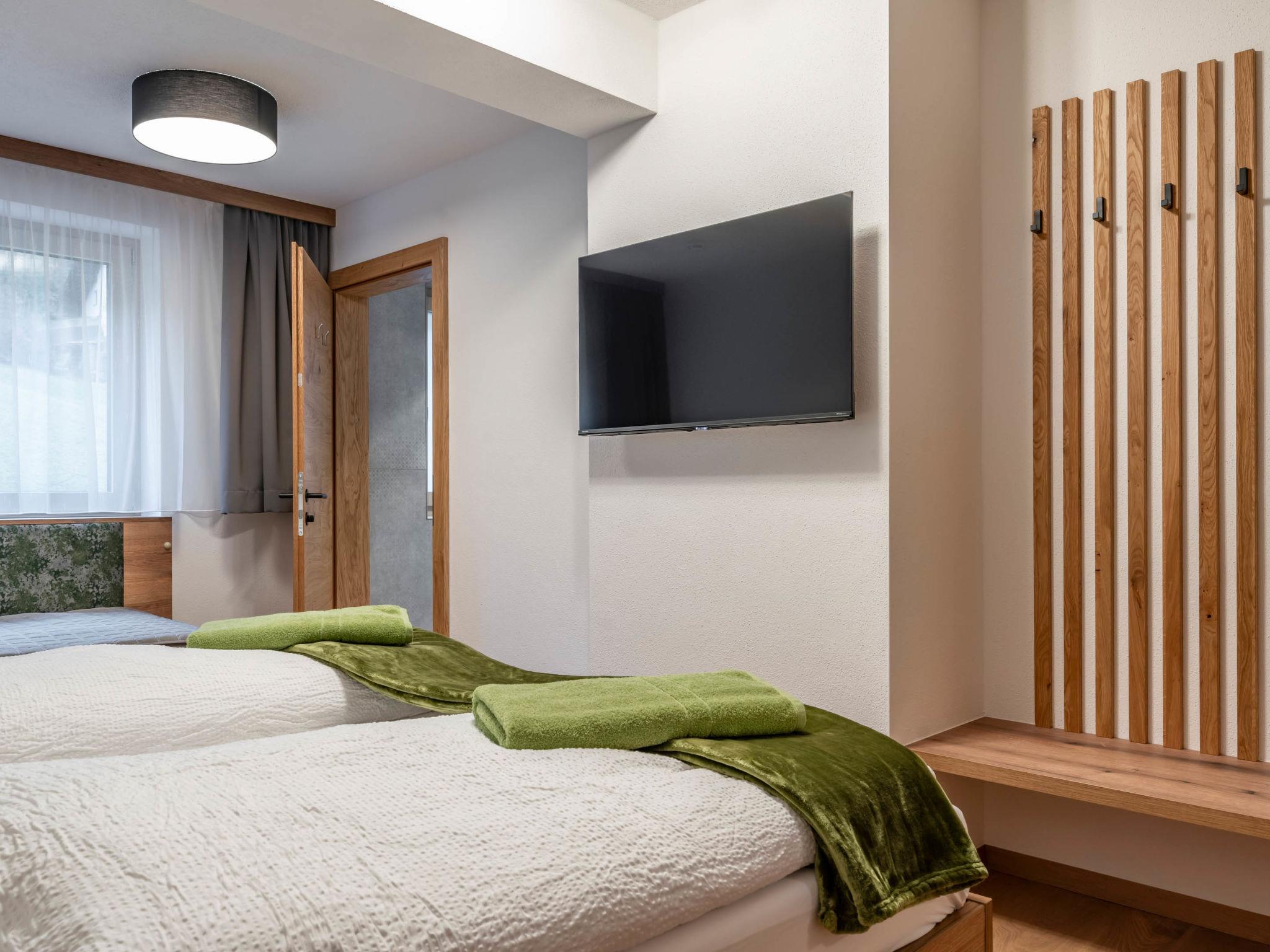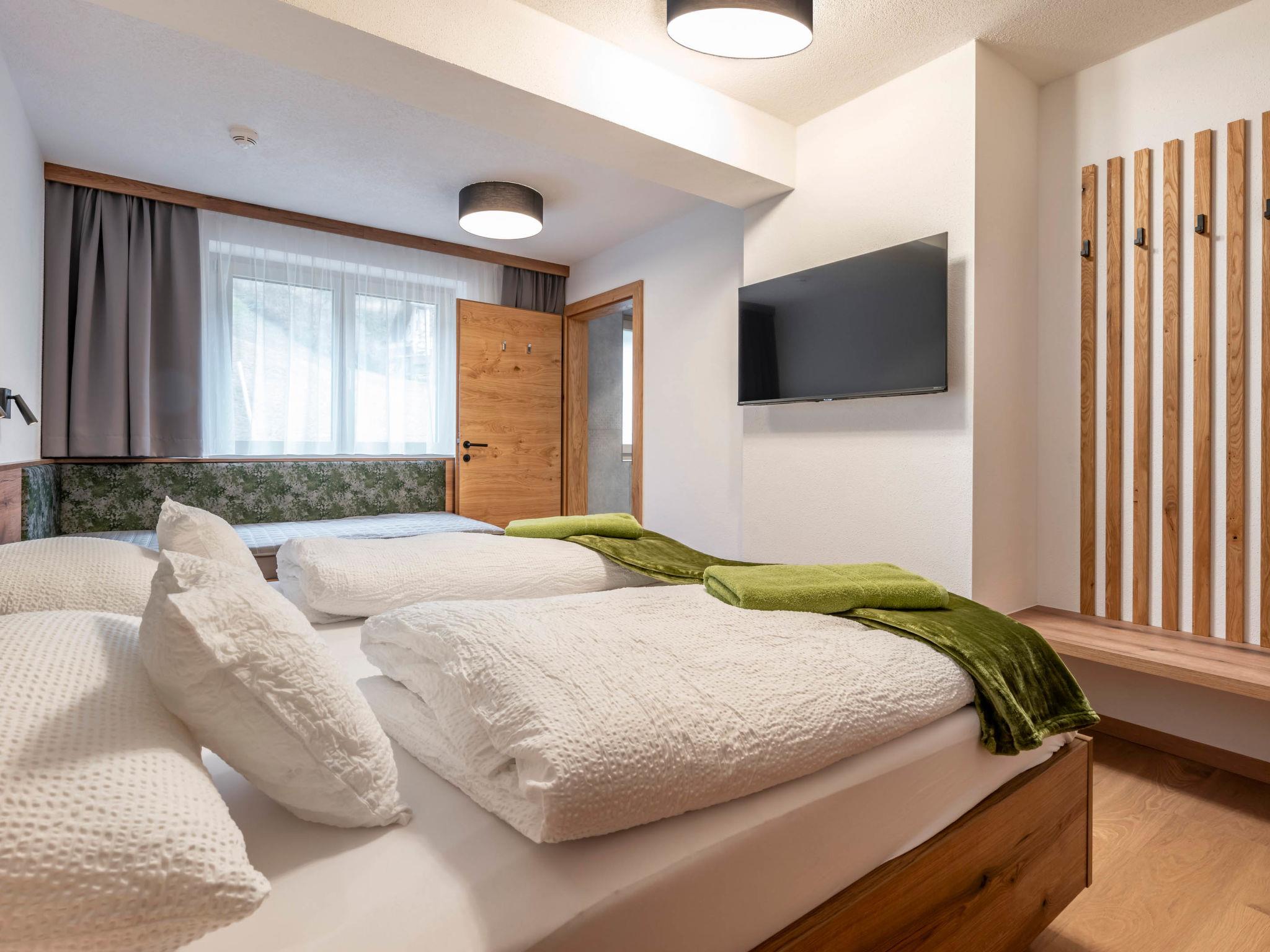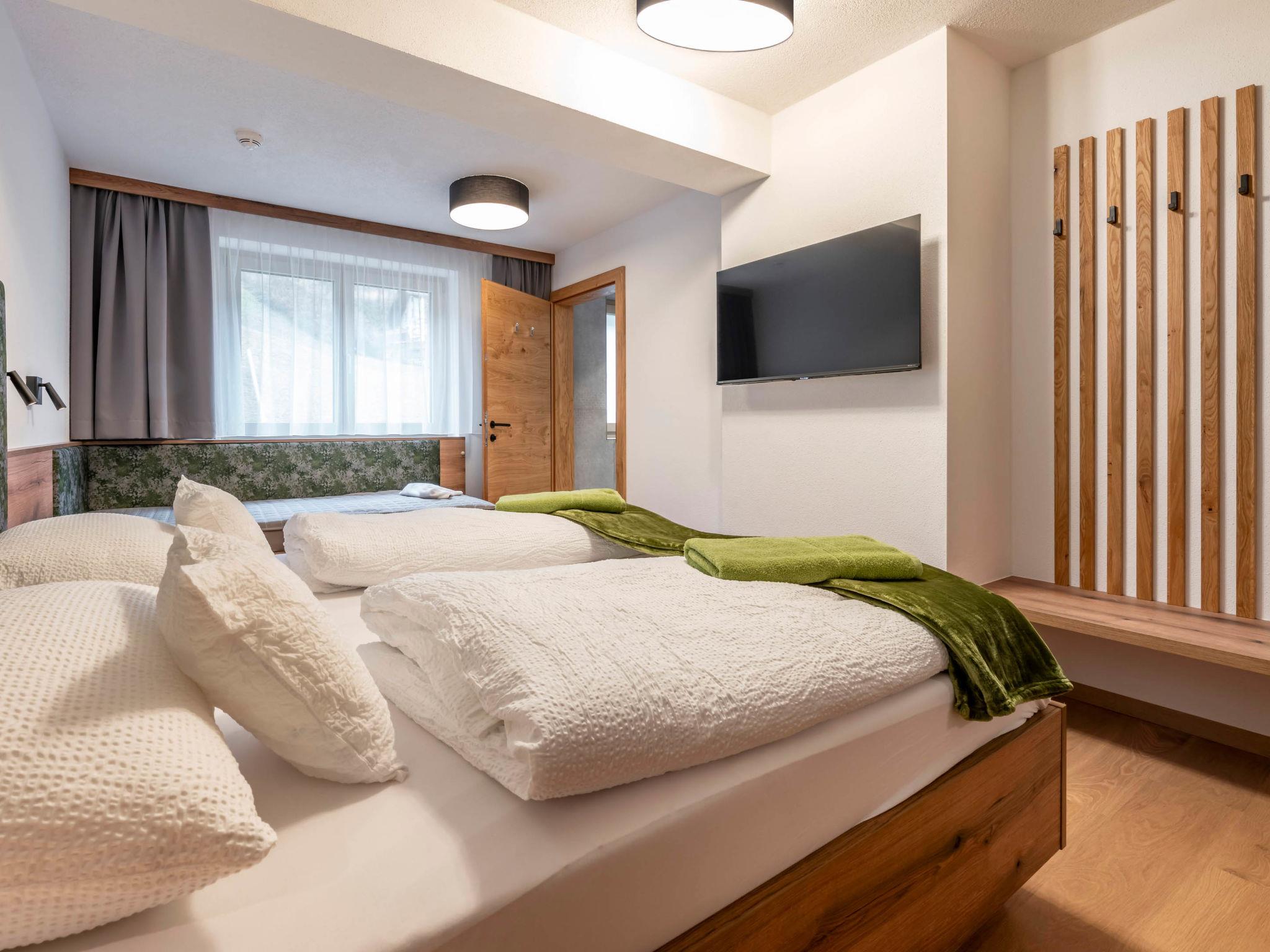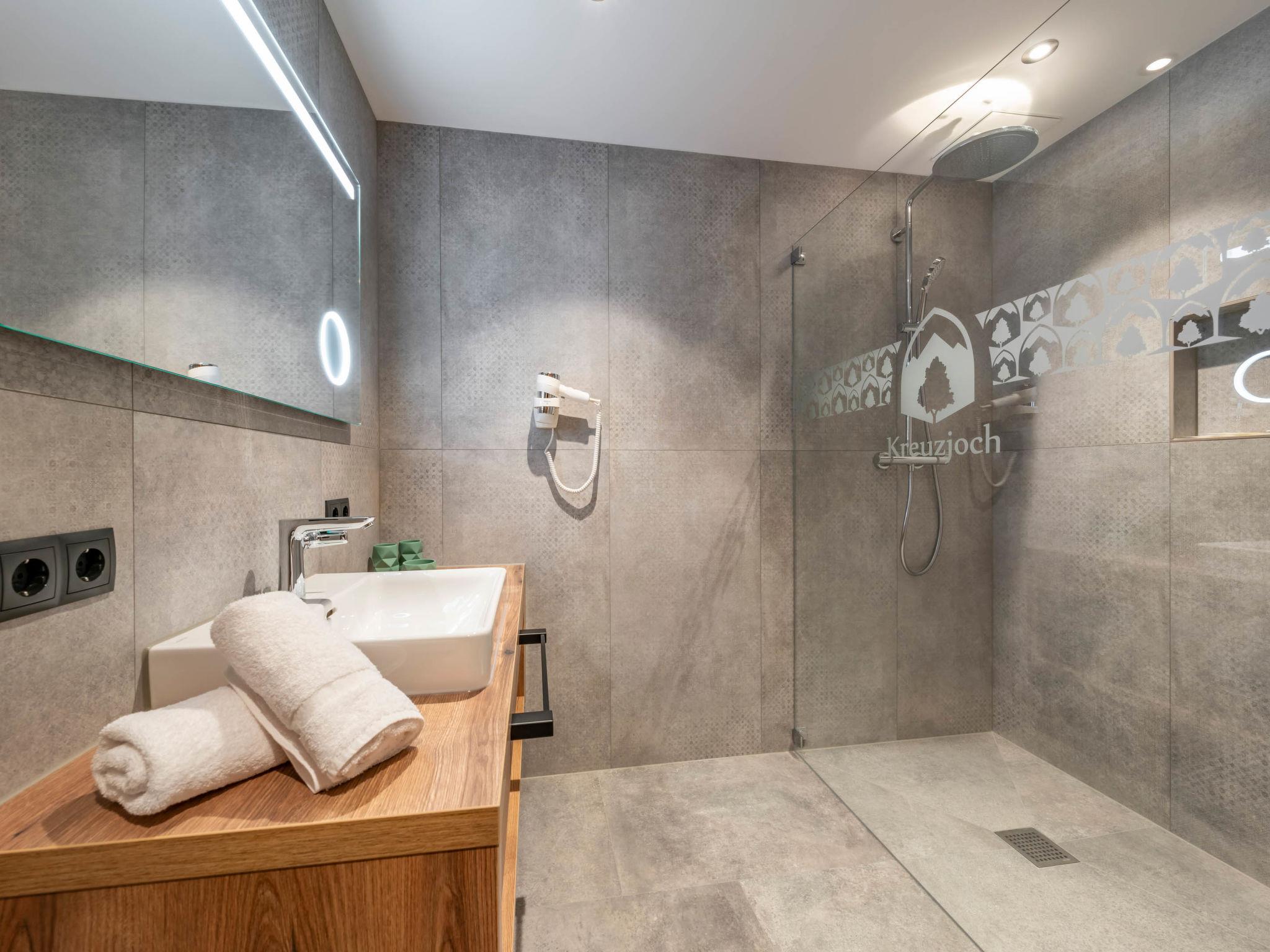 "Apart Kreuzjoch", 3-room apartment 70 m2, on the upper floor. Comfortable and modern furnishings: living/dining room with 1 sofabed, dining table and TV. 1 double bedroom. 1 room with 1 bed, 1 double bed and shower/WC. Open kitchen (oven, dishwasher, 4 ceramic glass hob hotplates, toaster, kettle, microwave, freezer, electric coffee machine). Shower/WC. Underfloor heating. Parquet floors. Balcony. Balcony furniture. Marvellous view of the mountains. Facilities: Internet (WiFi, free). E-charging station. Please note: non-smokers only. Smoke alarm, fire extinguisher. The property is one of a type of property or apartment.