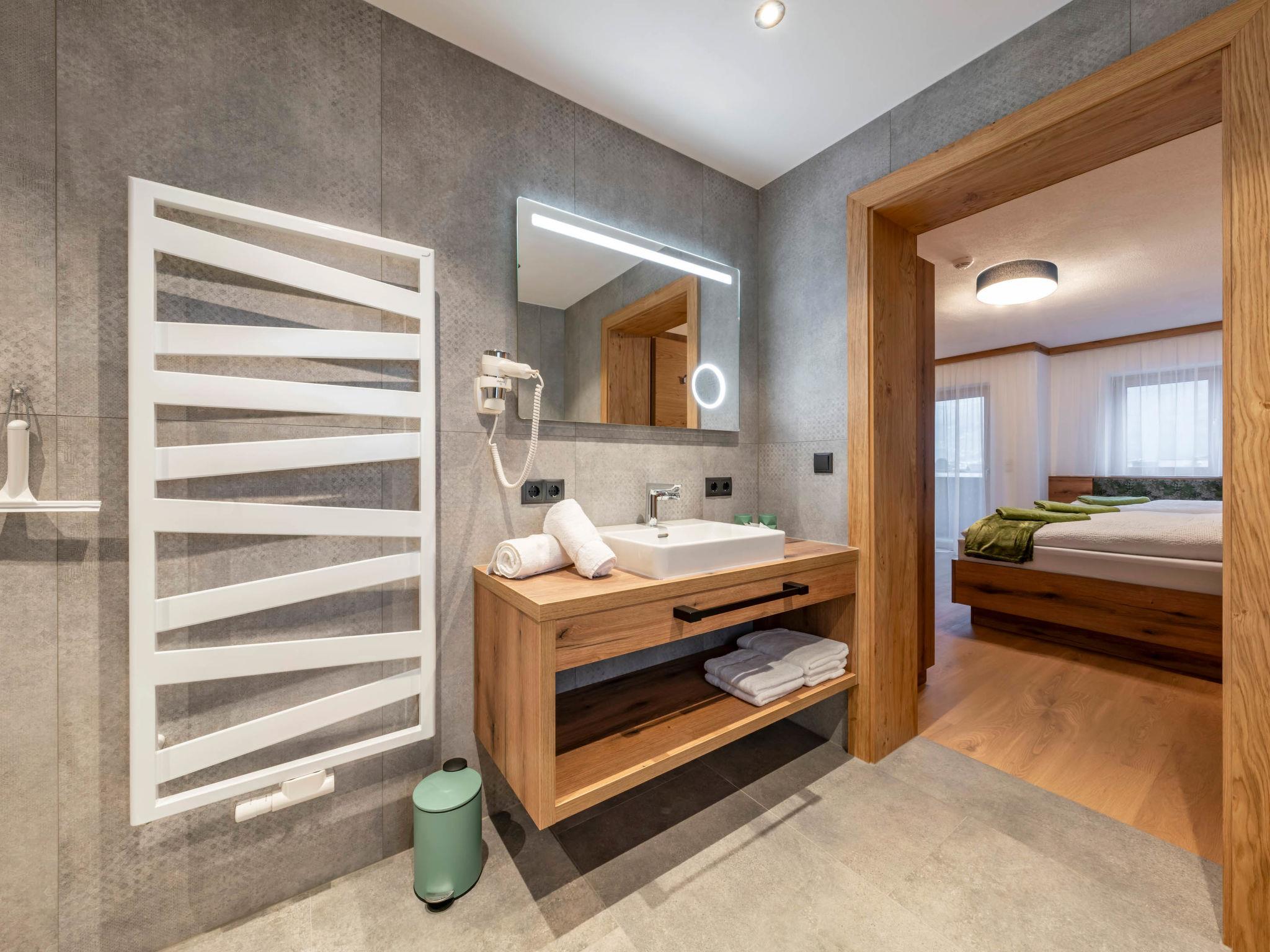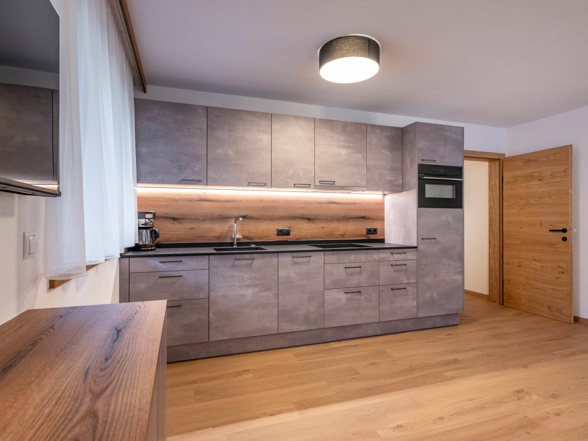 "Apart Kreuzjoch", 3-room apartment 70 m2, on the upper floor. Comfortable and modern furnishings: living/dining room with 1 sofabed, dining table and TV. 1 double bedroom. 1 room with 1 bed, 1 double bed and shower/WC. Open kitchen (oven, dishwasher, 4 ceramic glass hob hotplates, toaster, kettle, microwave, freezer, electric coffee machine). Shower/WC. Underfloor heating. Parquet floors. Balcony. Balcony furniture. Marvellous view of the mountains. Facilities: Internet (WiFi, free). E-charging station. Please note: non-smokers only. Smoke alarm, fire extinguisher. The property is one of a type of property or apartment.