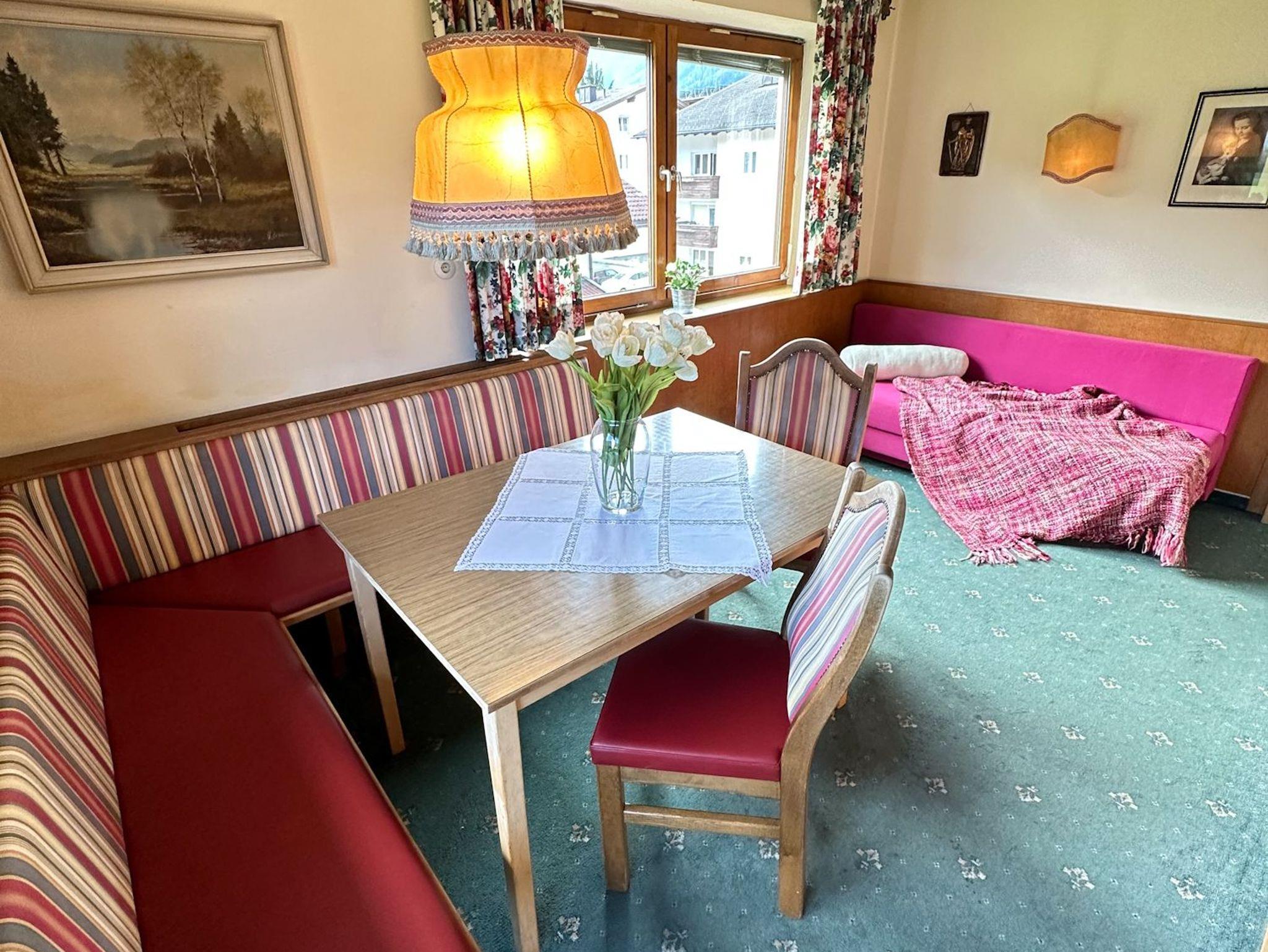Für gesellige Abende stehen in unserem im Tiroler Stil gestalteten Aufenthaltsbereich gemütliche Plätze zur Verfügung. Hier kannst Du den nächsten Skitag planen oder deine Lieben zu einem Kartenspiel herausfordern.