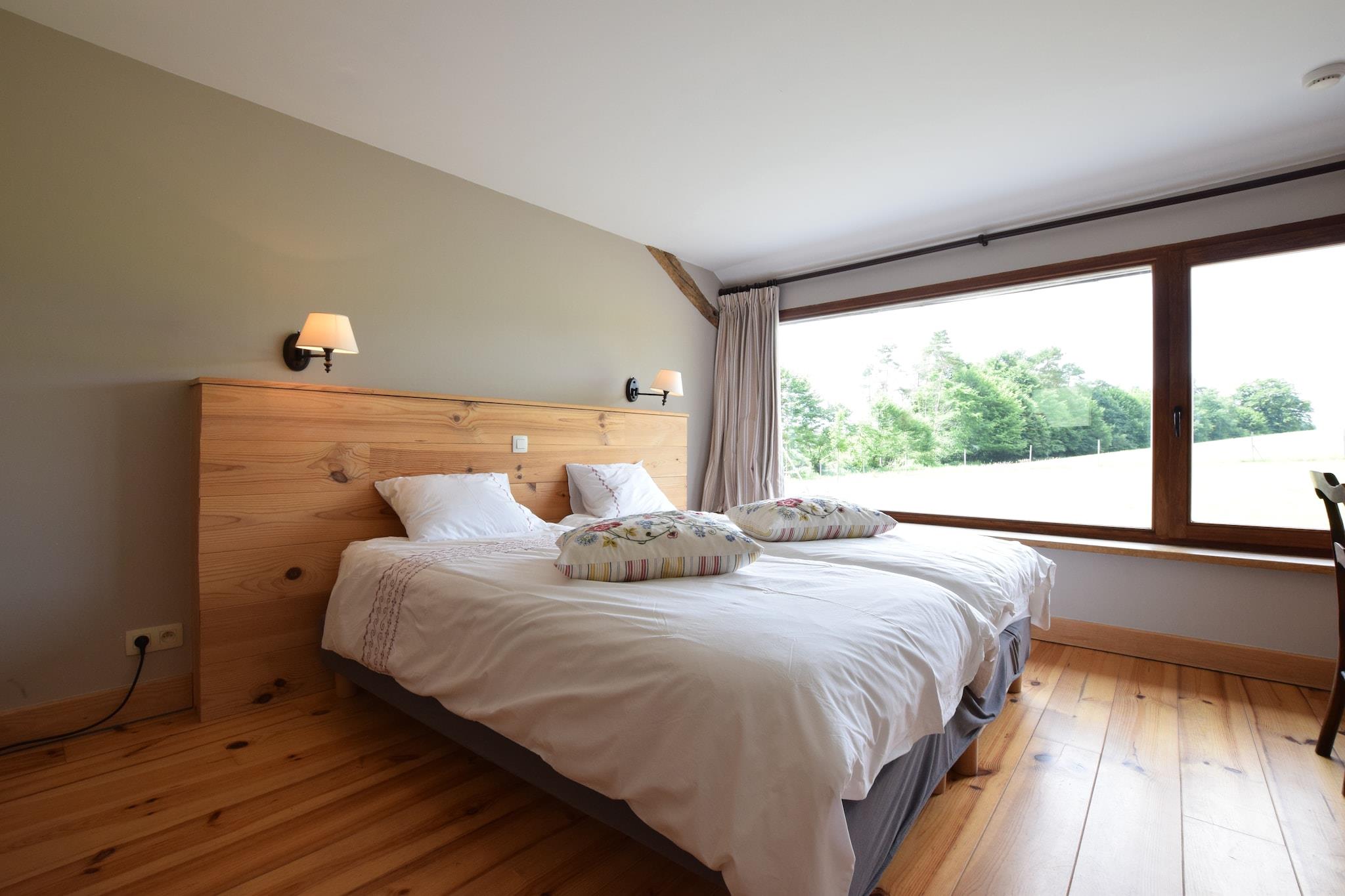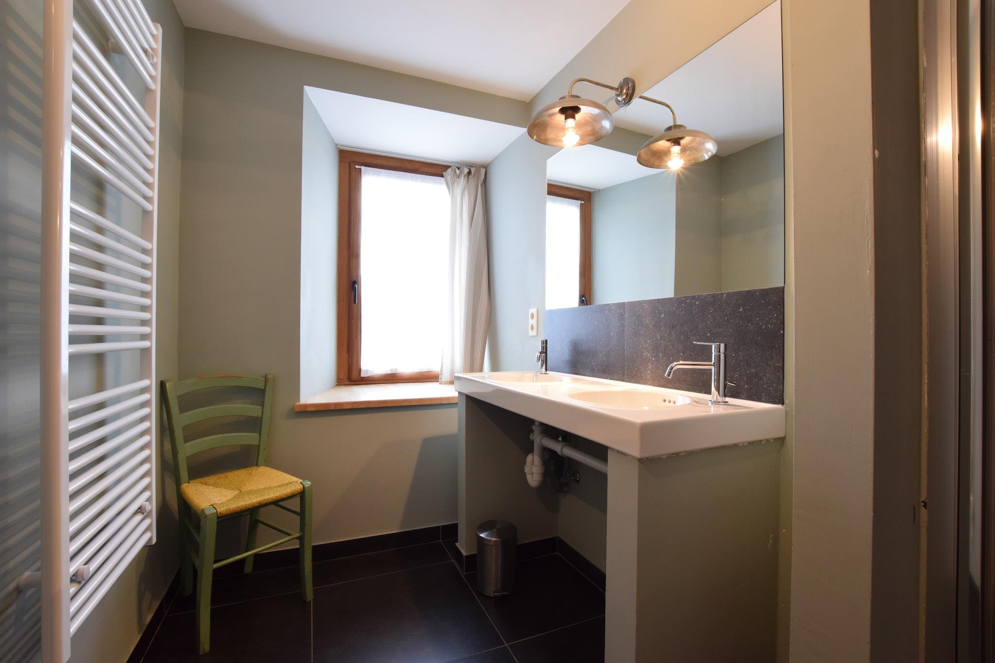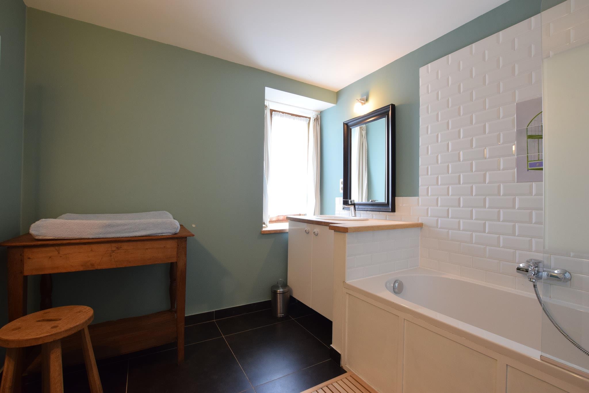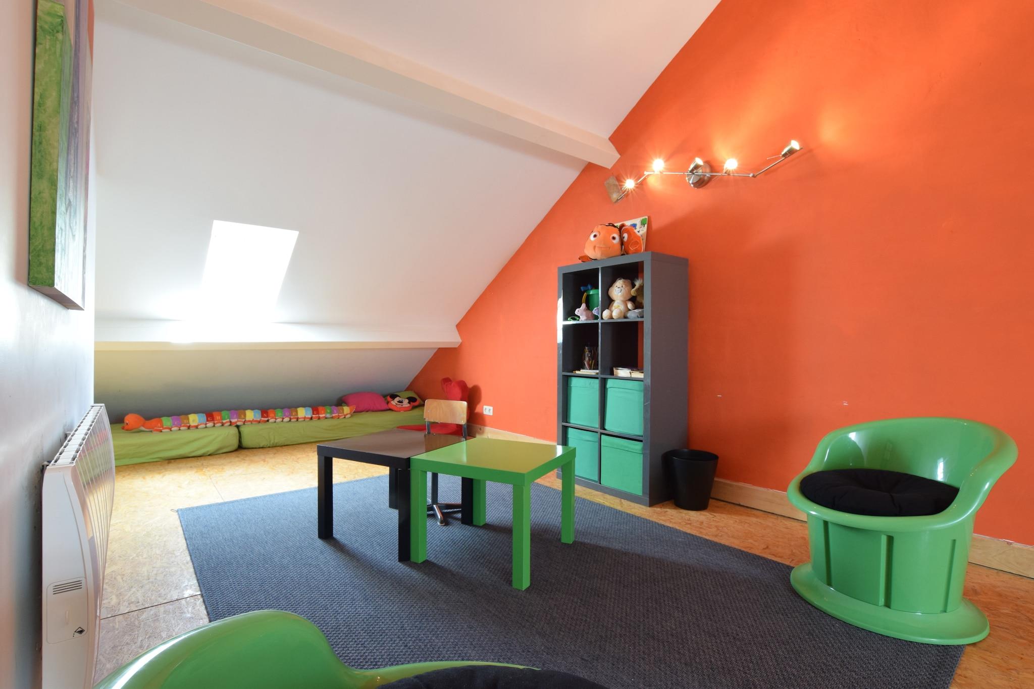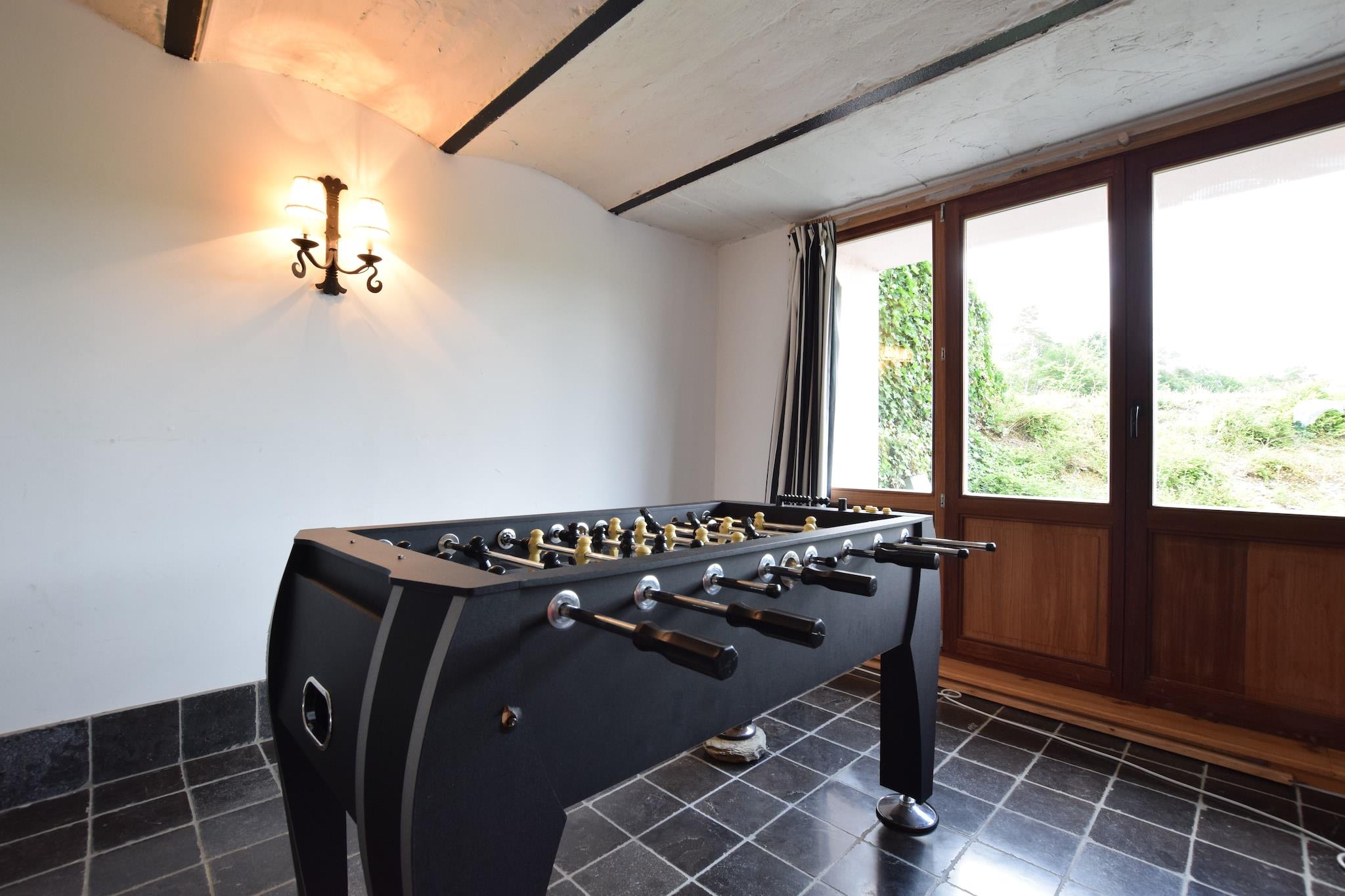 This 9-bedroom holiday home is located in the heart of the Ardennes river in Léglise and can host 22 guests. It is comfortably furnished with a cosy living room with a flatscreen TV, table tennis table and table football for having a fun-filled day inside with family and friends. There is also a garden and covered terrace for relaxing. This holiday home is a treat to live in, especially for families. Numerous excursions can be taken in the village, as can a variety of hiking and biking trails. Do plan a day trip to Florenville at 22 km, Bastogne at 33 km and the lakes of Haute Sûre in Luxembourg at 30 km. enjoy skiing during winter in Forêt d'Anlier which lies 10 km away from this holiday home. Restaurants and daily supplies lie 3.5 km away. This holiday home is based in a tranquil location and offers a magnificent view of the garden and terrace from the large windows on the upper floor. 2 pets are allowed for a fee of EURO 7/Pet/Night and parking is available on the premises.