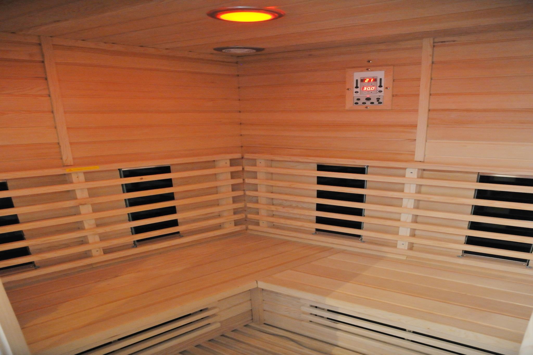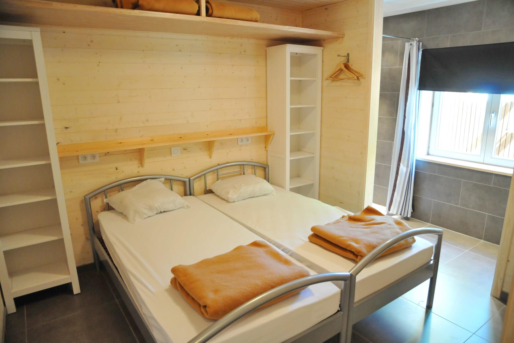 Ground floor: (bedroom(2x single bed, shower, washbasin), bedroom(2x single bed, shower, washbasin), bedroom(2x single bed, shower, washbasin), bedroom(single bed, bunk bed, shower, washbasin), bedroom(single bed, bunk bed, shower, washbasin), toilet, toilet, sauna, shower, infrared sauna, terrace(roofed)) On the 1st floor: (Living room(TV(flatscreen, digital), dining table, seating area, gas fireplace), open kitchen(cooker(4 ring stoves, electric), coffee machine, oven, microwave, dishwasher, fridge-freezer), terrace(roofed)) garden furniture, BBQ, parking, children's bed, high chair