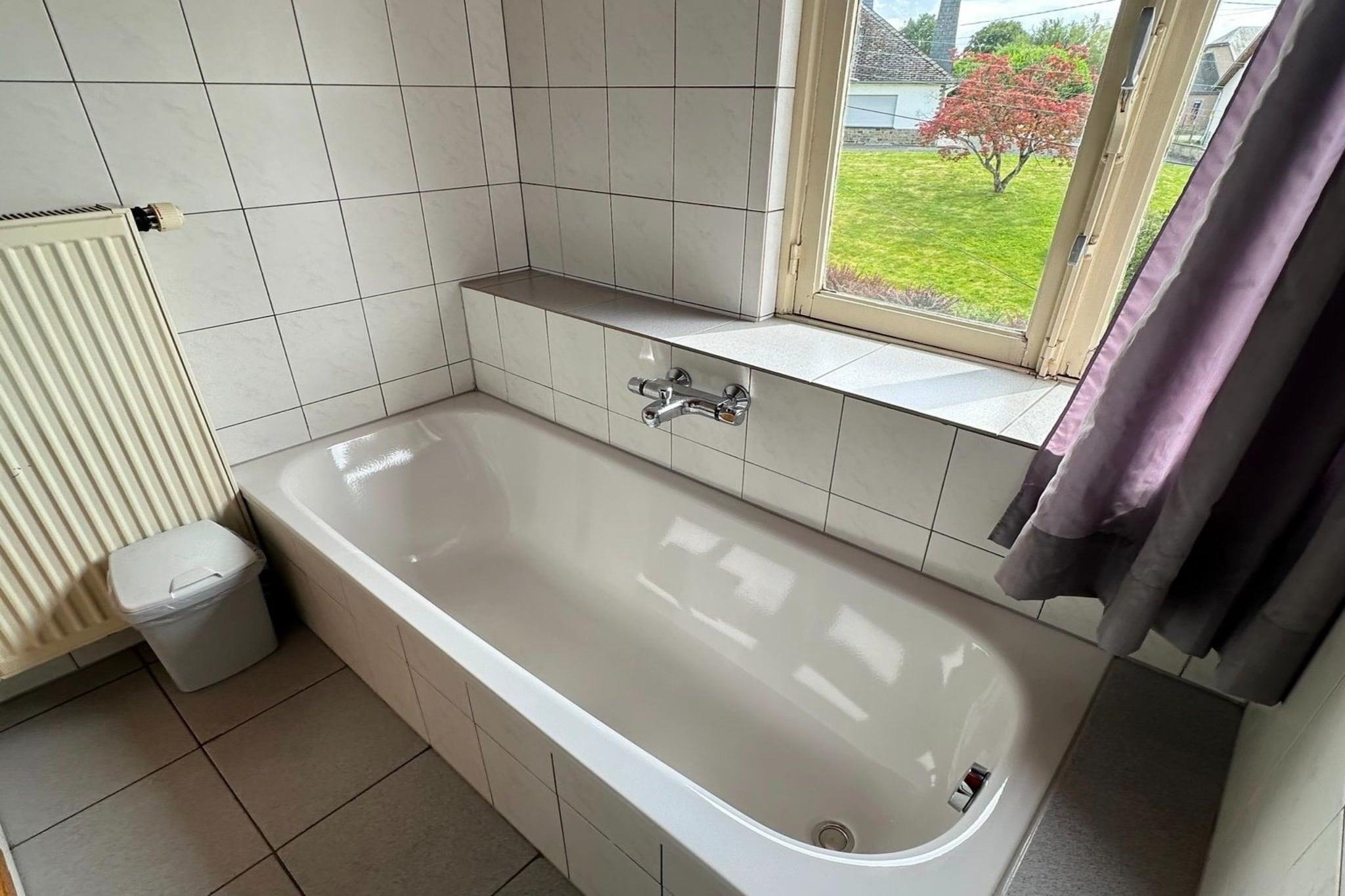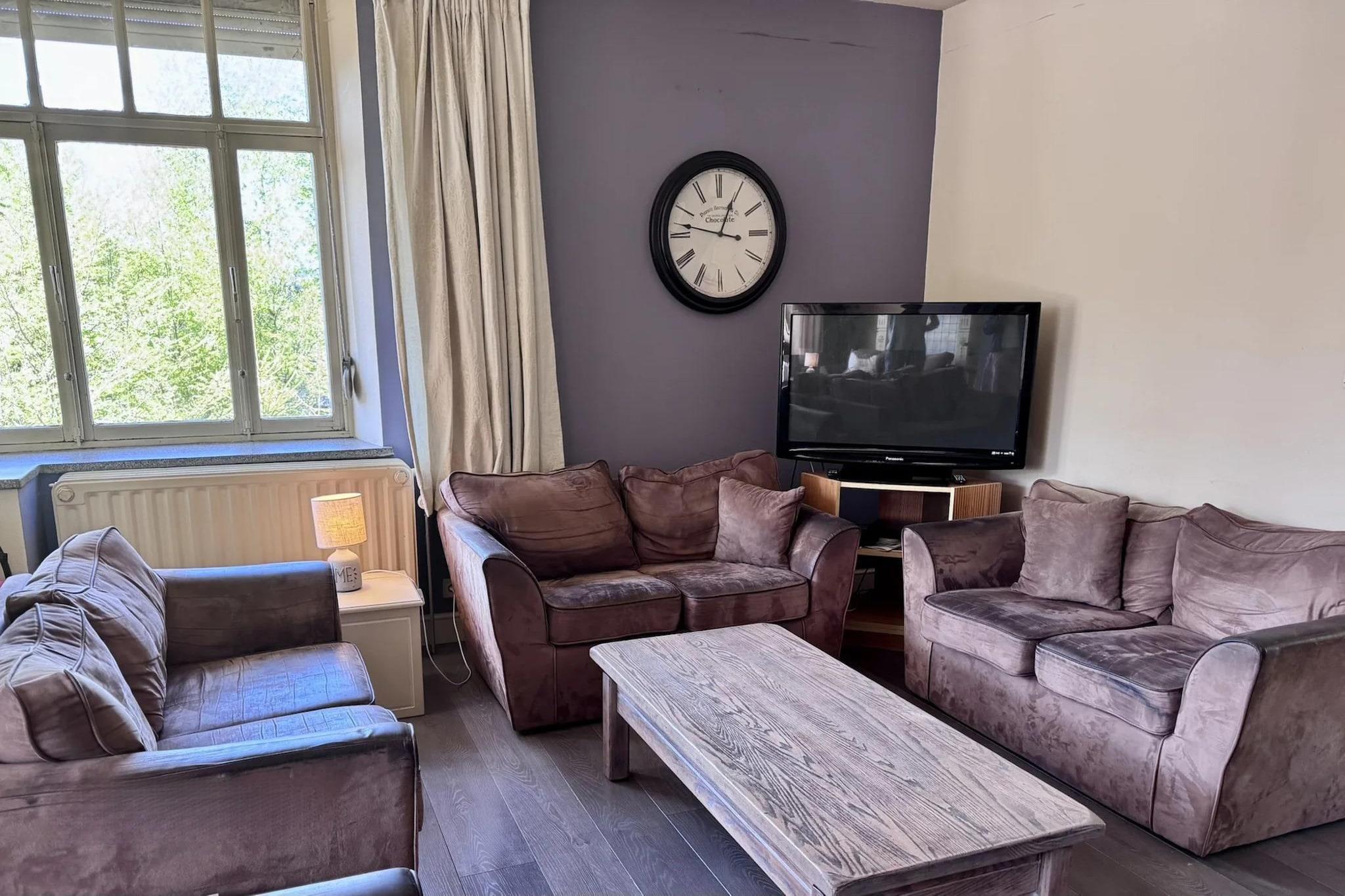 Escape the hustle and bustle of everyday life and relax in this group accommodation in Bérismenil, in the heart of the Belgian Ardennes. Surrounded by greenery, this charming and simple vacation home is the perfect base for groups who want to enjoy nature and spend time together. With a practical layout and basic comforts, you will quickly feel at home, while the beds are already made up on arrival so your holiday can begin right away. The house accommodates up to 29 people and features a spacious dining and living area, ideal for shared meals and cozy evenings. The compact but functional kitchen with dishwasher makes cooking easy. Built in the 1950s and 1960s, the home has high ceilings and granite floors that give it an authentic atmosphere, while underfloor heating and radiators ensure comfort. Ten bedrooms provide privacy, and the free-to-use sauna offers a relaxing end to an active day.