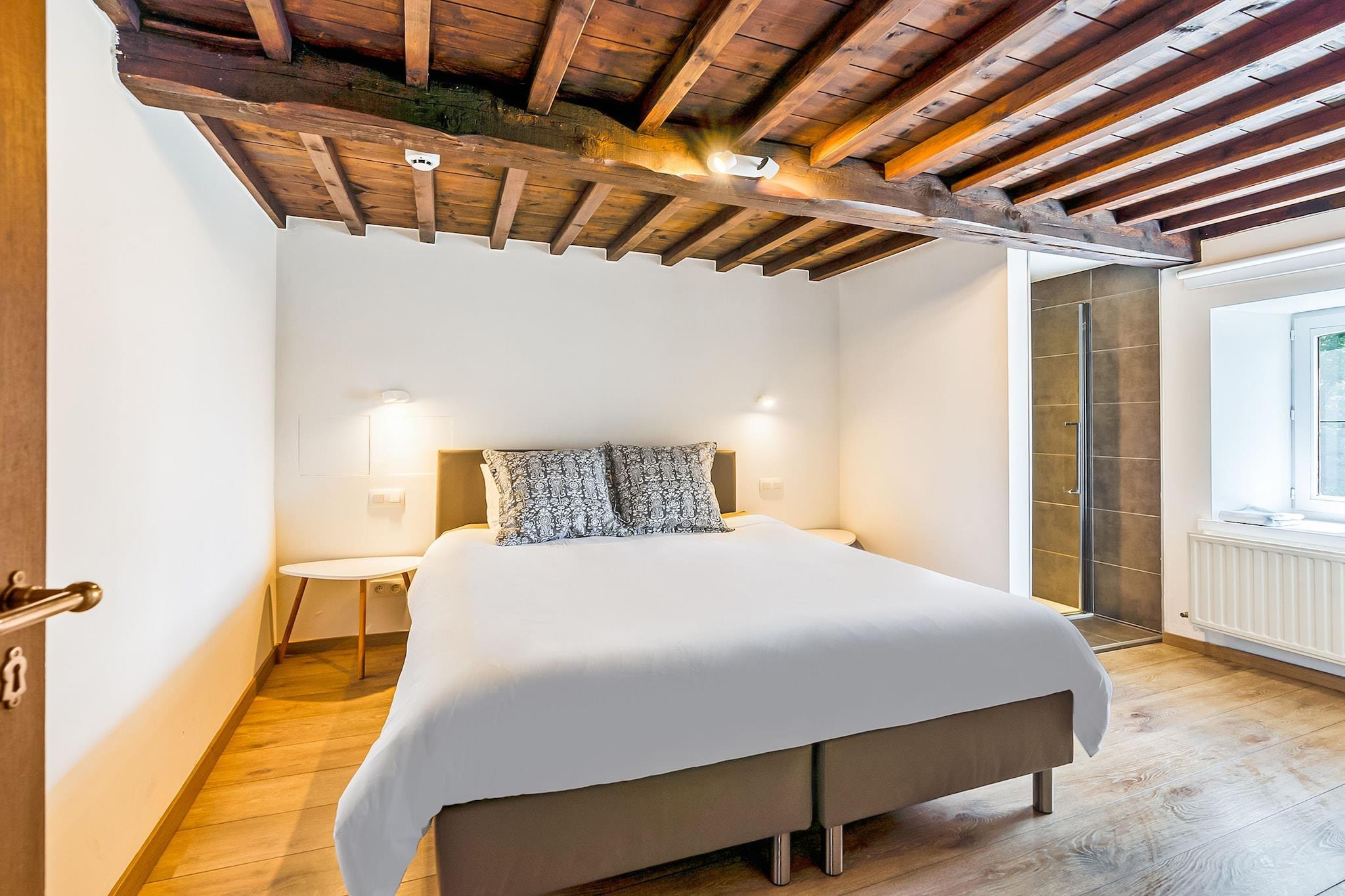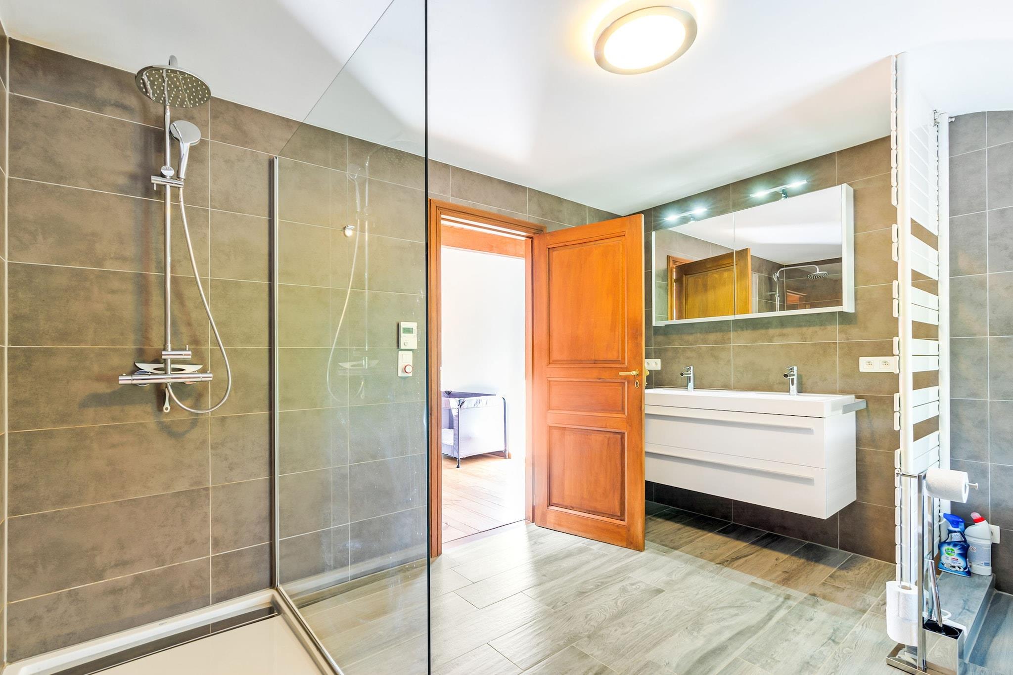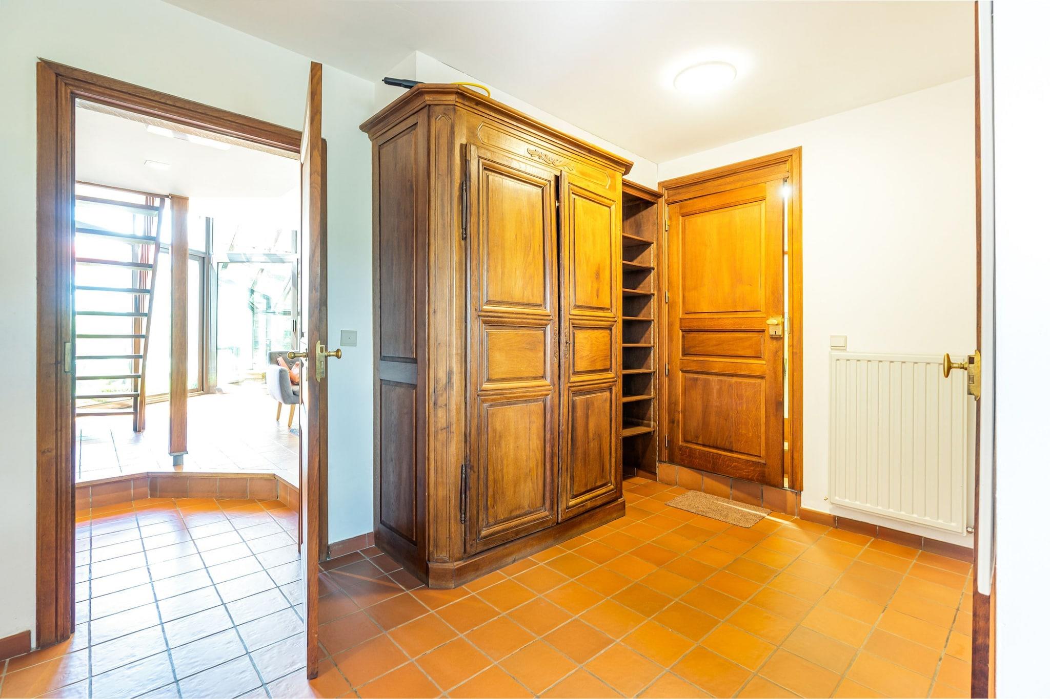 This comfortable villa in La Roche-en-Ardenne has a beautiful swimming pool, open from May to October (depending on the weather). This fine accommodation is ideal for nature lovers. The Ourthe is only 500 m away, so don't hesitate to relax during some fishing. Restaurants and supermarkets are 4 km away in the city center. Take the car and visit the Chlorophylle Park (14 km), the Barage de Nisramont (17 km), the Baraque Fraiture ski resort (18 km), the Brasserie d'Achouffe (22 km) and Houtopia (Kids Center) at 30 km. The nearby area is also ideal for hiking and cycling, and the E25 motorway interchange is only 10 km away. The owner warmly welcomes all his guests. The villa also has a beautiful open kitchen, sun loungers and a barbecue, as well as a garage. One pet is allowed to stay in your home free of charge. Liège Airport is 81 km away.