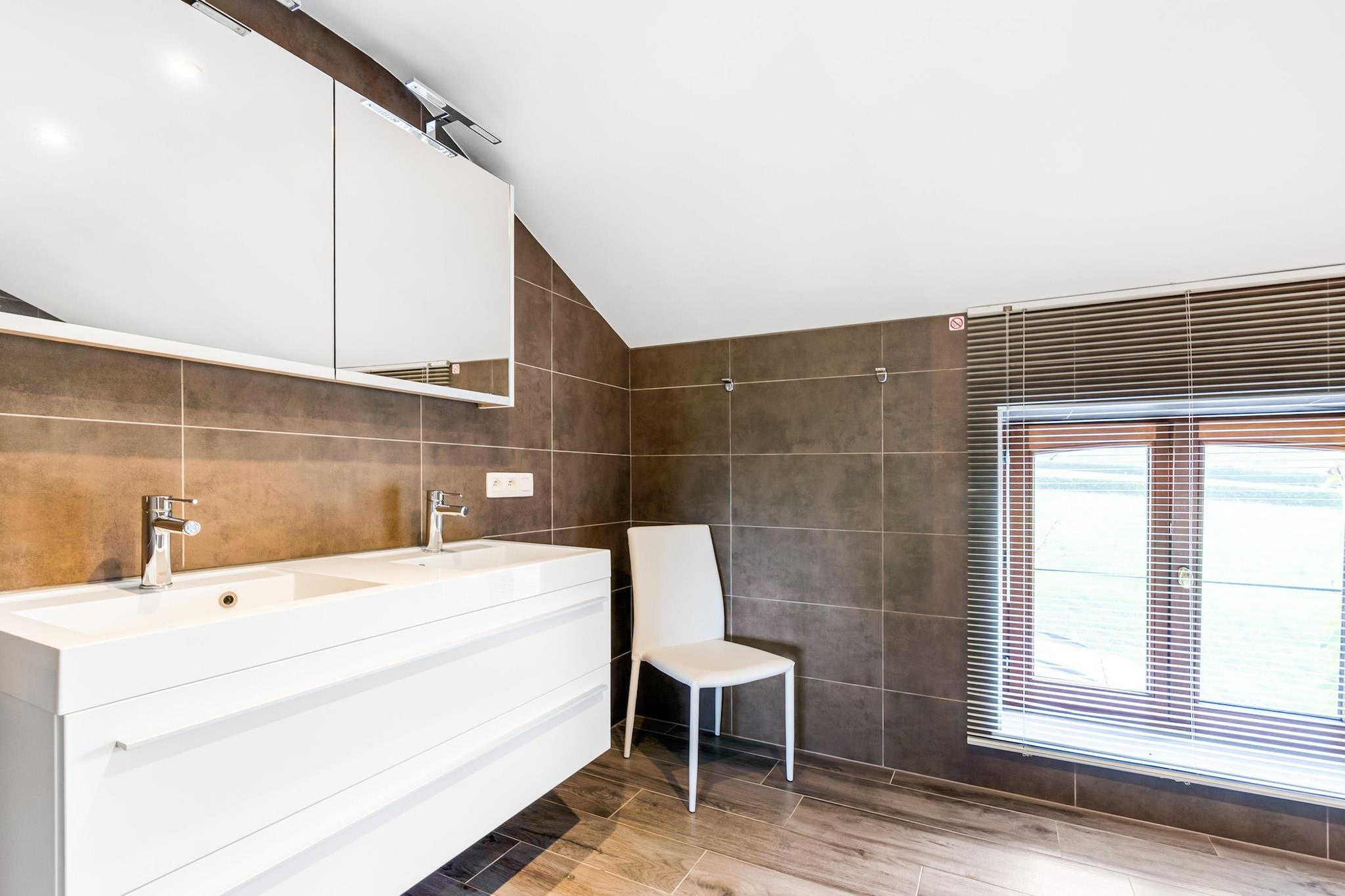 Ground floor: (hallway, dining room(TV, dining table(12 persons)), TV room(TV, stove(wood), seating area), open kitchen(electric kettle, cooker(4 ring stoves, ceramic), hood, coffee machine, oven, grill, microwave, dishwasher, fridge, freezer), toilet(washbasin), veranda(seating area), garage(reachable from the outside)) On the 1st floor: (bedroom(double bed(boxspring, twin duvet, twin fitted sheet, 160 x 200 cm)), bedroom(double bed(boxspring, twin duvet, twin fitted sheet, 160 x 200 cm), washbasin), bedroom(double bed(boxspring, twin duvet, twin fitted sheet, 160 x 200 cm)), bedroom(2x single bed(duvet, fitted sheet, boxspring, 90 x 200 cm)), bathroom(shower, washbasin, toilet), bathroom(shower, 2x washbasin, toilet), mezzanine(double sofa bed, TV, balcony)) On the 2nd floor: (bedroom(3x single bed(duvet, fitted sheet, boxspring, 90 x 200 cm), washbasin), bathroom(shower, washbasin, toilet)) garage(reachable from the outside), fireplace, tumble dryer, washing machine, patio, terrace(private, roofed), garden(private, fenced, landscaped garden), garden furniture, sun loungers, BBQ, parasol, swimming pool(private, outside, heated, opened from May upto and including Sep)
