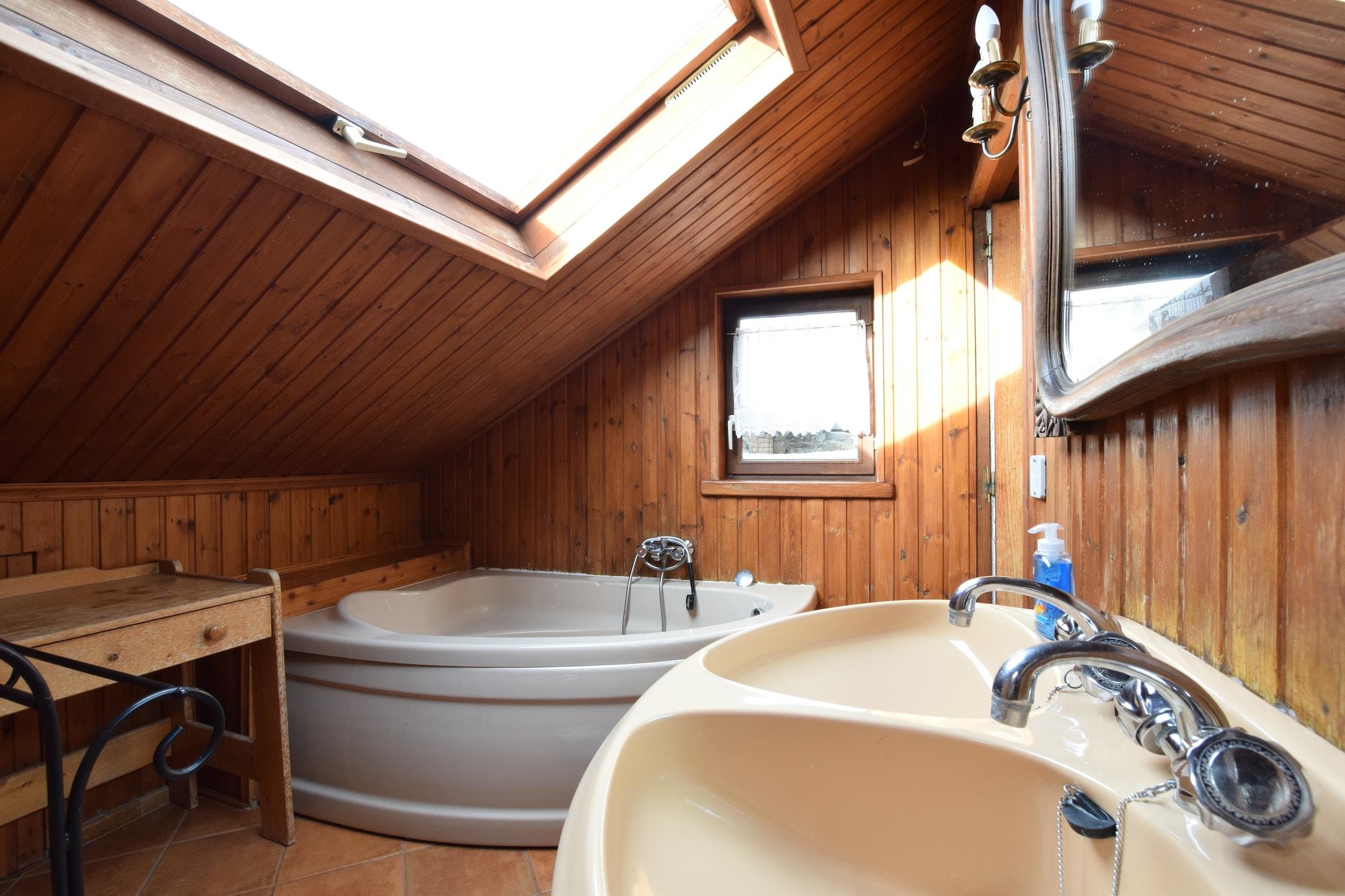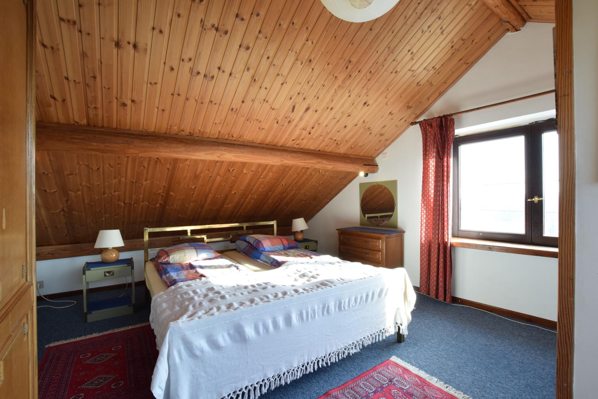 This inviting villa in Ronchampay, La Roche-en-Ardenne offers a comfortable retreat for families or groups up to ten guests. Just 5 km from the town center and surrounded by forest, it’s ideal for nature lovers and history enthusiasts. Nearby attractions include the Château Féodal de La Roche, the Battle of the Ardennes Museum, and the scenic Barrage de Nisramont, perfect for hiking, kayaking, and wildlife spotting. The Parc à Gibier also offers a fun outing for children and animal lovers. The villa features five bedrooms across three floors, including loft beds and children’s beds for flexible sleeping arrangements. The large kitchen is fully equipped with modern appliances and opens to a cozy dining area with a fireplace. Guests can unwind in the infrared sauna, enjoy games in the playroom with darts and table tennis, or relax in the conservatory. Outdoor amenities include a fenced garden, barbecue, boules court, and play equipment. A washing machine, tumble dryer, and private parking add convenience. Dining options nearby include Chez Henri for traditional Ardennes cuisine, Signé Jeanne for hearty Belgian dishes, and Restaurant L’Apéro, known for its cozy ambiance and local specialties.