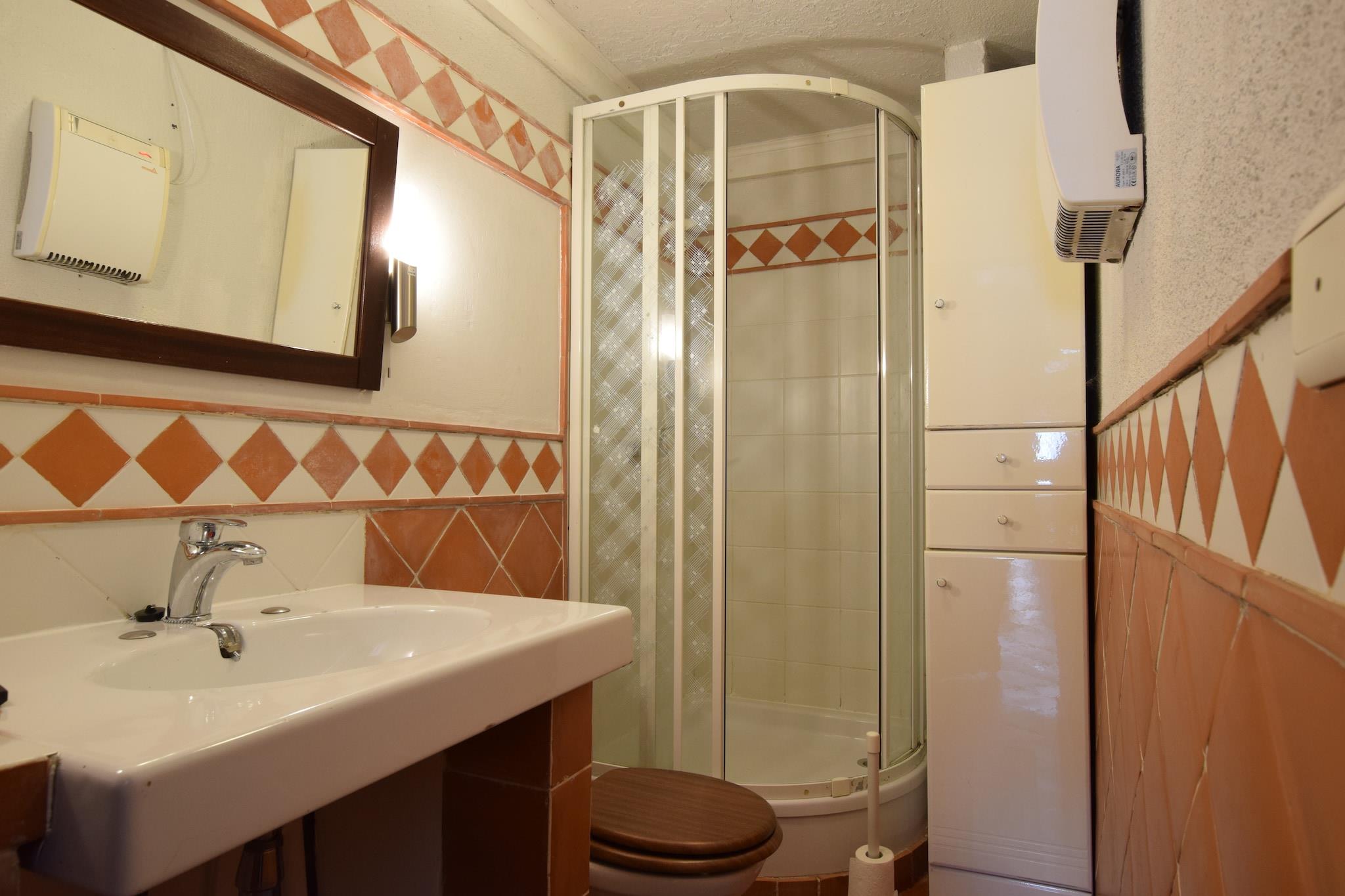 Ground floor: (Sitting room(TV(cable), seating area, bar, heating(electric)), Large kitchen(dining table, fireplace, stove(gas), toaster, cooker(4 ring stoves, ceramic), coffee machine, oven, microwave, dishwasher, fridge-freezer, garden doors, 2x high chair), bedroom(double bed(140 x 200 cm), garden doors), bathroom(shower, washbasin, toilet), playroom(stove(wood), table tennis table, darts), relaxation area(seating area, infrared sauna), BBQ) On the 1st floor: (bedroom(double bed(two single duvets, synthetics), heating(hot air)), bedroom(2x single bed(duvet, synthetics, 90 x 200 cm), heating(hot air), 2x children's bed), bedroom(double bed(two single duvets, synthetics, 160 x 200 cm), double loft bed(two single duvets, synthetics, 140 x 200 cm), garden doors, terrace), bathroom(bath tub, 2x washbasin, toilet), bathroom(bath tub, washbasin, toilet)) On the 2nd floor: (bedroom(double bed(two single duvets, synthetics, 160 x 200 cm), heating(electric))) conservatory/veranda(on the same premises), garage(tumble dryer, washing machine), garden(private, fenced), garden furniture, boules court, play equipment, playpen