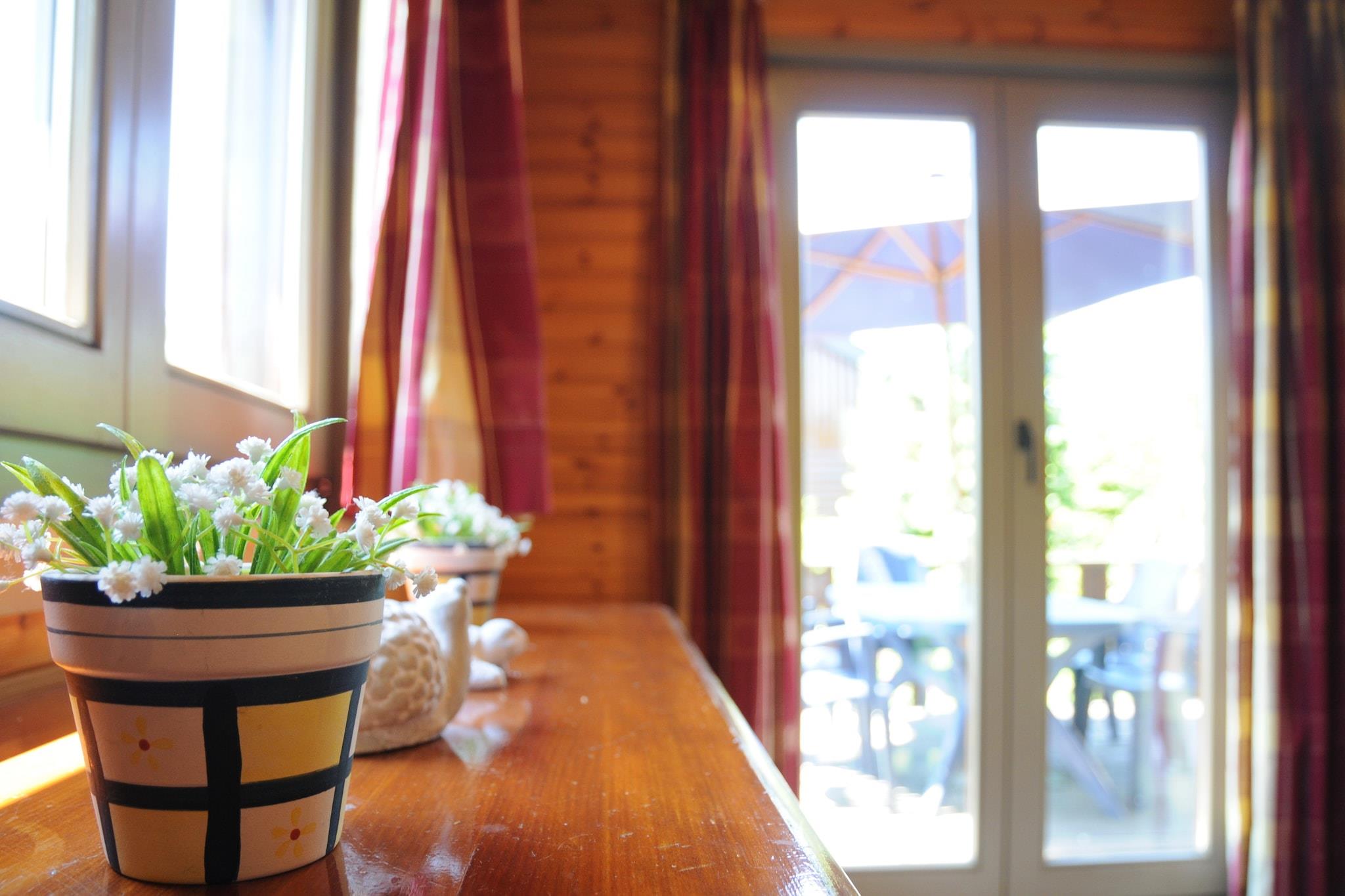 Ground floor: (Bedroom with bathroom(double bed, shower, washbasin), Bedroom with bathroom(2x bunk bed, shower, washbasin), toilet) On the 1st floor: (Living room(double sofa bed, TV(flatscreen), dining table), Kitchen(electric kettle, cooker(electric), coffee machine, microwave, dishwasher, fridge), relaxation area(shower, sauna, toilet)) carport, heating(electric), terrace, garden furniture, BBQ, parking