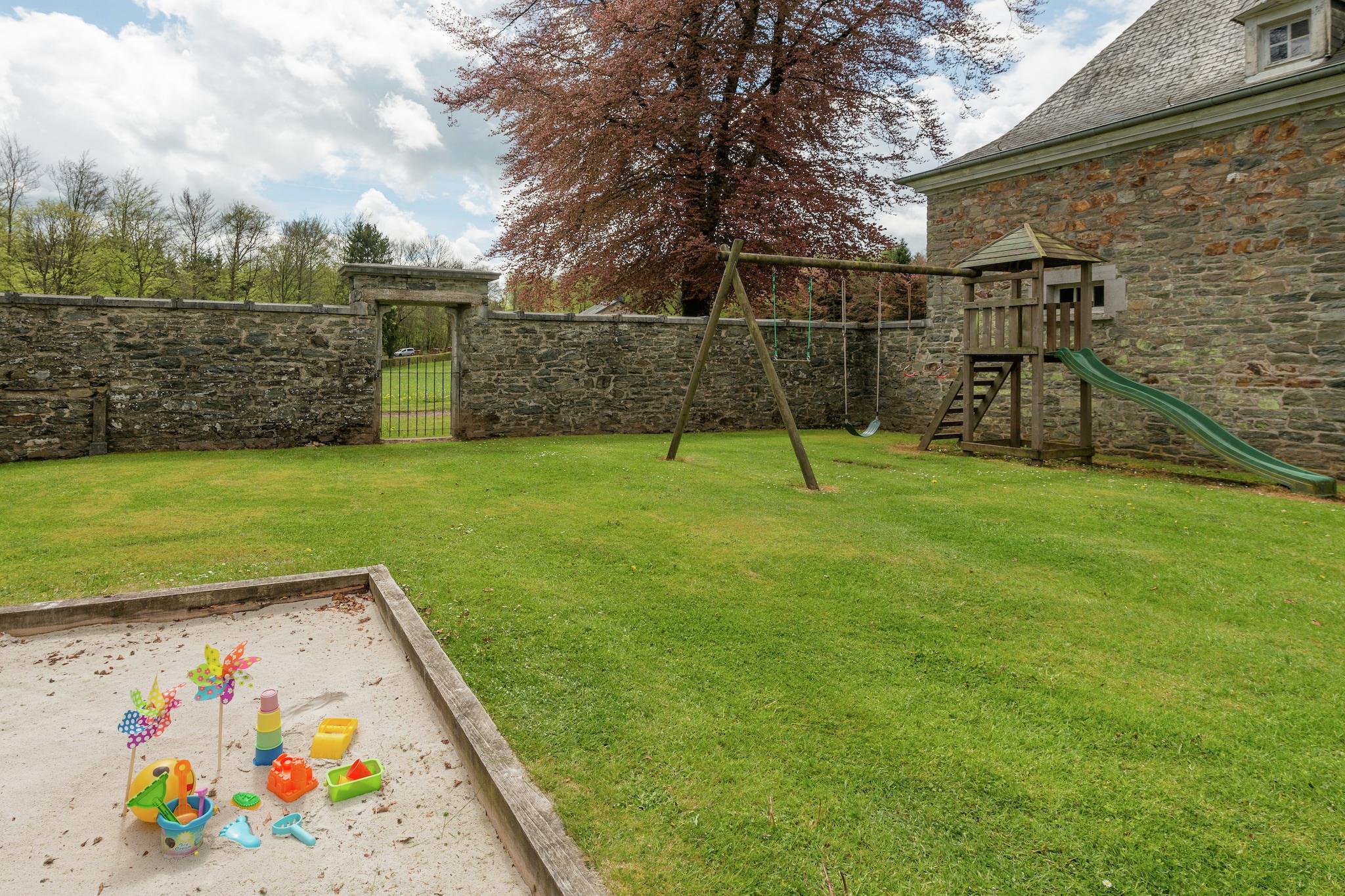Dreaming of a unique place, steeped in history and serenity, to gather with family or friends? Discover Les Dépendances de Roumont, a majestic residence nestled in the heart of the Saint-Hubert forest, in the charming hamlet of Roumont, right next to the family château. Once part of château life, this historic outbuilding has been fully restored with refinement and authenticity. Behind its storied walls lies today a spacious (425 m²) and elegant holiday home designed for your comfort. It features 6 refined bedrooms, including a true master suite, 4 bathrooms, bright living areas, a welcoming games room, a sunny terrace, and a large enclosed garden – perfect for children. In summer, relax on the terrace, surrounded by the whisper of the forest. In winter, enjoy the warmth of the fireplace in a cozy, intimate atmosphere. All year round, reconnect with nature and explore the marked trails of the Saint-Hubert forest directly from the house. The atmosphere is peaceful, welcoming, and inspiring. Whether for a family reunion, a getaway with friends, or a seminar in nature, you will immediately feel “at home.” The region offers countless activities: forest walks or cycling, nature reserves, picturesque villages… Nearby you can visit the Euro Space Center (10 km), stroll through Redu, the book village (13 km), explore the medieval town of Bouillon (30 km), or step back in time at the Tellin foundry. Jean-Christophe and Régine Coppée, heirs to this family heritage, will warmly welcome you with care and devotion. Les Dépendances de Roumont is much more than a holiday home: it is an invitation to unwind, connect, and marvel.