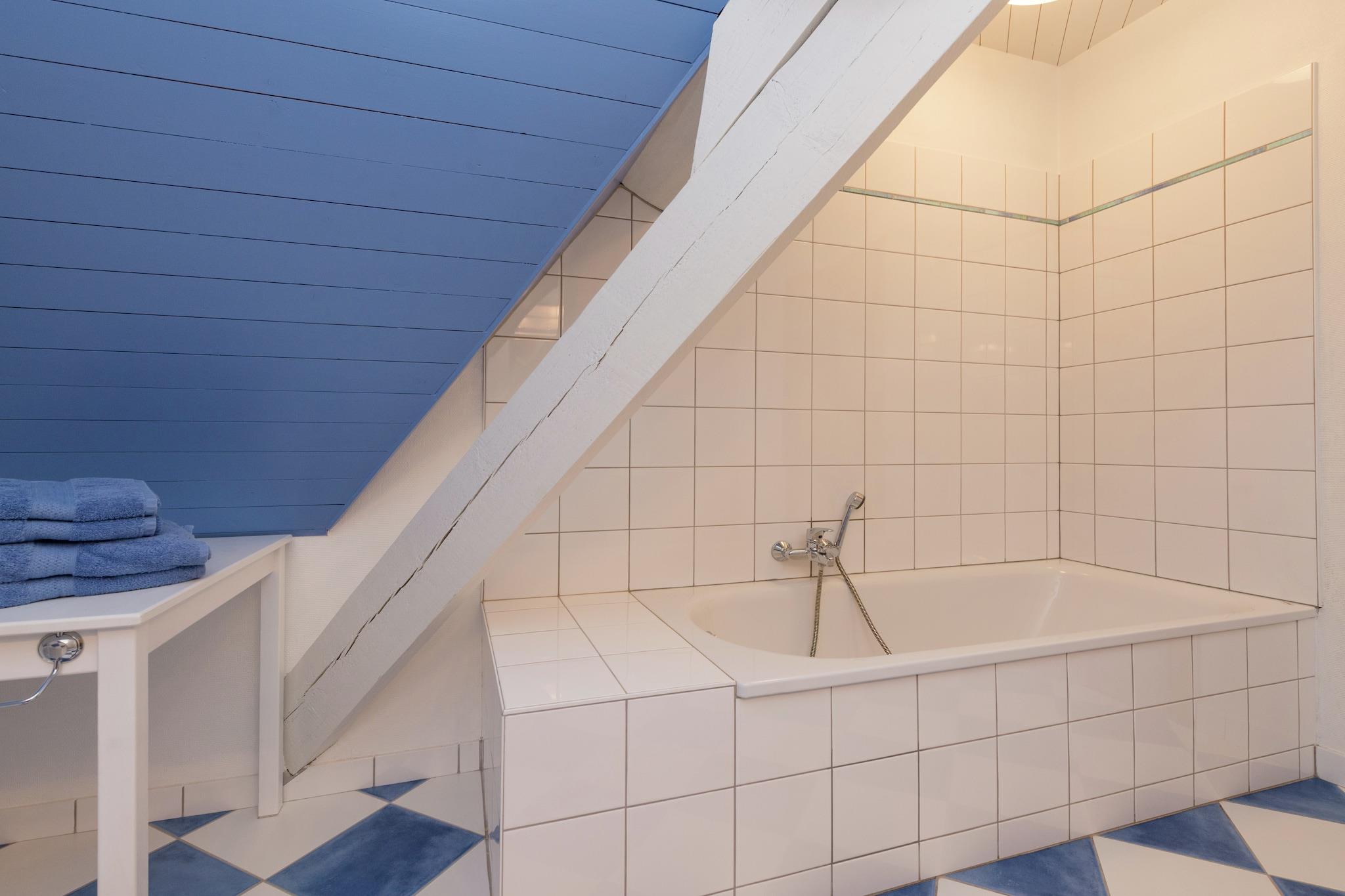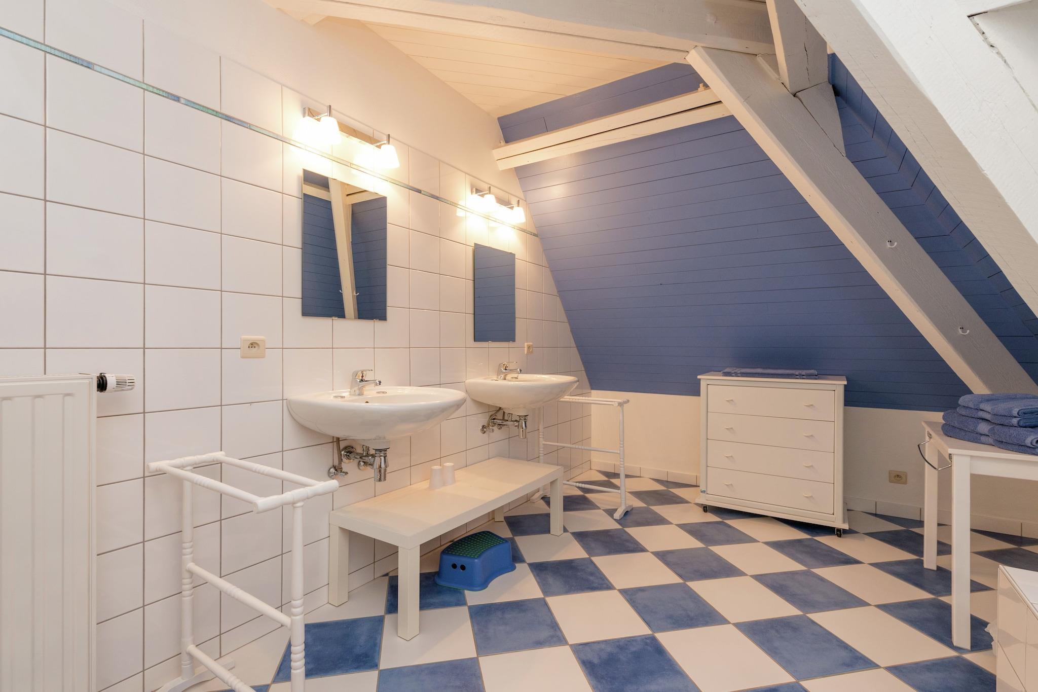 Ground floor: (Living room(TV, DVD player, radio, CD player), dining room(dining table(14 persons)), open kitchen(cooker(1 ring stove, ceramic), coffee machine(filter), oven, microwave, dishwasher, fridge, freezer, high chair), Bedroom with bathroom(double bed, shower, washbasin, toilet), toilet, playroom(tumble dryer, washing machine, table football)) On the 1st floor: (bedroom(2x single bed), bedroom(2x single bed), bedroom(4x single bed), bedroom(2x single bed), Bedroom with bathroom(double bed, bath tub, washbasin, toilet), bathroom(bath tub, 2x washbasin, toilet), bathroom(bath tub, 2x washbasin), toilet) garage, tumble dryer, cot, washing machine, heating, terrace(36 m2), garden(fenced), bicycle storage, garden furniture, BBQ, parking, parasol, sand pit, play equipment, table football, children's bed, high chair