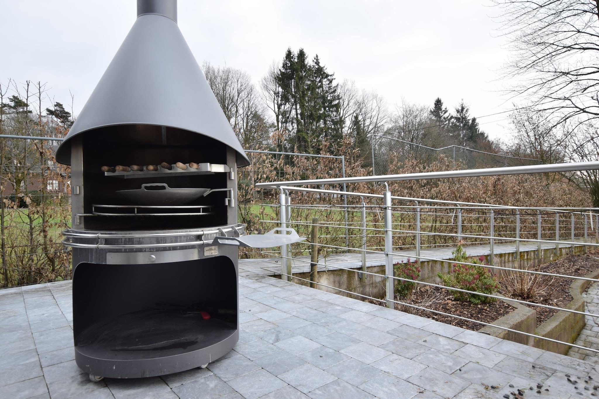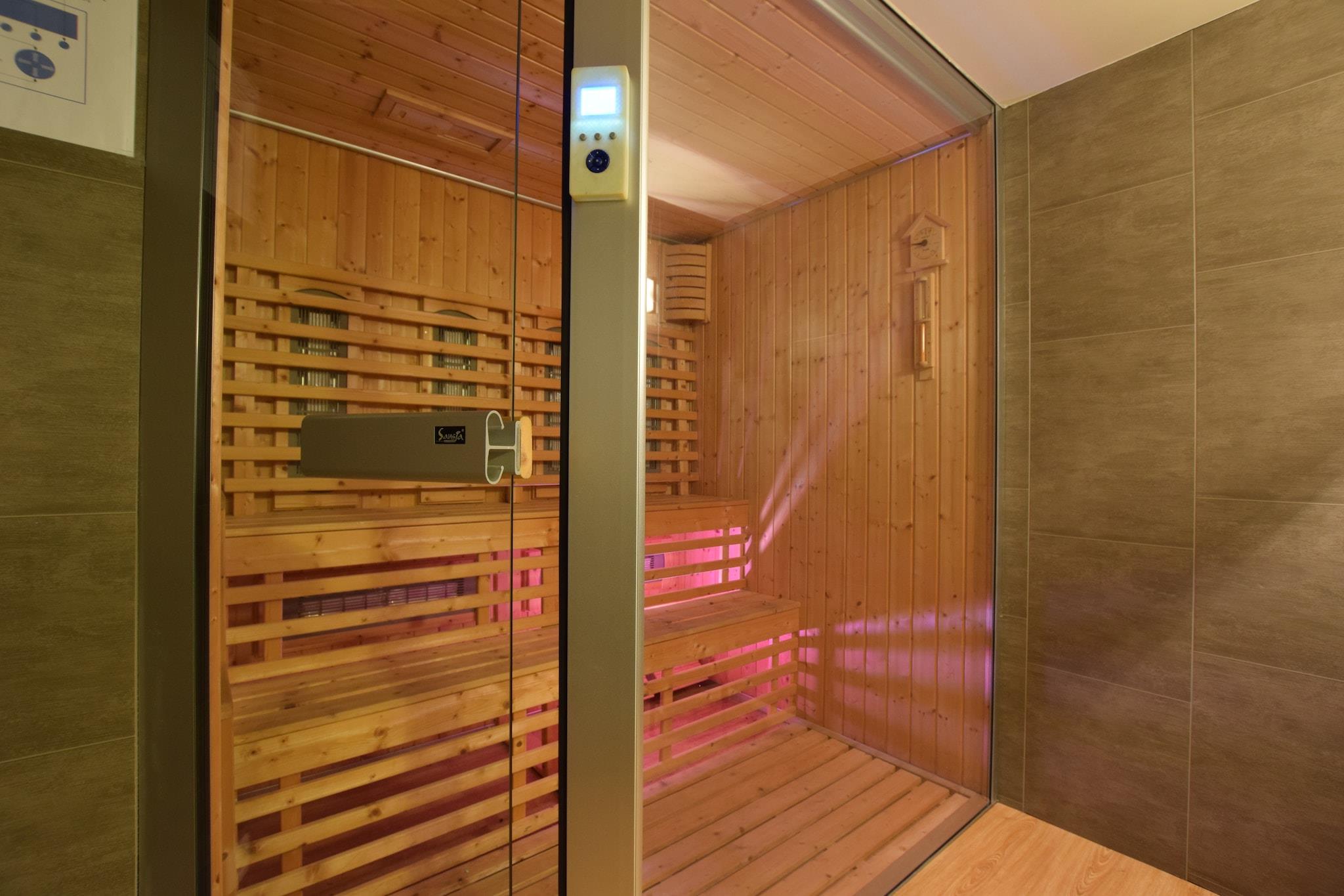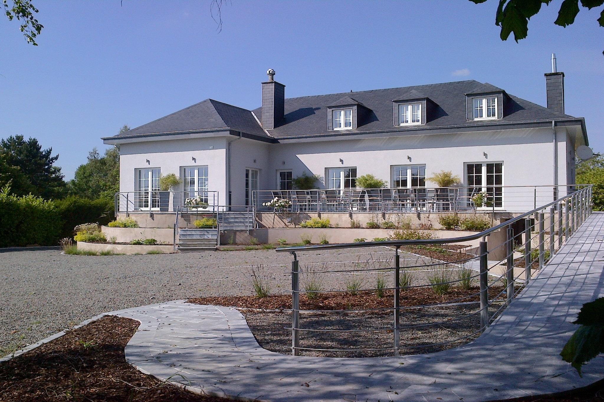 Ground floor: (Living room(TV, fireplace, DVD player, stereo unit), dining room(dining table, fireplace, high chair), Kitchen(radio, electric kettle, 2x cooker(4 ring stoves), coffee machine(filter, pads), 2x oven, microwave, dishwasher, fridge(american), fridge-freezer), bedroom(double bed), bedroom(2x single bed), bedroom(bunk bed), bathroom(shower, 2x washbasin, toilet)) On the 1st floor: (Living room(single bed, TV, radio, toys), bedroom(2x single bed), bedroom(2x single bed), Bedroom with bathroom(double bed, shower, washbasin, toilet), Bedroom with bathroom(2x single bed, shower, washbasin, toilet), Bedroom with bathroom(2x single bed, shower, washbasin, toilet), Bedroom with bathroom(2x single bed, shower, washbasin, toilet), bathroom(bath tub, washbasin, toilet)) Basement: (bathroom(shower, washbasin, toilet), washing room(tumble dryer, washing machine), fitness room(radio, play equipment, table football, 4x fitness equipment), hall(TV, DVD player, meetings, overhead projector), relaxation area(shower, infrared sauna, 2x washbasin, toilet), swimming pool(private, heated, indoor, 8 x 4 m.)) 2x terrace, garden, garden furniture, BBQ, 10x parking, slide, children's bed, children's bed, children's bed, children's bed