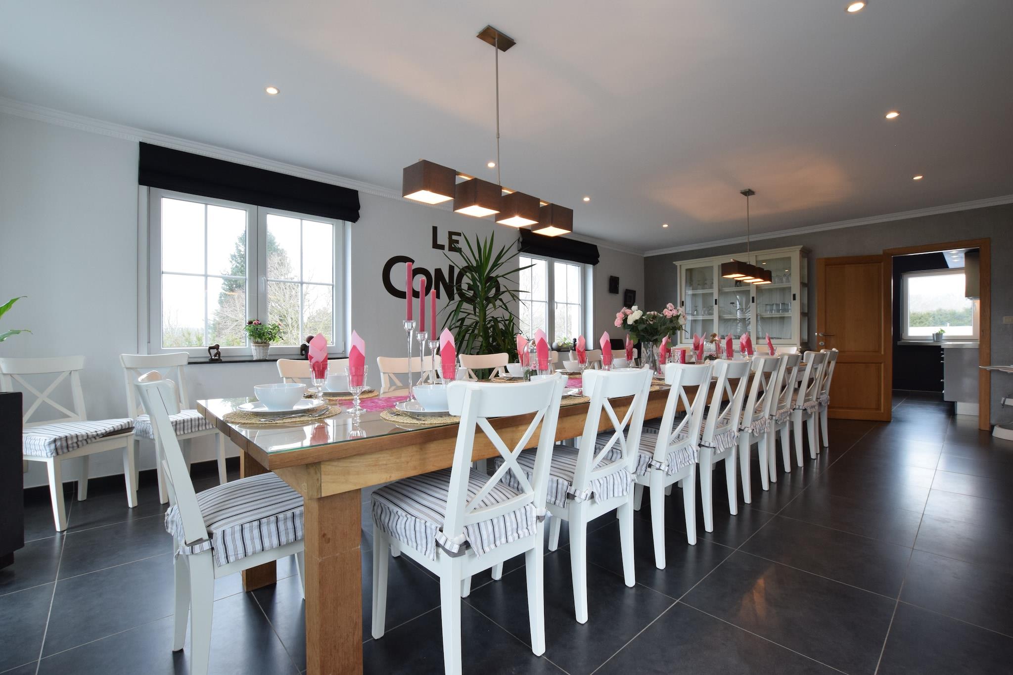 Situated amidst the beautiful nature of Ochamps, this 9-bedroom cottage has an infrared sauna to unwind and a private swimming pool to refres. It is an ideal choice for a group of 18 or families with children to occupy. The surroundings have lovely forests, nature reserves and watercourses, ideal for walking, riding and mountain biking. Trips are possible to the Euro Space centre at 10 km, Redu at 13 km and Bouillon at 30 km. You can have fun discovering Belgian Ardennes from here. Spend cosy time indoors relaxing in the living room with fireplace. There is a modern kitchen and a dining room with fireplace to have meals together. The table football and overhead projector will keep you entertained. Kids can play with the slide in the furnished garden. You can enjoy the barbecue from the terrace. A children's bed, high chair and parking for 10 vehicles are also available. Check-in between 4 ? 6 PM and check-out between 9 ? 10 AM.