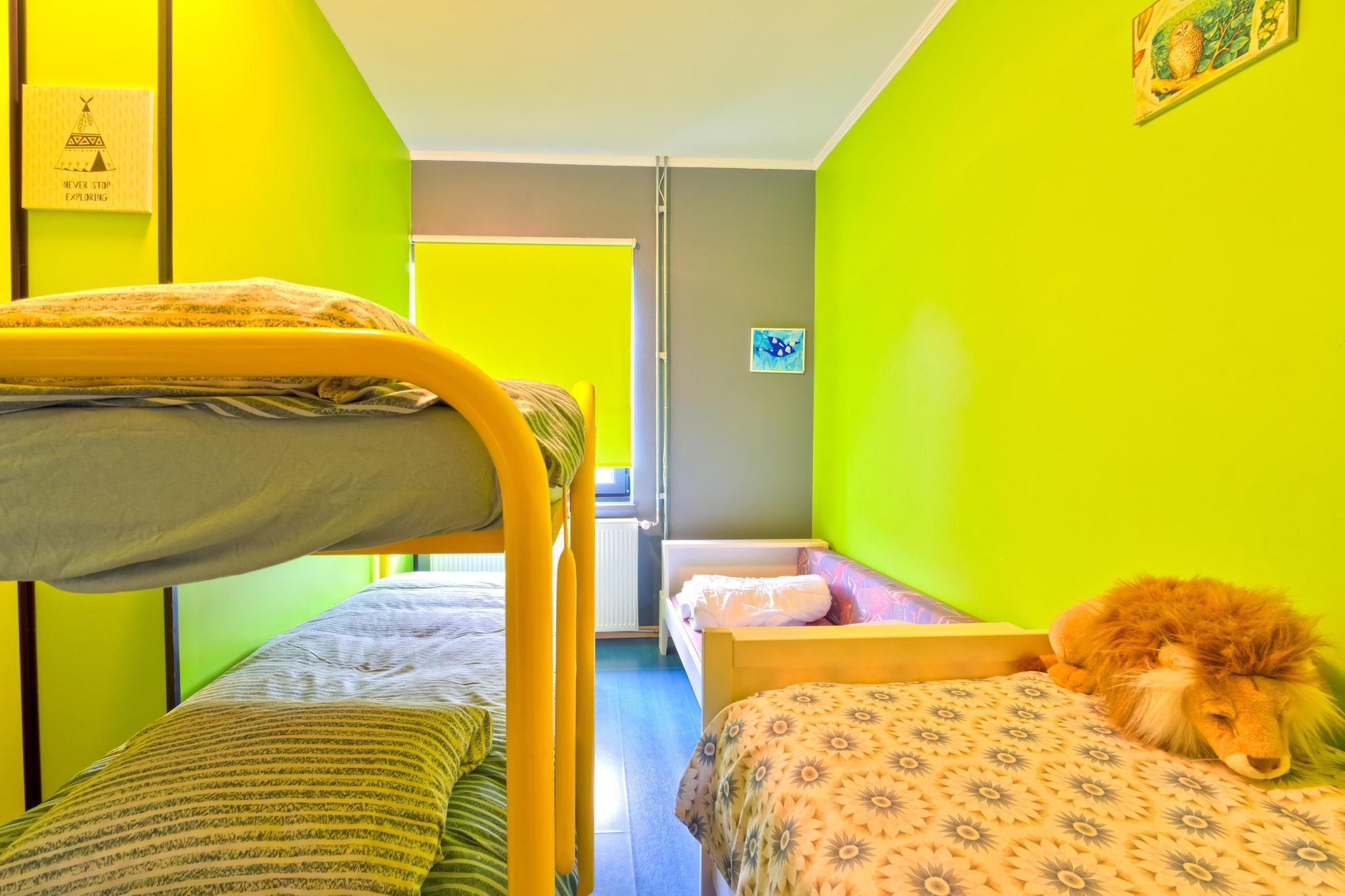 This spacious holiday home in Lierneux can accommodate eight people and also welcomes two dogs. There are four bedrooms and a bathroom equipped with a shower and toilet, plus an extra toilet in the hallway. The spacious living room has a television, Wi-Fi and a cosy pellet stove, making it an ideal place to relax. The well-equipped kitchen has modern appliances, including a dishwasher and a combination microwave. For some extra entertainment, there is a veranda with table football and there are several board games and a ping-pong table. Outside you will find a large terrace with a barbecue and deck chairs, where you can enjoy the sun. The private rear garden is child-friendly with play equipment, a football goal and a basketball ring so the little ones can have fun. For dogs, there is an enclosed dog field at the front of the garden (shared with one other holiday home), which provides a safe play environment. There is also enough parking space for cars and bicycle storage. A washing machine is available for longer stays. The green surroundings around Lierneux are perfect for beautiful walks (also GR routes nearby) and also offer opportunities for mountain biking, with routes 12 and 13 being particularly recommended. Cycling along scenic routes with beautiful viewpoints, such as the nearby village of Banneux, is a real pleasure. Hiking and cycling maps are available at the information desk in Lierneux. River Lienne offers numerous possibilities, playing in the water, cooling off on hot days, quiet fishing or sporty kayaking. The charming towns of Durbuy, La Roche en Ardenne, Vielsalm, Houffalize and Achouffe are about a 30-minute drive away, and in winter you can enjoy the snow in the nearby Monty ski resort, which is just 900 metres from the house. Supermarkets can be reached within 15 minutes, and there is a bakery just 100 metres away. Below this 8-person holiday home is also a 5-person holiday home, which can be booked under code BE-0025-18.