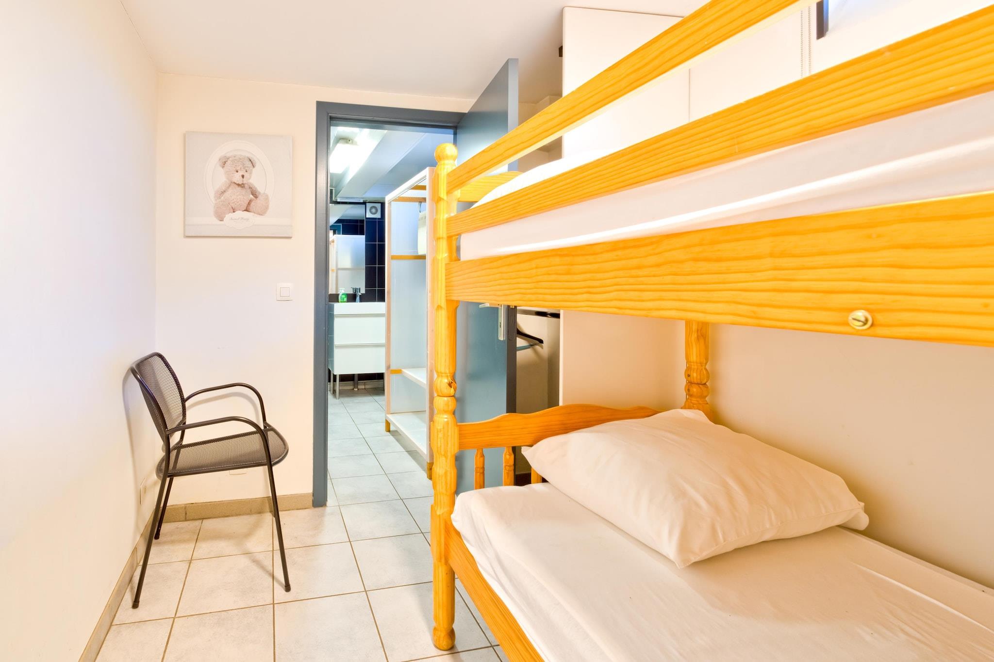 Ground floor: (Living room(double sofa bed, TV, dining table, stove, streamingservice), dining room(coffee machine), Kitchen(cooker, oven, combination microwave, dishwasher, freezer), bedroom(double bed(140 x 200 cm)), bedroom(bunk bed(80 x 180 cm)), bathroom(shower, washbasin, toilet)) washing machine, heating, terrace, garden(landscaped garden), bicycle storage, garden furniture, sun loungers, BBQ(shared with other guests), parking, deckchairs, parasol, table football, party games