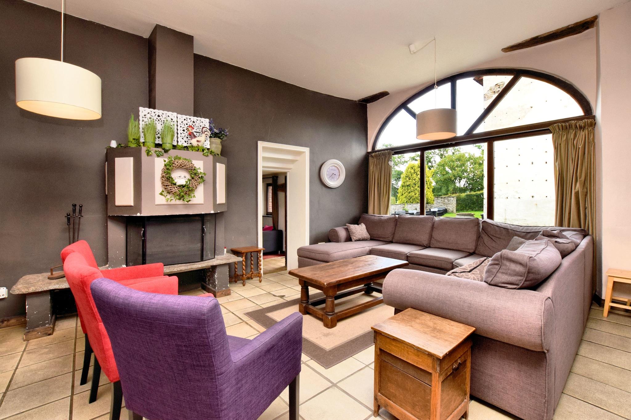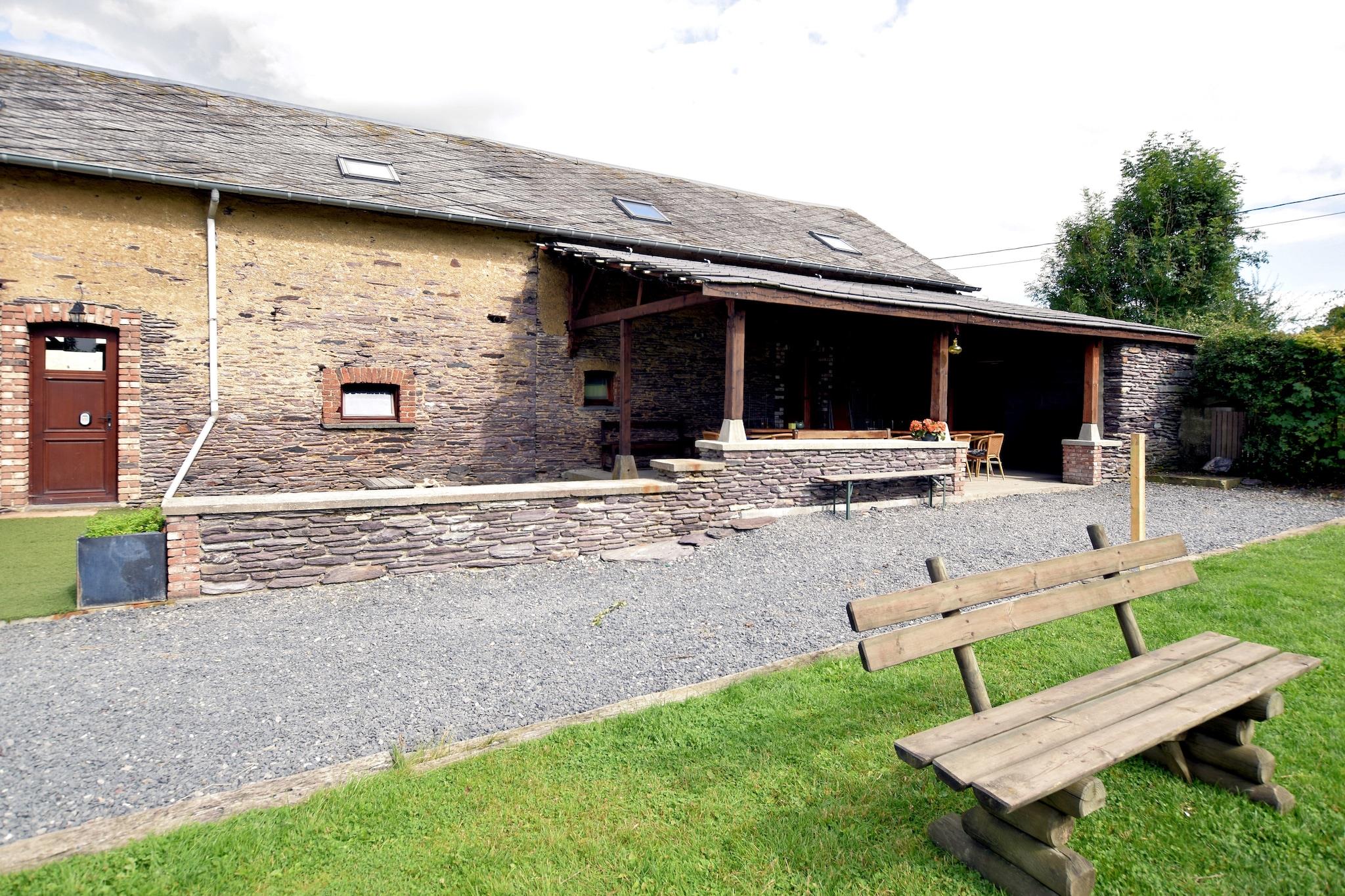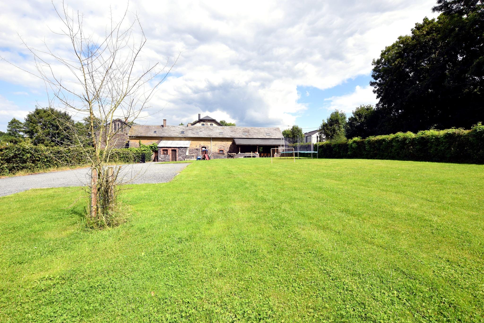Authentic group house for 20 guests with fireplace and large garden in Lierneux Welcome to Le Muretin, a spacious and charming holiday home for up to 20 guests, located in the beautiful landscape of the Ardennes in Lierneux, at an altitude of around 400 meters. This authentic house with characterful stone walls is the perfect place for large families, groups of friends or multiple families who want to enjoy peace, nature and quality time together. Inside, the house features a large living room with seating area, TV and a cozy fireplace, ideal for long evenings together. Next to it you will find the spacious dining room with a large table for 20 people, perfect for shared meals. The fully equipped open kitchen provides everything needed to cook for large groups, including an 8-zone electric cooker, oven, microwave, dishwasher and multiple refrigerators and freezers. For extra comfort there are 7 bedrooms on the first floor, some with a combination of a double bed and single beds. One bedroom has a private bathroom, while the other guests can use the spacious bathrooms on the ground floor with multiple showers, washbasins and toilets – ideal for larger groups. For entertainment there is a playroom with table football, while outside you will find a large garden with trampoline where children can play freely. On sunny days you can relax together on the spacious 50 m² terrace or the covered 30 m² terrace, perfect for a barbecue or long evenings outdoors. The surroundings of Lierneux are a paradise for nature lovers. From the house you can access beautiful walking and cycling routes through forests and valleys. Popular destinations such as Vielsalm and Coo are nearby, where you can visit the famous Coo Waterfalls, the Plopsa Coo amusement park and many outdoor activities. In winter the region also offers cross-country skiing and winter sports. Practical facilities such as wifi, central heating, bicycle storage, parking, baby beds and high chairs ensure a comfortable stay. Pets are welcome: maximum 2 pets at EURO2.50 per pet per night, so your four-legged friend can also enjoy a stay in the Ardennes.