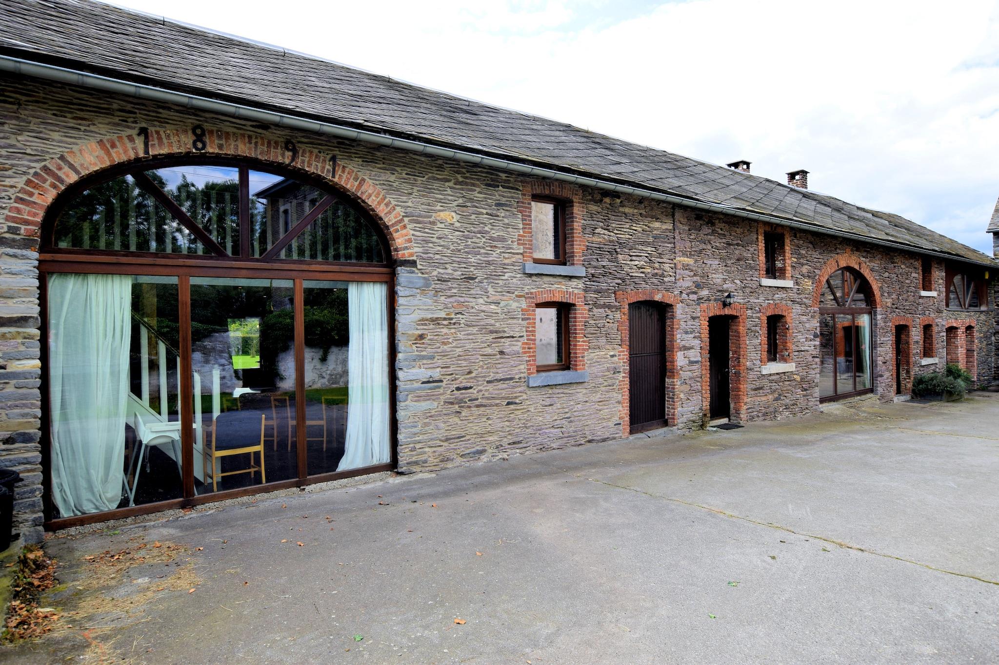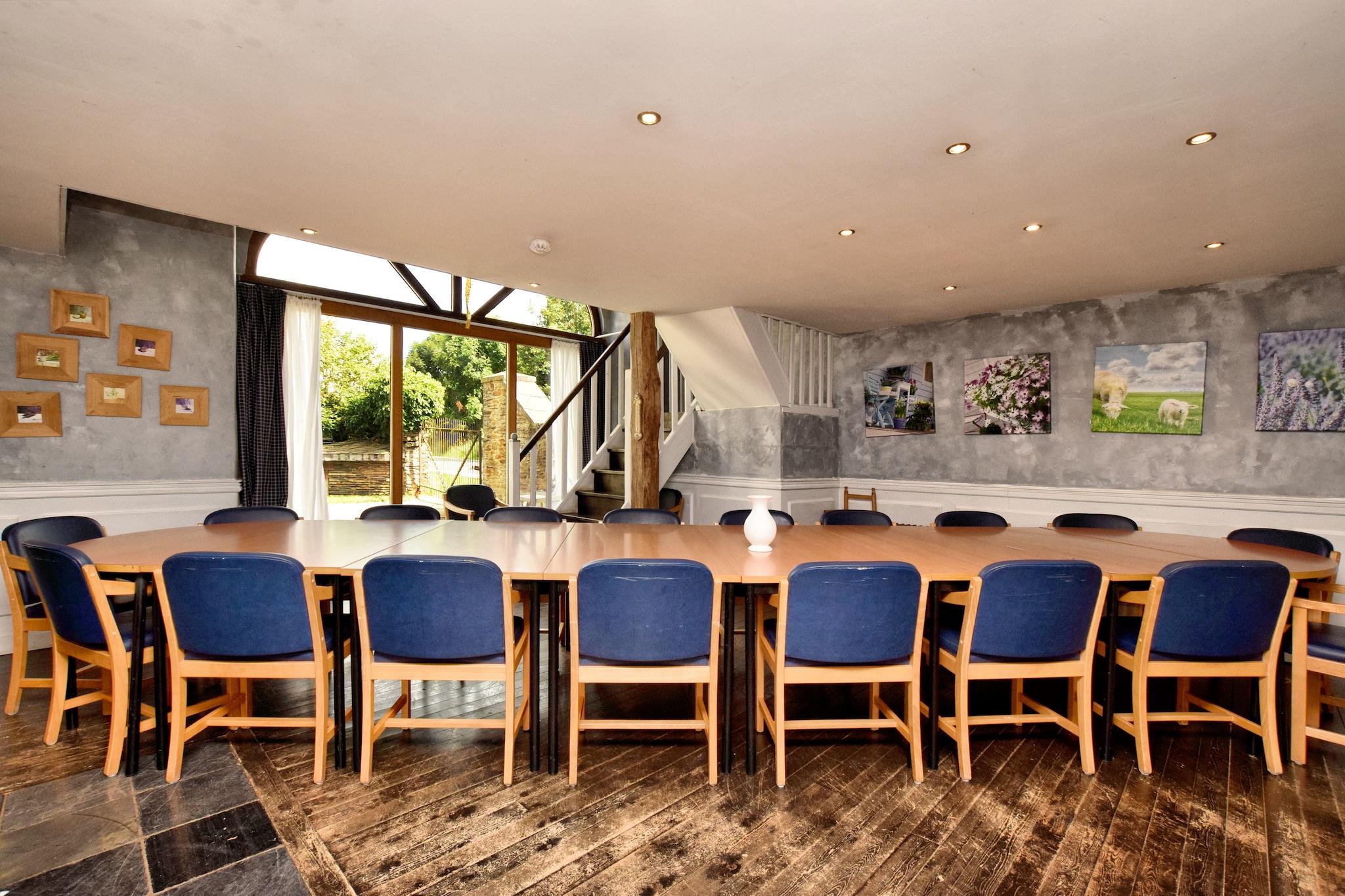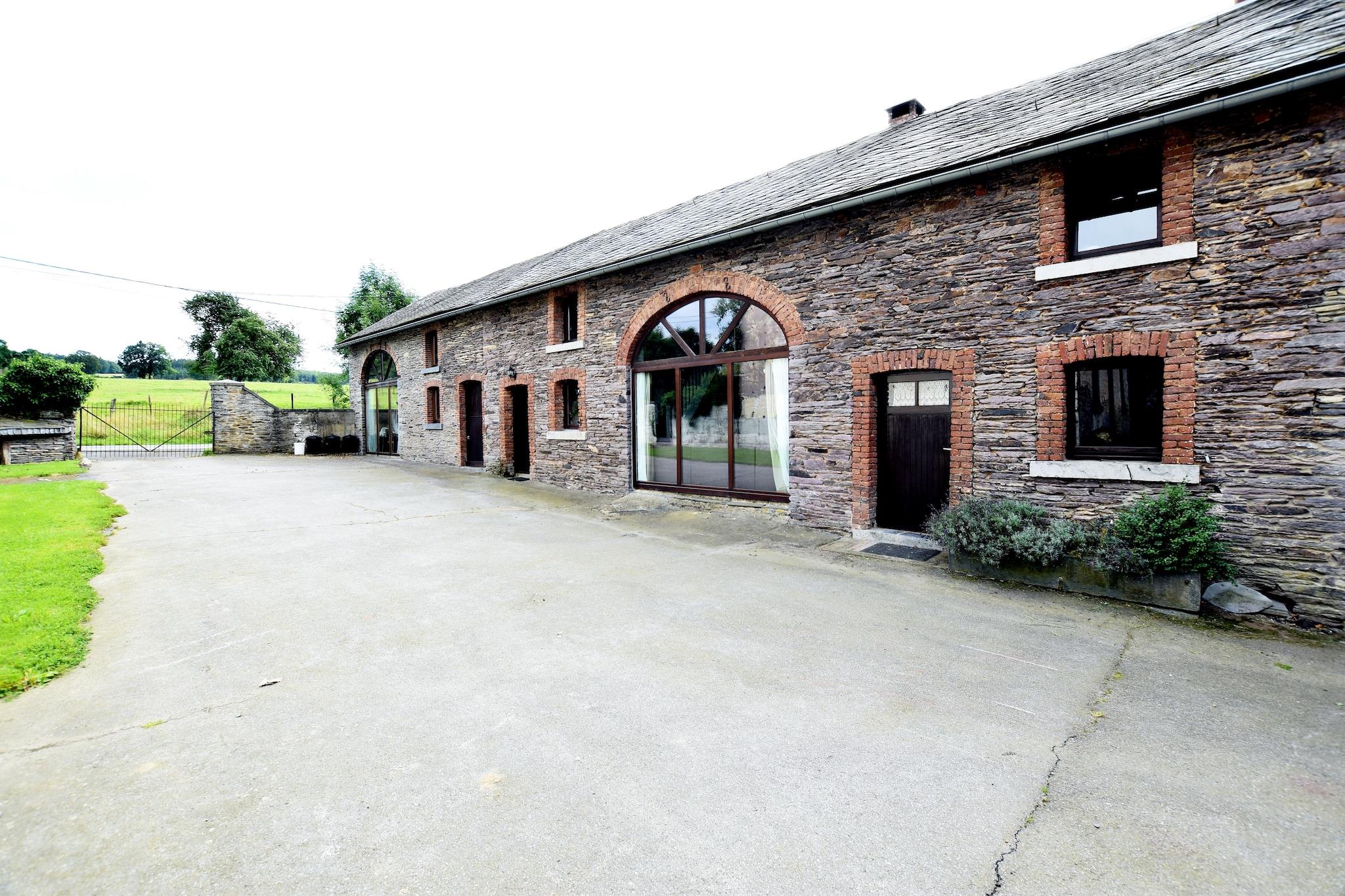 Authentic group house for 20 guests with fireplace and large garden in Lierneux Welcome to Le Muretin, a spacious and charming holiday home for up to 20 guests, located in the beautiful landscape of the Ardennes in Lierneux, at an altitude of around 400 meters. This authentic house with characterful stone walls is the perfect place for large families, groups of friends or multiple families who want to enjoy peace, nature and quality time together. Inside, the house features a large living room with seating area, TV and a cozy fireplace, ideal for long evenings together. Next to it you will find the spacious dining room with a large table for 20 people, perfect for shared meals. The fully equipped open kitchen provides everything needed to cook for large groups, including an 8-zone electric cooker, oven, microwave, dishwasher and multiple refrigerators and freezers. For extra comfort there are 7 bedrooms on the first floor, some with a combination of a double bed and single beds. One bedroom has a private bathroom, while the other guests can use the spacious bathrooms on the ground floor with multiple showers, washbasins and toilets – ideal for larger groups. For entertainment there is a playroom with table football, while outside you will find a large garden with trampoline where children can play freely. On sunny days you can relax together on the spacious 50 m² terrace or the covered 30 m² terrace, perfect for a barbecue or long evenings outdoors. The surroundings of Lierneux are a paradise for nature lovers. From the house you can access beautiful walking and cycling routes through forests and valleys. Popular destinations such as Vielsalm and Coo are nearby, where you can visit the famous Coo Waterfalls, the Plopsa Coo amusement park and many outdoor activities. In winter the region also offers cross-country skiing and winter sports. Practical facilities such as wifi, central heating, bicycle storage, parking, baby beds and high chairs ensure a comfortable stay. Pets are welcome: maximum 2 pets at EURO2.50 per pet per night, so your four-legged friend can also enjoy a stay in the Ardennes.