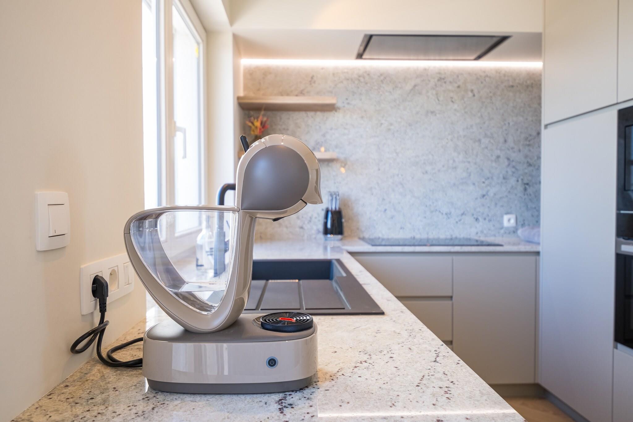 Ground floor: (Living room(double sofa bed, TV, dining table, seating area, balcony), Kitchen(electric kettle, toaster, coffee machine, oven, microwave, dishwasher, fridge, freezer, fridge-freezer, Juicer), bedroom(double bed), bedroom(double bed), bathroom(shower, hairdryer), toilet(guest toilet), garage, Internet access, washing machine, terrace, deckchairs, lift, ironing board, iron) On the 8th floor: (open kitchen(electric kettle, toaster, coffee machine, oven, microwave, dishwasher, fridge, freezer, dishes and cutlery, Cooking basics), Living/diningroom(double sofa bed(140 x 200 cm), TV, dining table, seating area), bedroom(double bed(twin duvet, 160 x 200 cm)), bedroom(double bed(twin duvet, 160 x 200 cm)), bathroom(shower, washbasin, hairdryer), toilet(toilet)) garage, washing machine, air conditioning, terrace, deckchairs, lift, ironing board, iron, air to air heatpump, drying cabinet