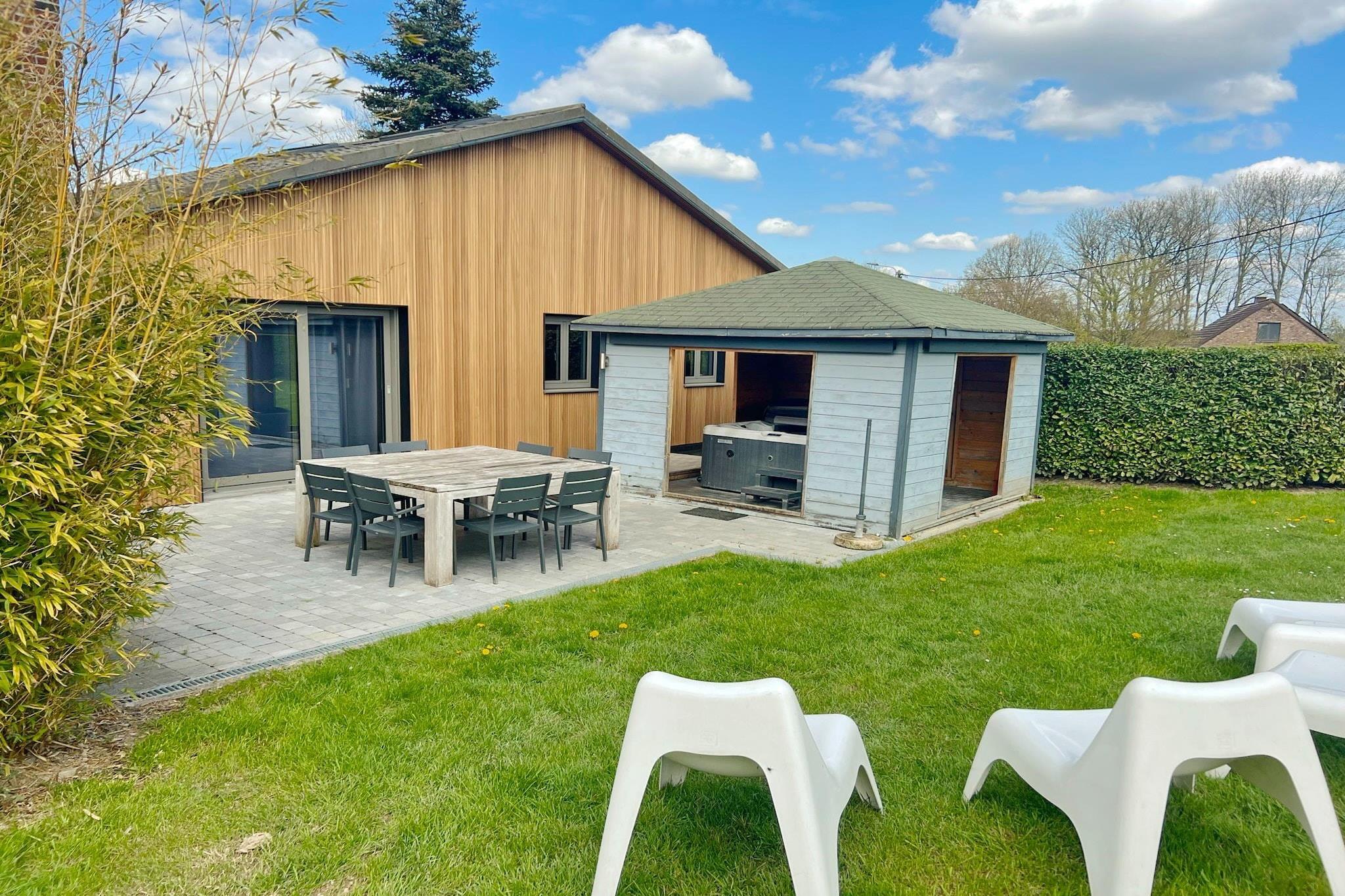 A cozy chalet in a private garden of over 1000 m². A total of 8 people can stay here. The zen design and the available comfort ensure that you will not be short of anything. The holiday home has a sauna for 2 persons with a shower and an indoor whirlpool for 5 persons on the terrace. The house is within walking distance of Noiseux and the Ourthe. The surrounding area is ideal for walks and cycling trips. The public swimming pool and public transport are all 10 km away. The chalet has a spacious living room with an open kitchen and a dining area. The house also has a cozy lounge corner in a mezzanine above the kitchen. You also have 4 bedrooms, 2 of which are on the 1st floor and have a double tatami bed. The 2 other rooms are on the ground floor, together with the bathroom with the bathtub.