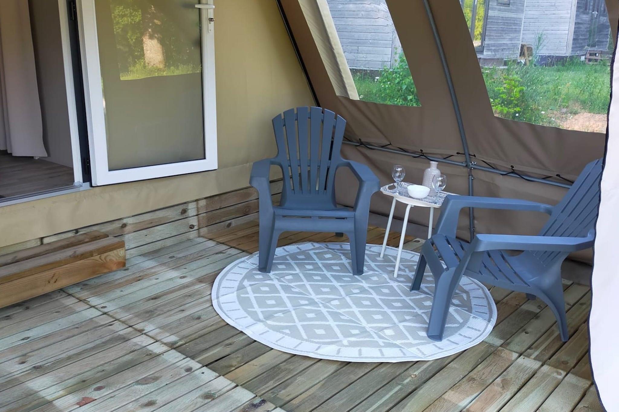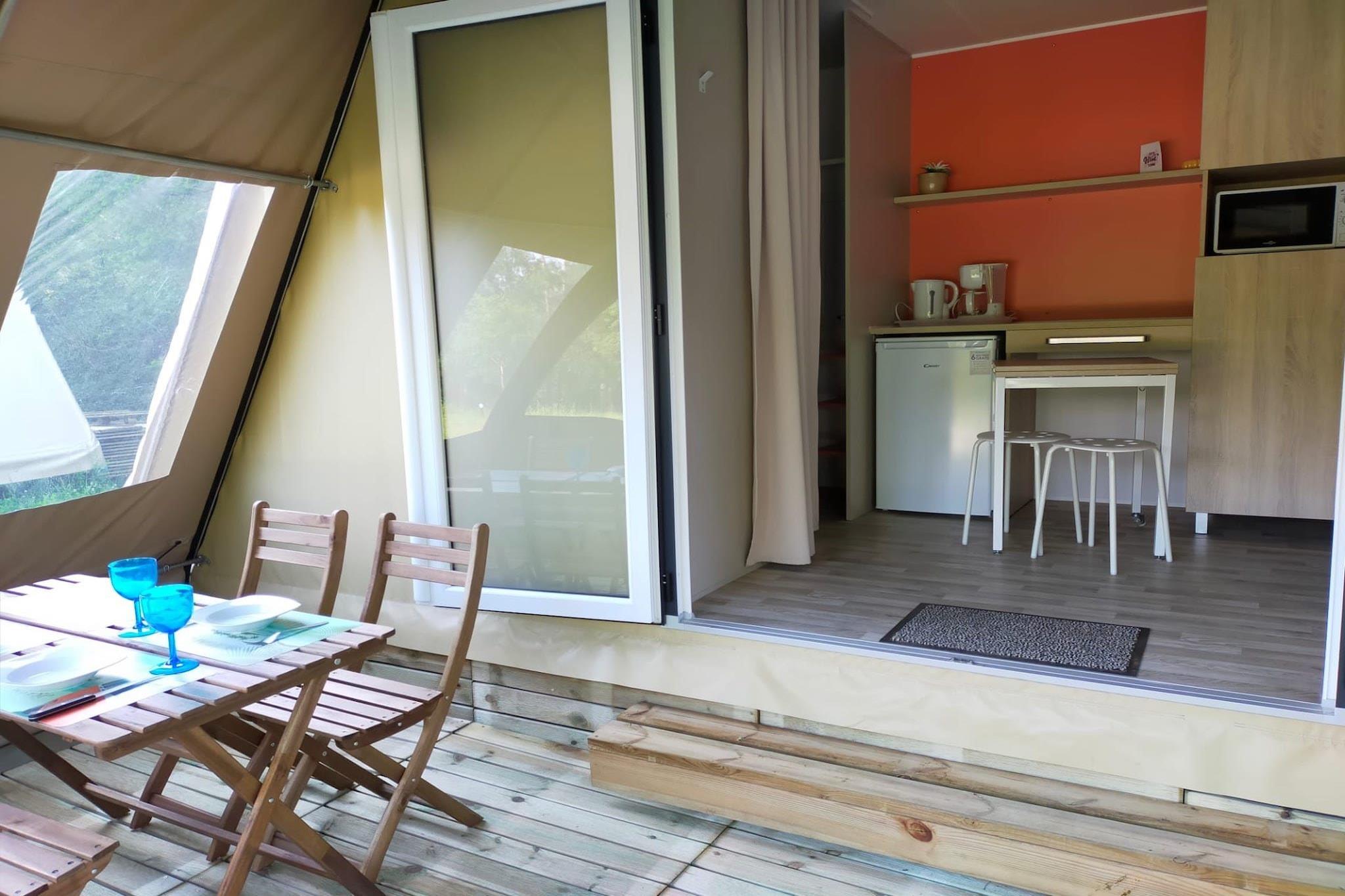Cozy Glamping in the Heart of Nature Reconnect with simplicity in this charming tent lodge set within Holiday Park Ardinam, just outside the picturesque village of Olloy-sur-Viroin. Blending the outdoor spirit with thoughtful comfort, the lodge features a central living space with a compact kitchenette (microwave, fridge, coffee machine, and kettle) and foldable dining area. Two cozy sleeping sections flank the center—one with a double bed, the other with two singles that can convert into a lounge space. Step outside under the awning to relax at your private table and lounge chairs surrounded by fresh air and forest sounds. The Ardennes at Your Doorstep Nestled in the rolling hills of the Namur region and only 39 km from Dinant, this peaceful park setting is ideal for walkers, cyclists, and families seeking a slower pace. Although the lodge doesn’t have a private bathroom, the well-maintained communal sanitary facilities are close by. A shared outdoor pool offers a refreshing dip in summer, while parking is conveniently located nearby for easy unloading and day trips. Local Taste, Belgian Style Just a short stroll from your lodge, Olloy-sur-Viroin invites you with its friendly charm and hidden culinary gems. Dine at cozy bistros or traditional Belgian cafés offering hearty regional dishes and locally brewed beers. Prefer to picnic? Pick up fresh bread, cheese, and charcuterie from village shops and savor them under the trees—glamping has never tasted so good.