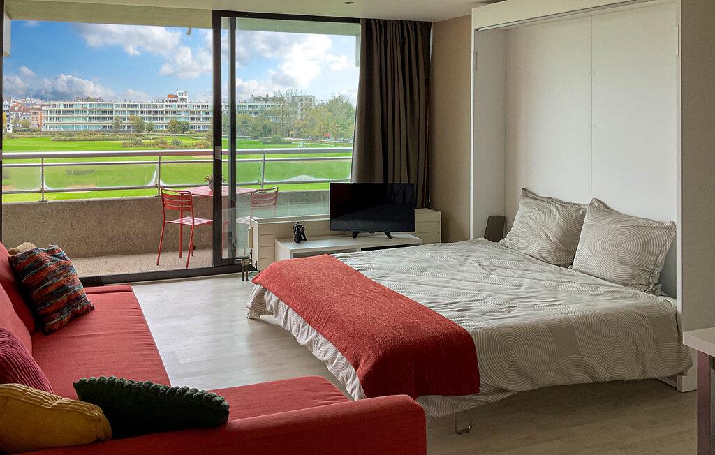 Dieses Luxus-Studio befindet sich auf dem Wellington Golf & Racecourse in Oostende. Der Boulevard und die breiten Sandstrände sind 100 m entfernt. Es ist besonders geschmackvoll und geräumig eingerichtet. Vom Wohnzimmer und Balkon genießen Sie die schöne grüne Umgebung. Das Badezimmer ist luxuriös eingerichtet und die Küche ist komplett ausgestattet. Sie leben friedlich, mit der Straßenbahn befinden Sie sich schnell im Stadtzentrum mit Casino, Kursaal, Einkaufsstraßen und Restaurants. Tipps: Welterbe Brügge, Sealife in Blankenberge und Plopasland de Panne, Radfahren durch die Dünen.