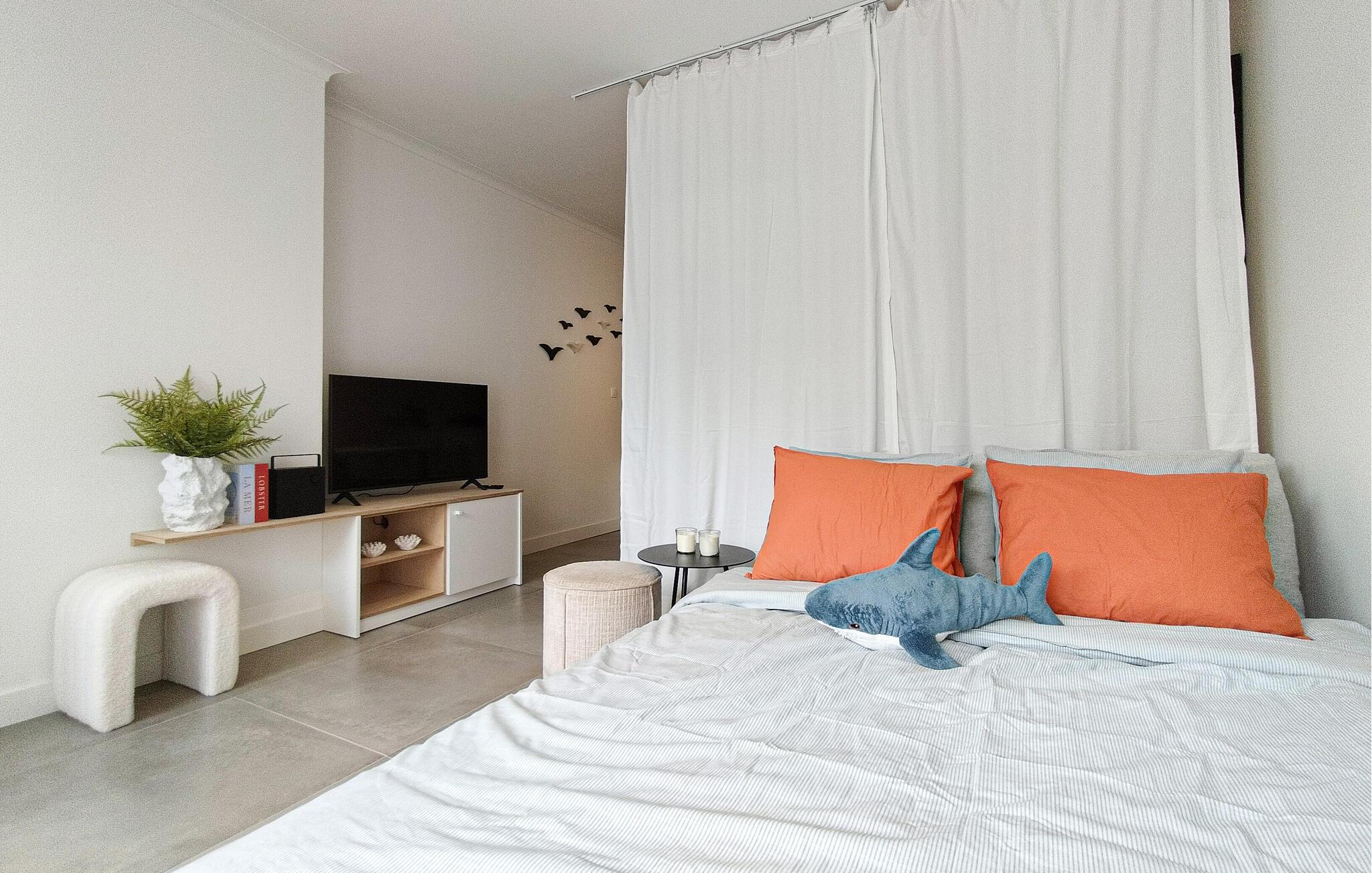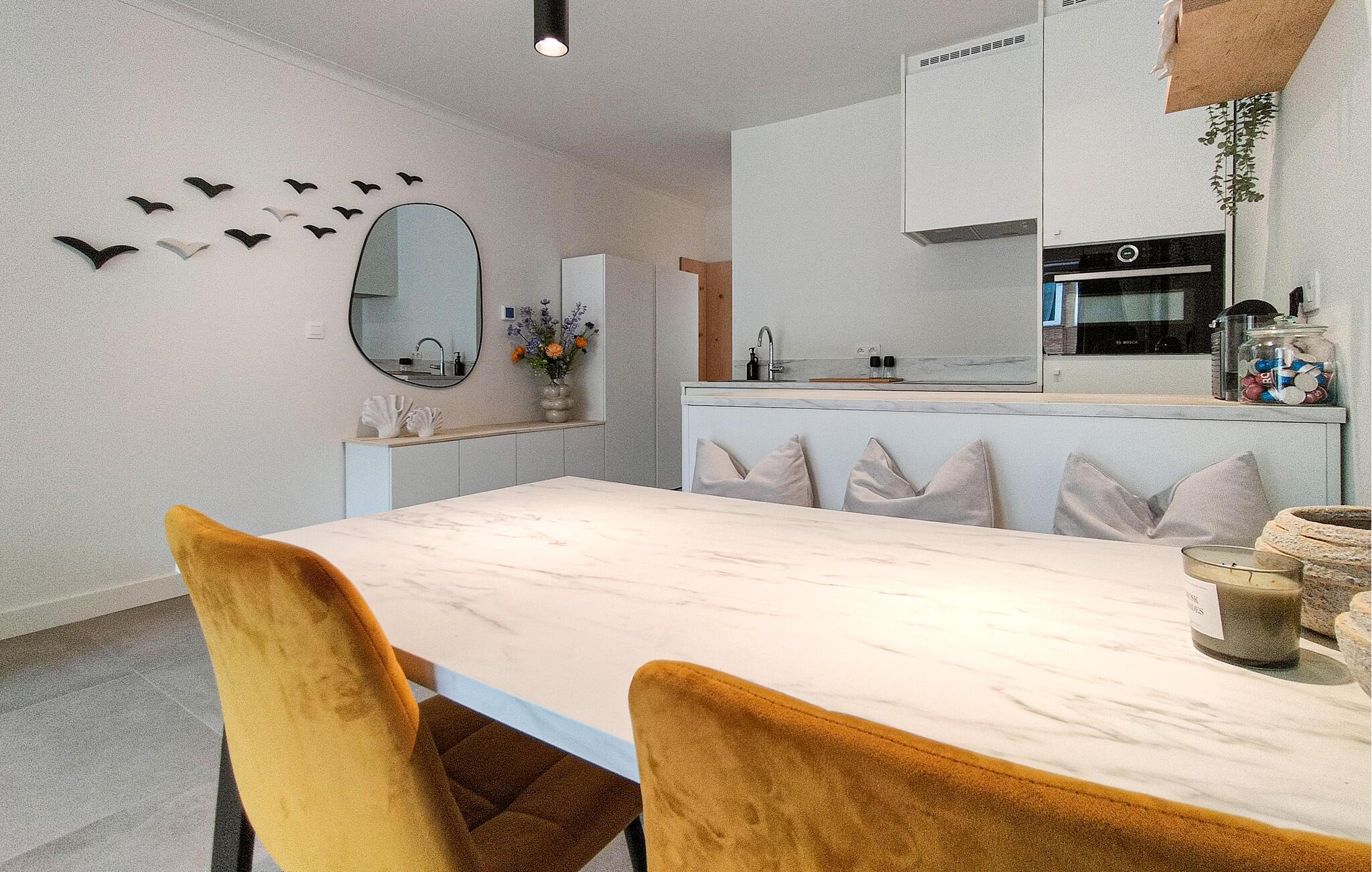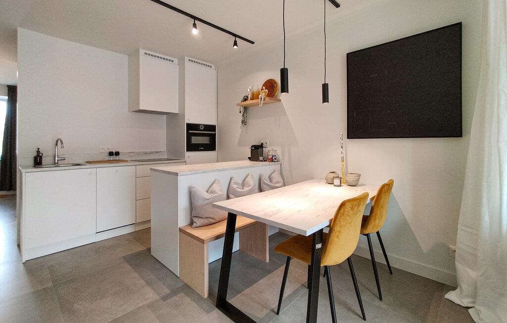 Verleben Sie entspannte Tage in dieser geschmackvoll gestalteten Ferienwohnung in unmittelbarer Nähe zum Meer. Genießen Sie die stilvolle Einrichtung, viel Licht und eine offene Raumaufteilung. Machen Sie es sich im großzügigen Wohnbereich bequem, dezente Farben und ausgewählte Details schaffen eine angenehme Atmosphäre. Lesen Sie in Ruhe, genießen Sie die gemeinsamen Urlaubsmahlzeiten oder nutzen Sie den Esstisch für lustige Gesellschaftsspiele am Abend.