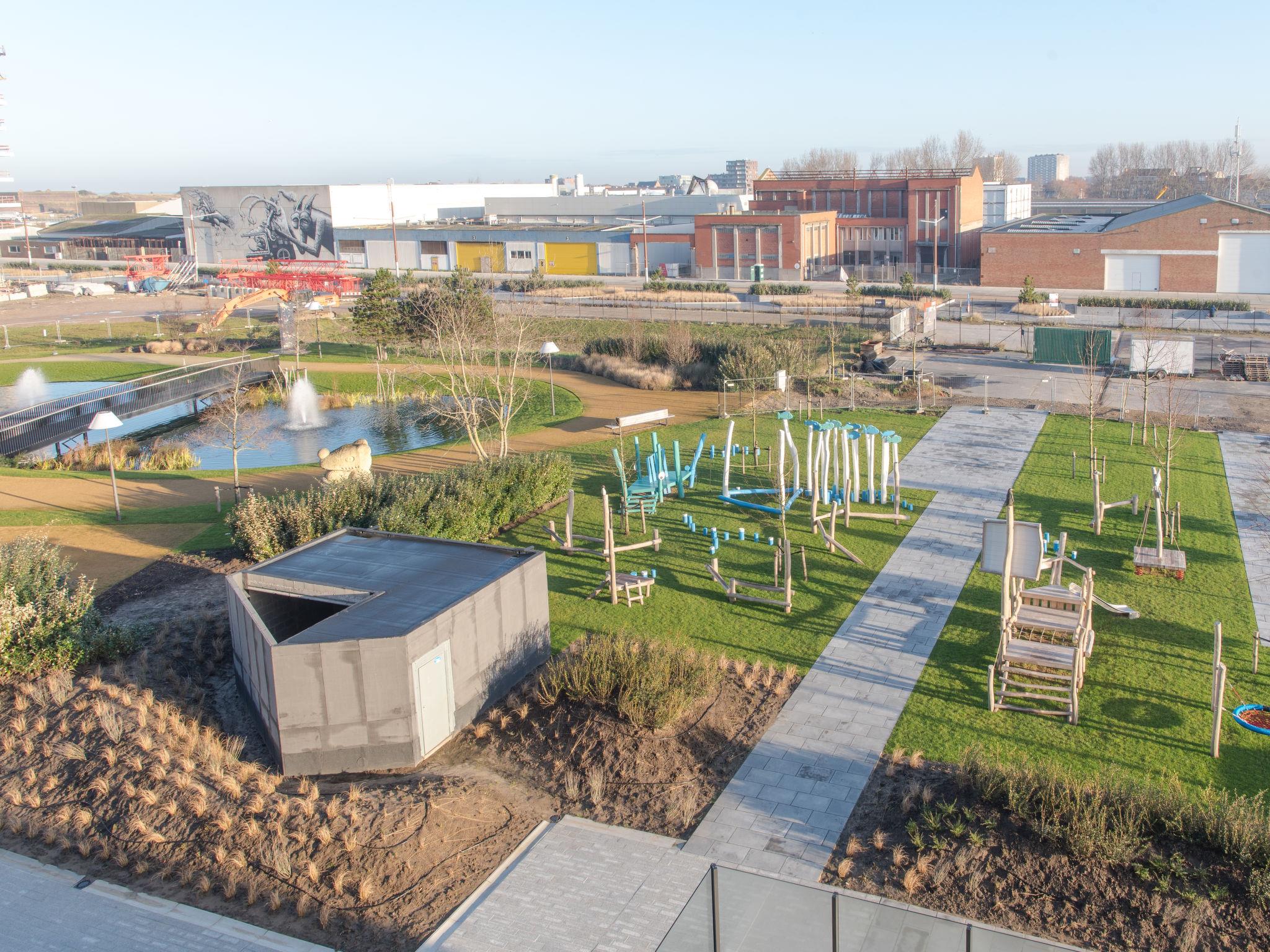 Modern, comfortable residence "Baelskaai 25", 14 storeys, built in 2020. In the district of Oosteroever, on the outskirts, 2 km from the centre of Oostende, 600 m from the sea, 600 m from the beach. For shared use: park, pond. Children's playground (slide, swing). In the house: bistro, lift, storage room for bicycles. Shop 300 m, supermarket 350 m, restaurant 80 m, 25 minute walk to the centre, tram "Vismijn" 600 m, bus stop "De Lijn" 1.5 km, railway station "NMBS Oostende" 4 km, ferry "Oosteroever - Visserskaai" 1 km, sandy beach "Oostende Strand" 740 m, nudist beach 5 km. Marina 1 km, golf course (18 hole) 7.5 km, surf school 2 km, tennis 4 km. Nearby attractions: Fort Napoleon - exposition / restaurant 900 m, trampolinepark 900 m, Sea Excursions - Captain Blue 150 m, Plopsaland De Panne 43 km, Domein Raversijde 10 km, James Ensor Gallery 2 km. The owner does not accept any youth groups. Neighbourhood highly sensitive to noise. Quietness and good behaviour expected.
