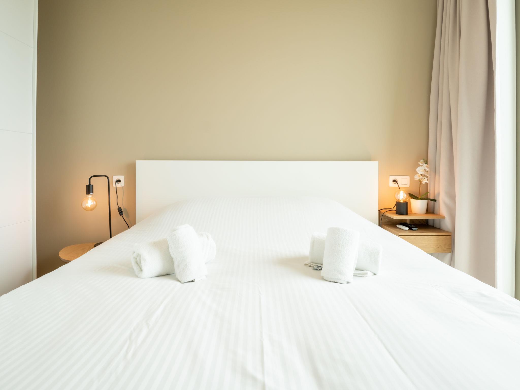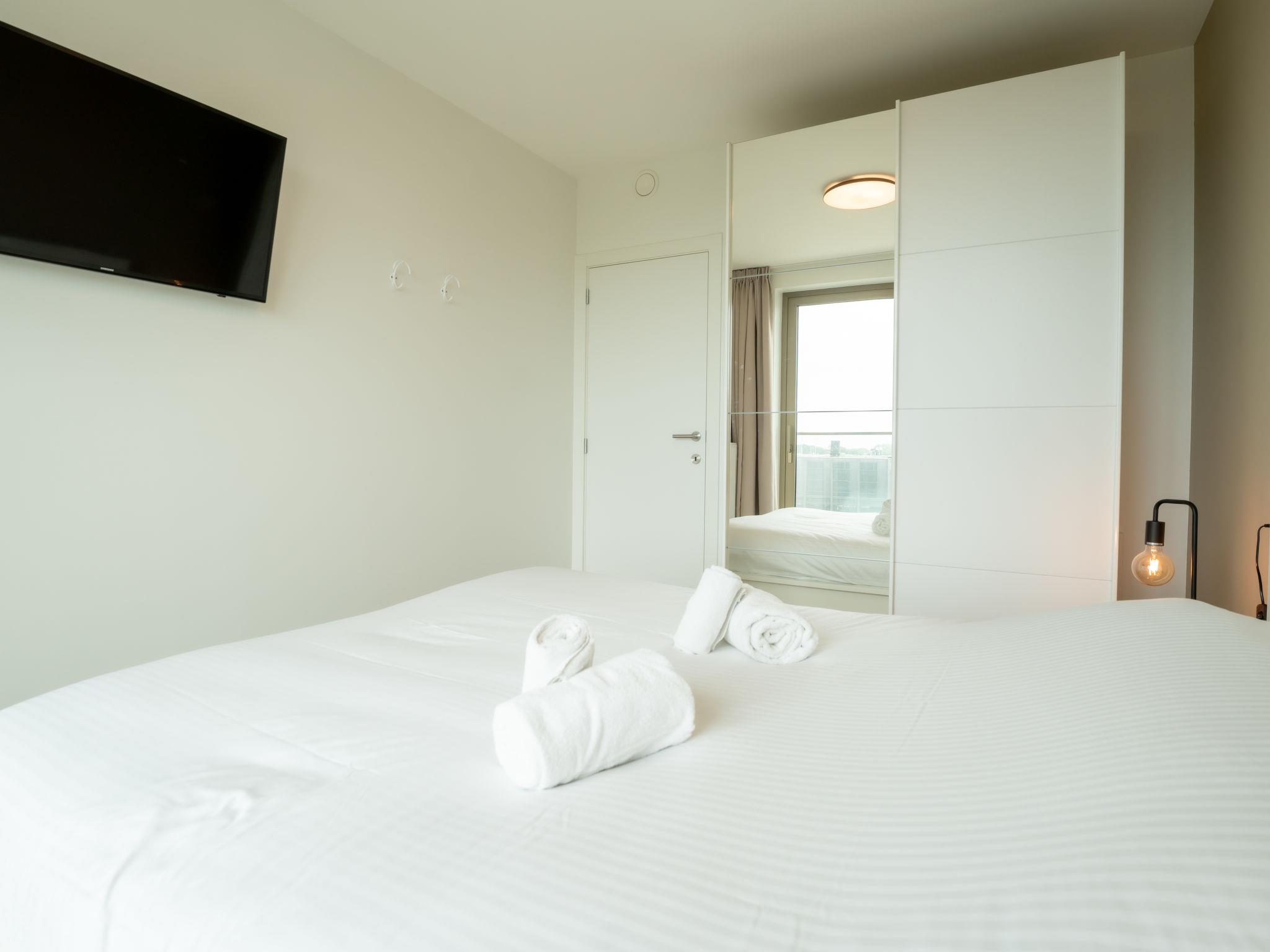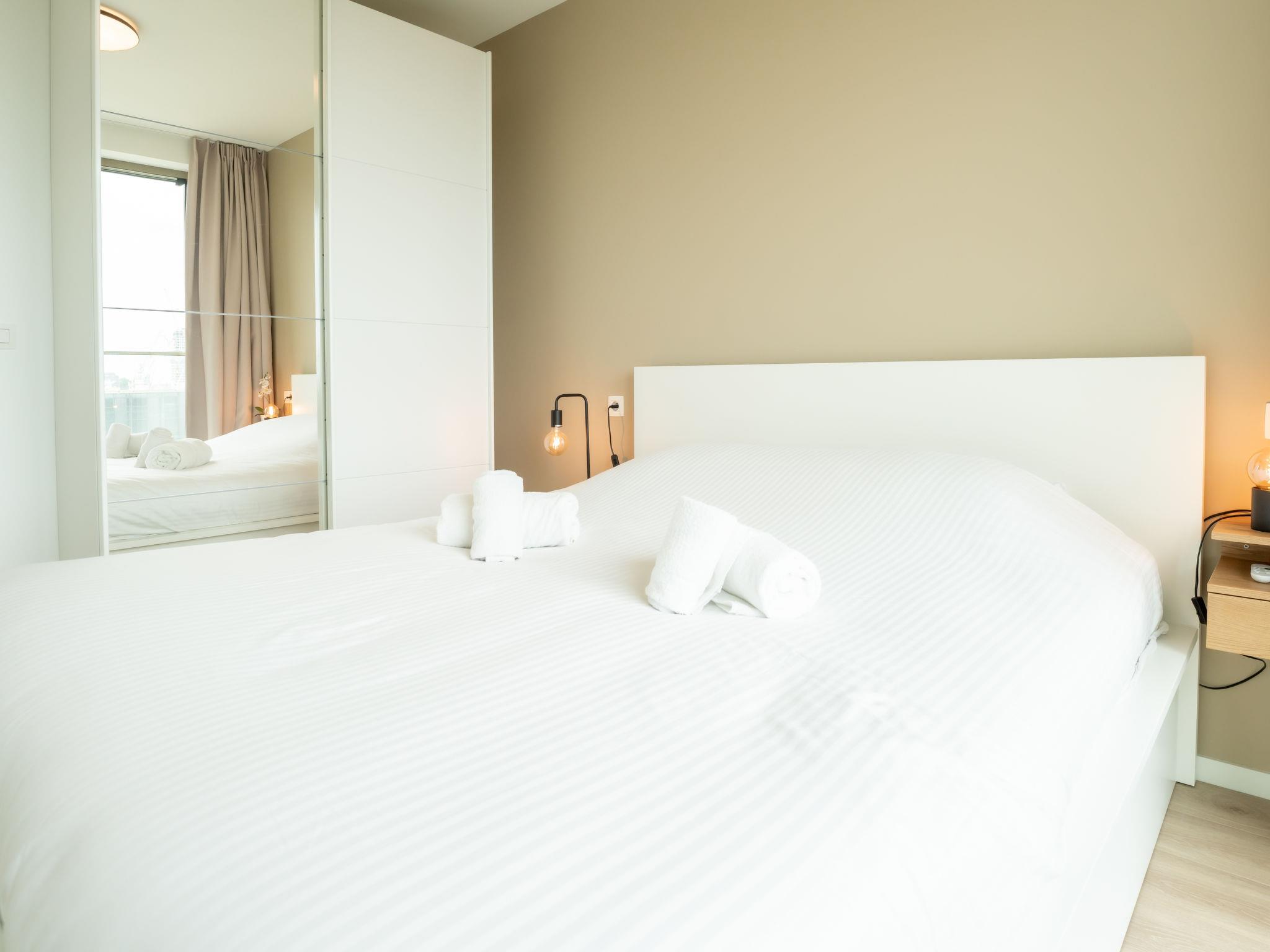 Sky Towers Ostend: Modern, luxurious apartment block "Sky Bridge", 5 storeys, built in 2022. In the centre of Oostende, in a central position, in the heart of the city, 1 km from the sea, 1 km from the beach. For shared use: park with lawn and trees. In the house: lift, storage room for bicycles. Supermarket, shopping centre, restaurant 250 m, bakery 150 m, pedestrian zone 250 m, tram "Oostende Station" 150 m, bus stop "De Lijn" 200 m, railway station "NMBS Oostende" 200 m, sandy beach "Klein strand" 1 km, park "Maria Hendrikapark" 600 m. Marina 50 m, golf course (9 hole) 2 km, surf school 2 km, tennis 1 km. Nearby attractions: Casino Oostende 1 km, Mu.Zee 800 m, Fort Napoleon & Hangtime 2 km, Kinepolis Oostende 2.2 km, Wellington Renbaan 2 km, Atlantikwall Raversyde 6.5 km. Well-known lakes can easily be reached: Spuikom Oostende 2.5 km. Hiking paths: The Christal Ship - Streetart, Marvin Gaye Midnight Love Tour. Please note: baby equipment on request. The owner does not accept any youth groups. The keys‘ handover takes place by the agency Interhome in Bredene, 6 km. Neighbourhood highly sensitive to noise. Quietness and good behaviour expected.