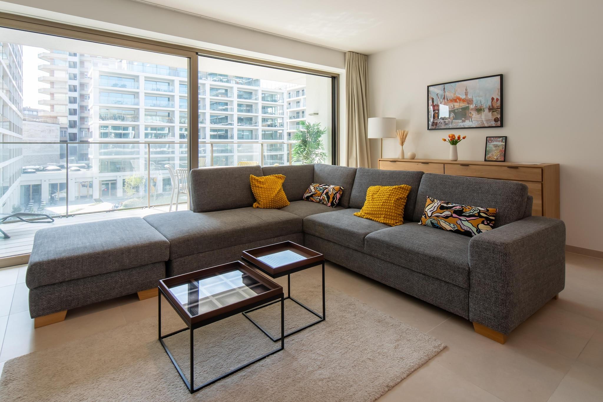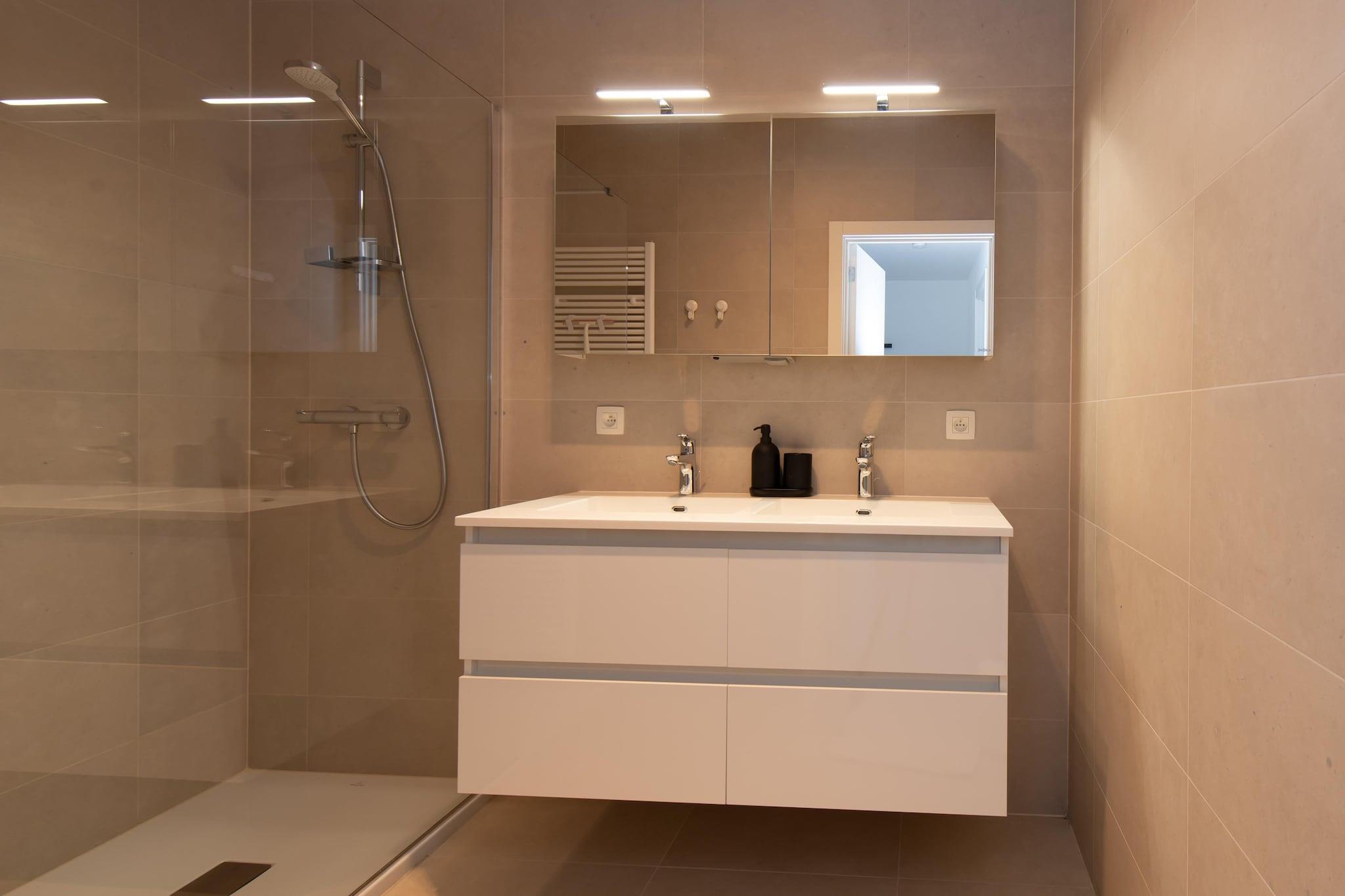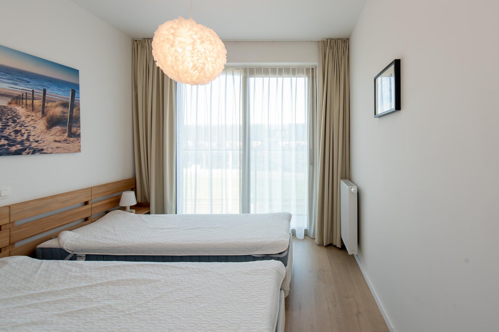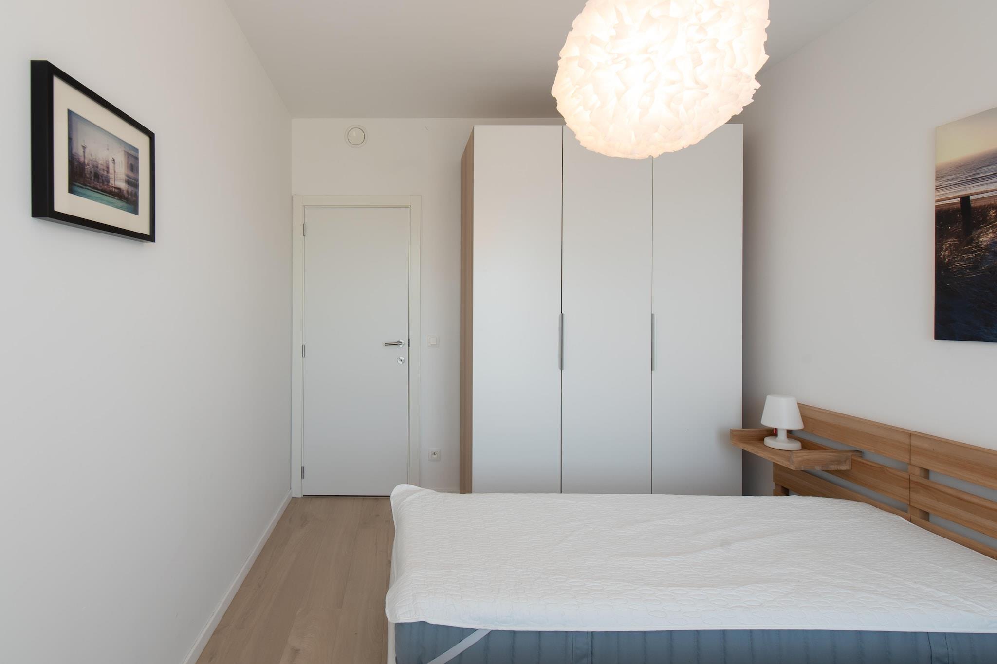 This modern 2-bedroom apartment offers a comfortable and stylish stay for up to four guests. The first bedroom features a double bed with duvet for two, while the second bedroom is fitted with 2 single beds, perfect for children or extra guests. The apartment is non-smoking and pet-free, ensuring a clean and quiet environment. With a spacious lift, guests will find it easy to get in and out. A bicycle shed with two spaces is available for those who wish to explore the area on two wheels. Located close to Ostend station and Mercator dok, the apartment offers easy access to public transport and various attractions. Enjoy a leisurely stroll along the dike and take in the sea views. Guests can also visit nearby cafes, restaurants and shops, all within walking distance. The apartment's south-facing position and terrace make it an ideal place to relax while sunbathing, with a serene view of the courtyard. The well-equipped kitchen allows guests to prepare meals with ease, with modern appliances such as a combi oven, refrigerator and dishwasher. The bathroom includes a shower stall and a single sink, while a separate toilet adds extra convenience. Whether you're relaxing in the living room with sea views or enjoying the fresh air on the terrace, this apartment offers all the comforts of home.