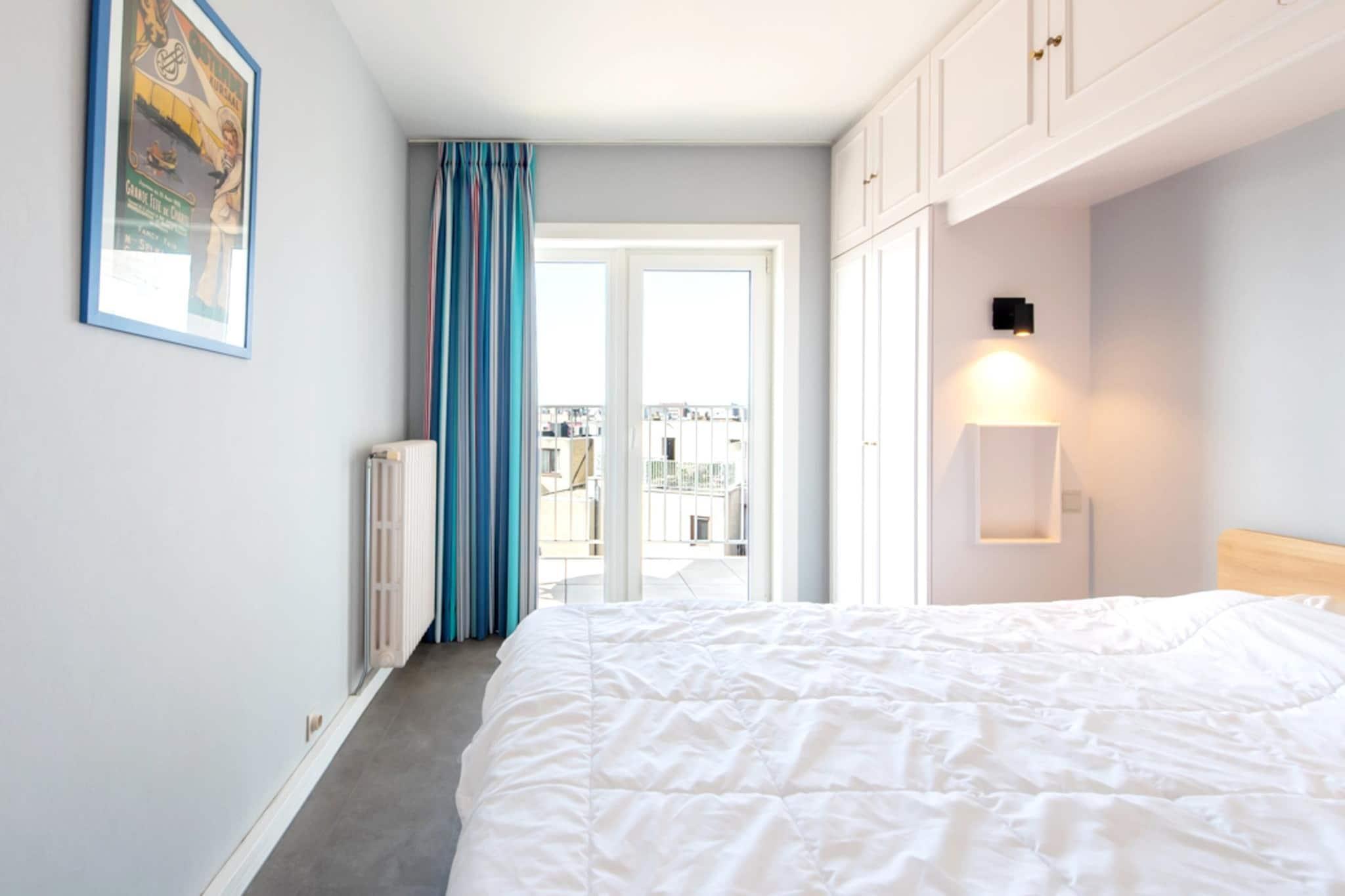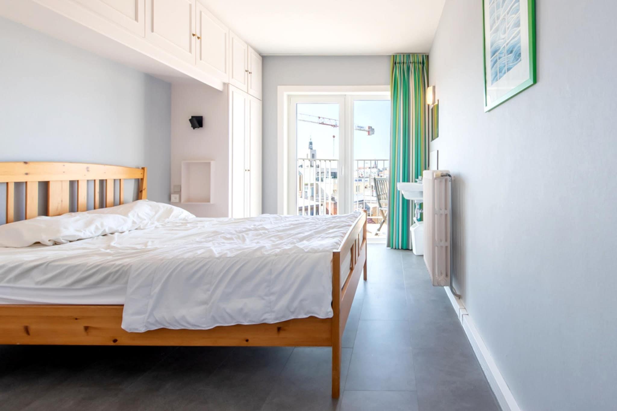 On the 6th floor: (open kitchen(hob(induction), electric kettle, toaster, coffee machine, combination microwave, dishwasher, fridge(+ freezer), Hand blender), Living/diningroom(TV(digital), dining table, seating area, DVD player), bedroom(double bed(twin duvet, 140 x 200 cm)), bedroom(double bed(twin duvet, 140 x 200 cm)), bedroom(single trundle bed(duvet, 90 x 200 cm), bunk bed(duvet, 90 x 200 cm)), bathroom(bathtub with shower, washbasin, washbasin, toilet), toilet(toilet)) terrace, garden furniture, lift, Sea view