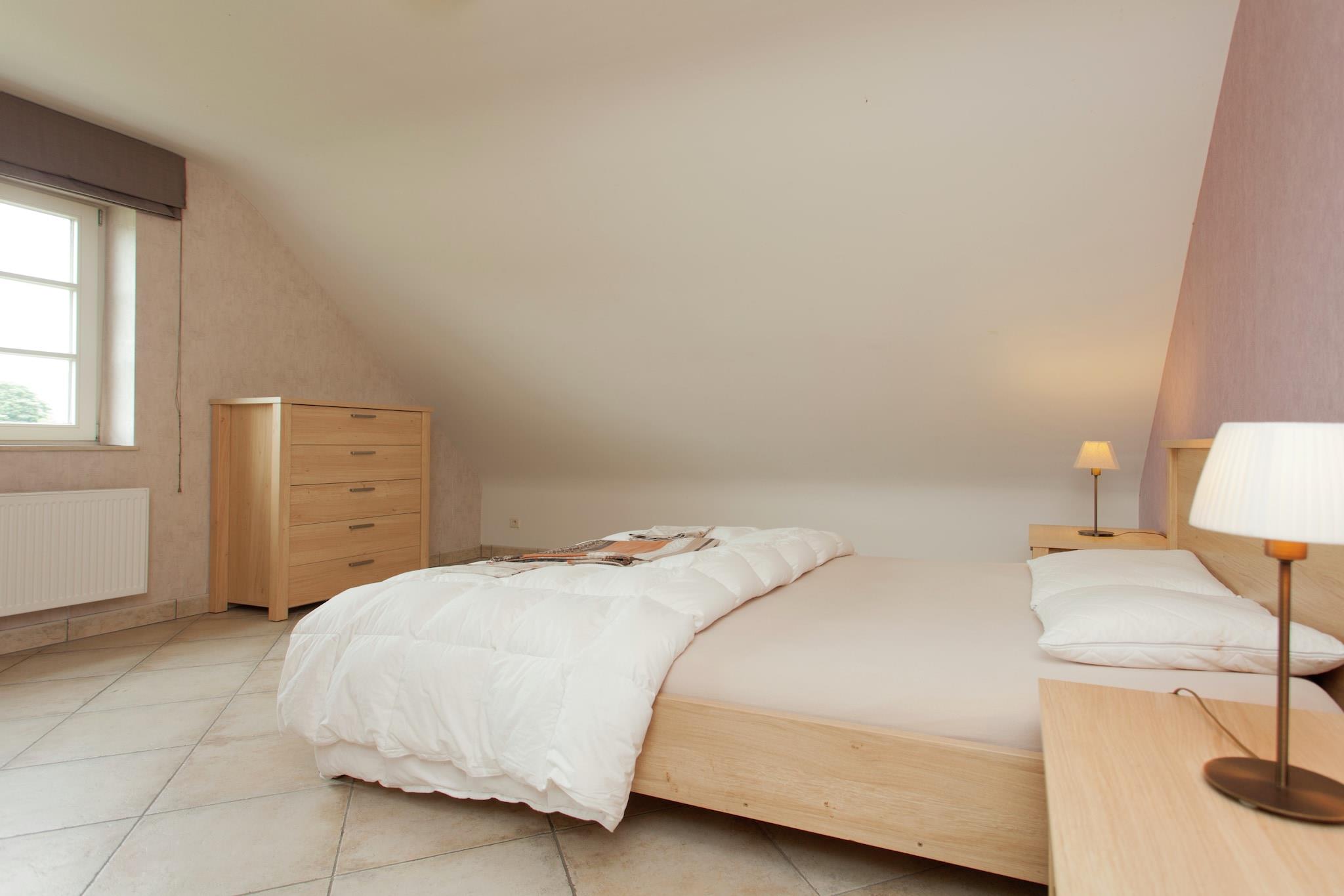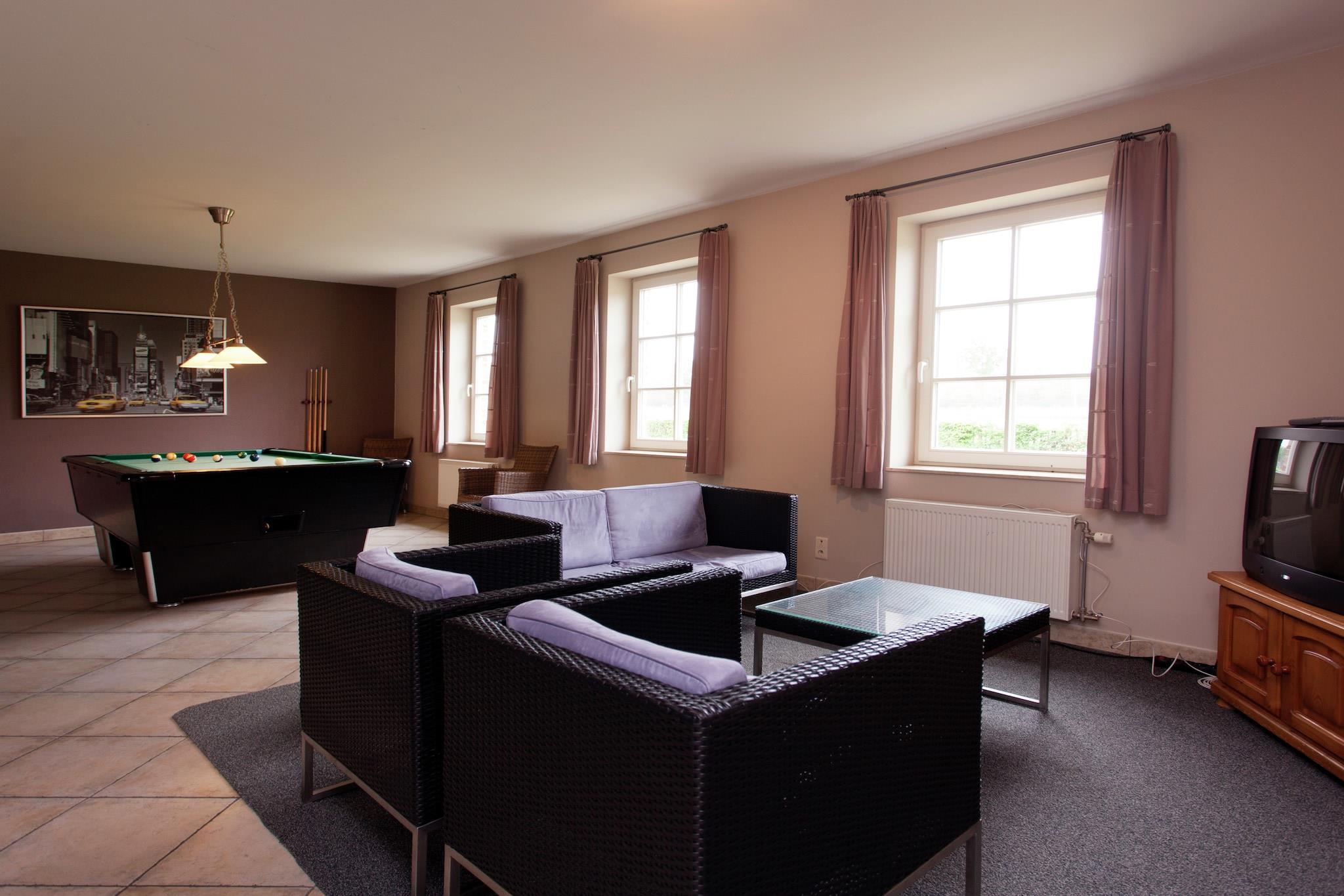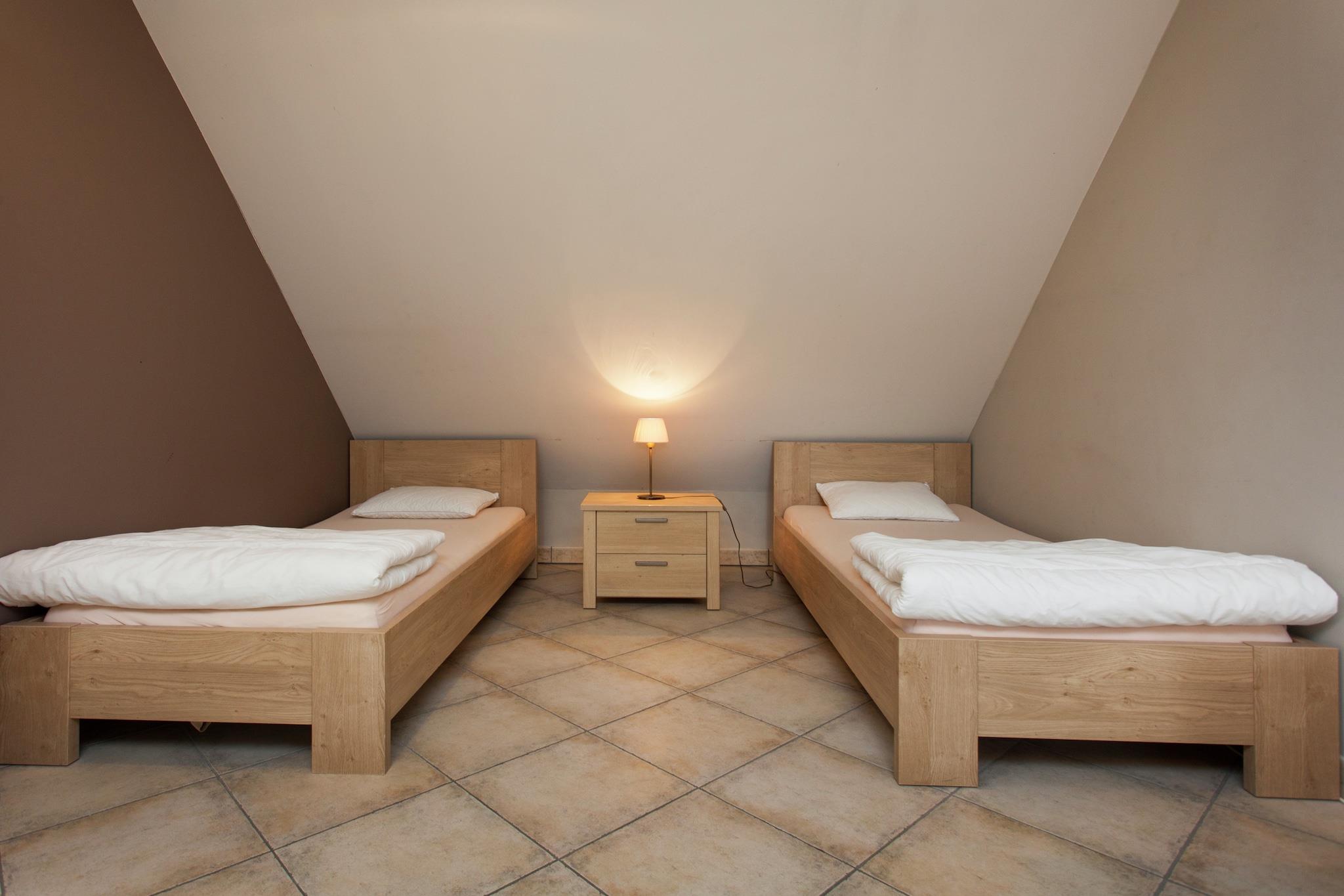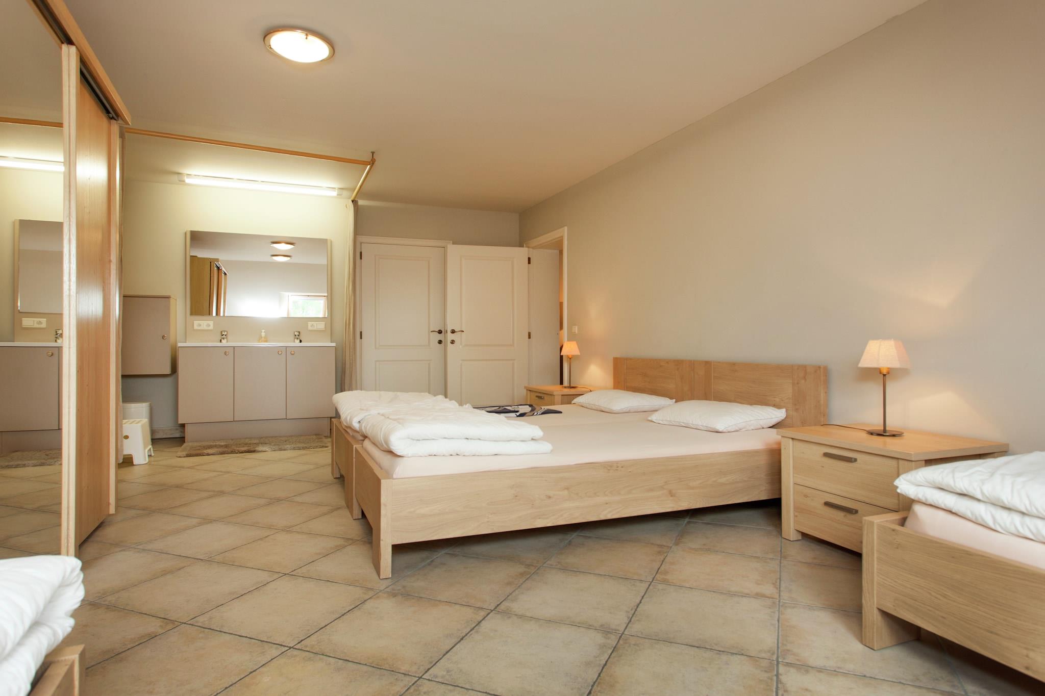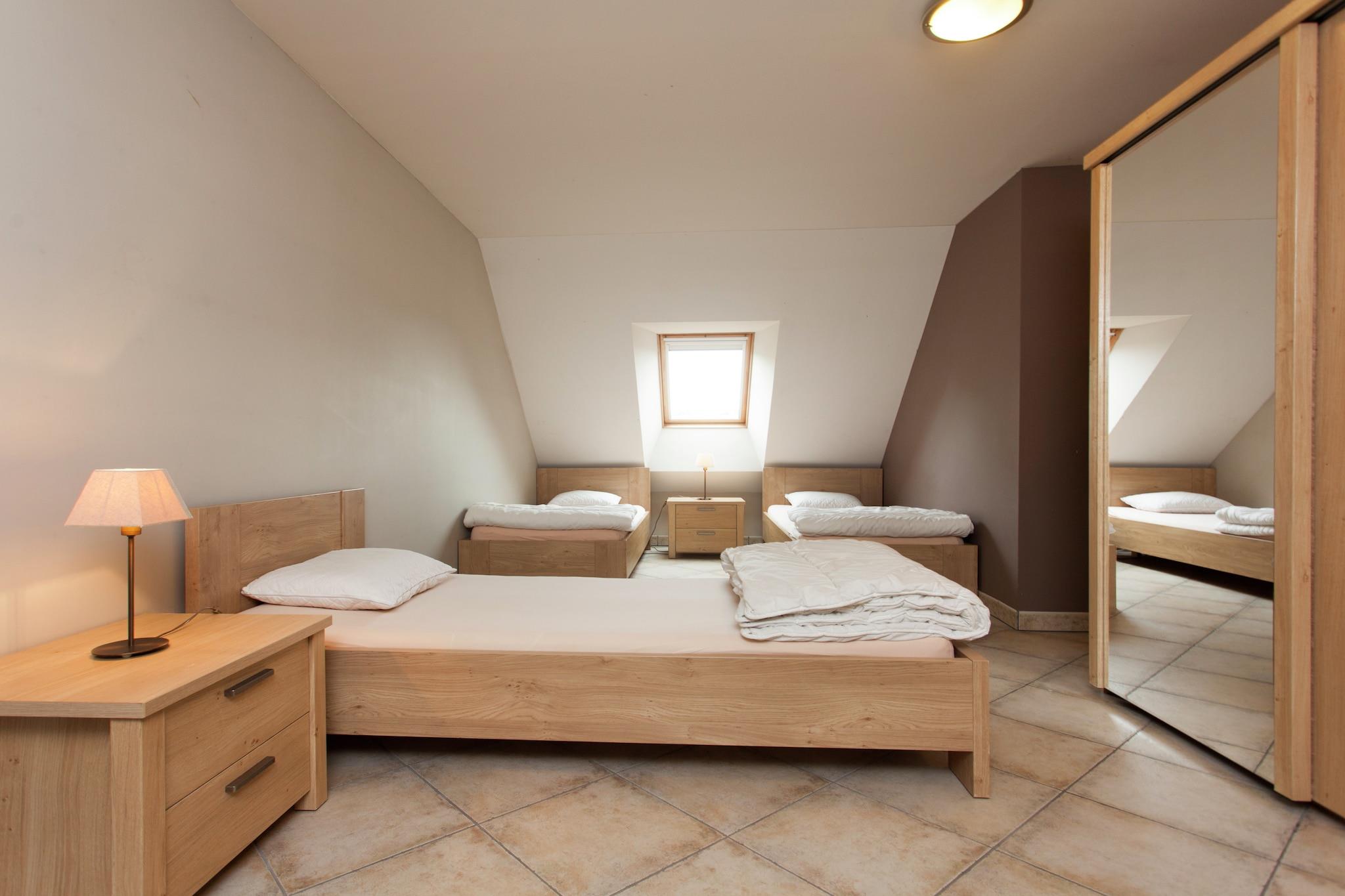 This comfortable 4-bedroom villa in Peer, Limburg is the perfect countryside escape for large families or groups of friends, accommodating up to 12 guests. Surrounded by farms, cheese factories, and taverns, it offers a delightful mix of culinary charm and outdoor adventure. The villa features a private terrace, furnished garden, and barbecue, ideal for al fresco dining. Children will love the play area with a sandpit, trampoline, and spacious yard, while parents can relax in peace. A high chair is available for little ones, and 1 pet is welcome for a fee of EURO50 per stay. Explore the nearby forest (1 km), take a dip in the public pool (4 km), or visit Mullemer Bemden, a nature learning trail. The town center (5 km) offers shops, restaurants, and museums, while quad rentals and cycling routes add a touch of adventure. Extras: – Free parking – Public transport: 1 km – Maastricht Aachen Airport: 47 km away.