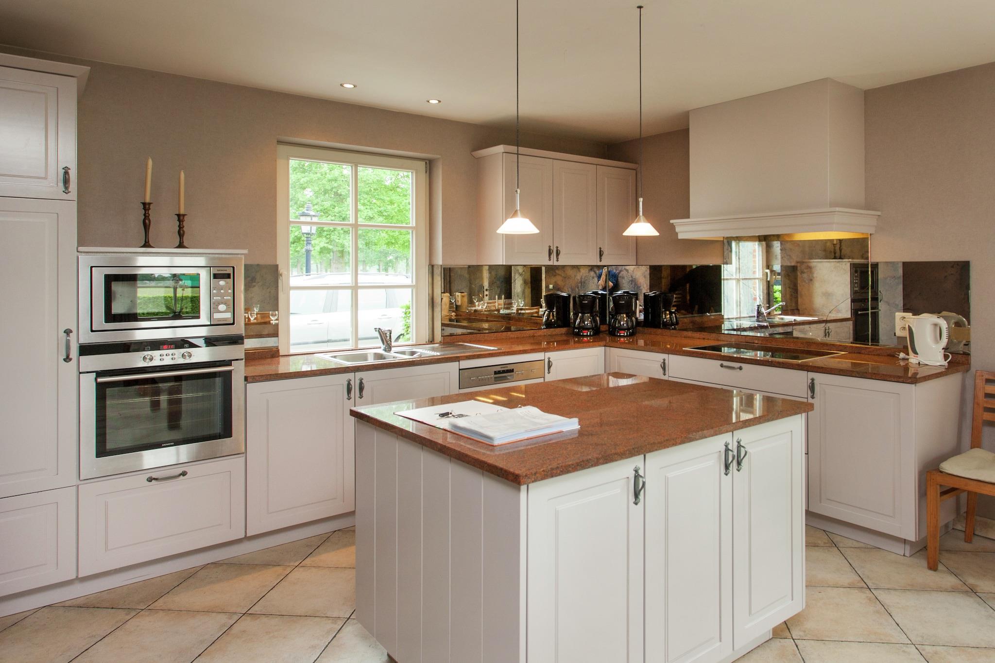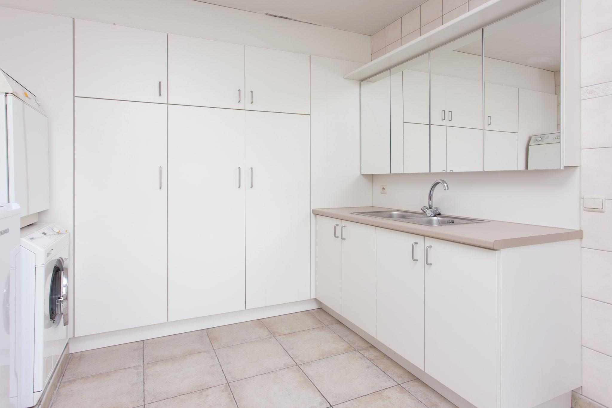 Ground floor: (hallway(heating), Living room(TV(digital), DVD player, radio, CD player, heating), Large kitchen(oven, microwave, dishwasher, freezer, heating(floor heating)), toilet, recreation room(TV(cable), DVD player, billiards), pantry(tumble dryer, shower, 2x washbasin, washing machine, heating), 2x garage) On the 1st floor: (bedroom(double bed, children's bed), bedroom(double bed, children's bed), bedroom(5x single bed), walk-through bedroom(4x single bed, 2x washbasin), bathroom(bath tub, shower, washbasin, toilet)) Kitchen(dishwasher), open kitchen, cooker(ceramic), oven, microwave, fridge-freezer, heating(central), terrace(private), garden(private), garden furniture, BBQ, 4x parking, trampoline(private), sand pit, high chair