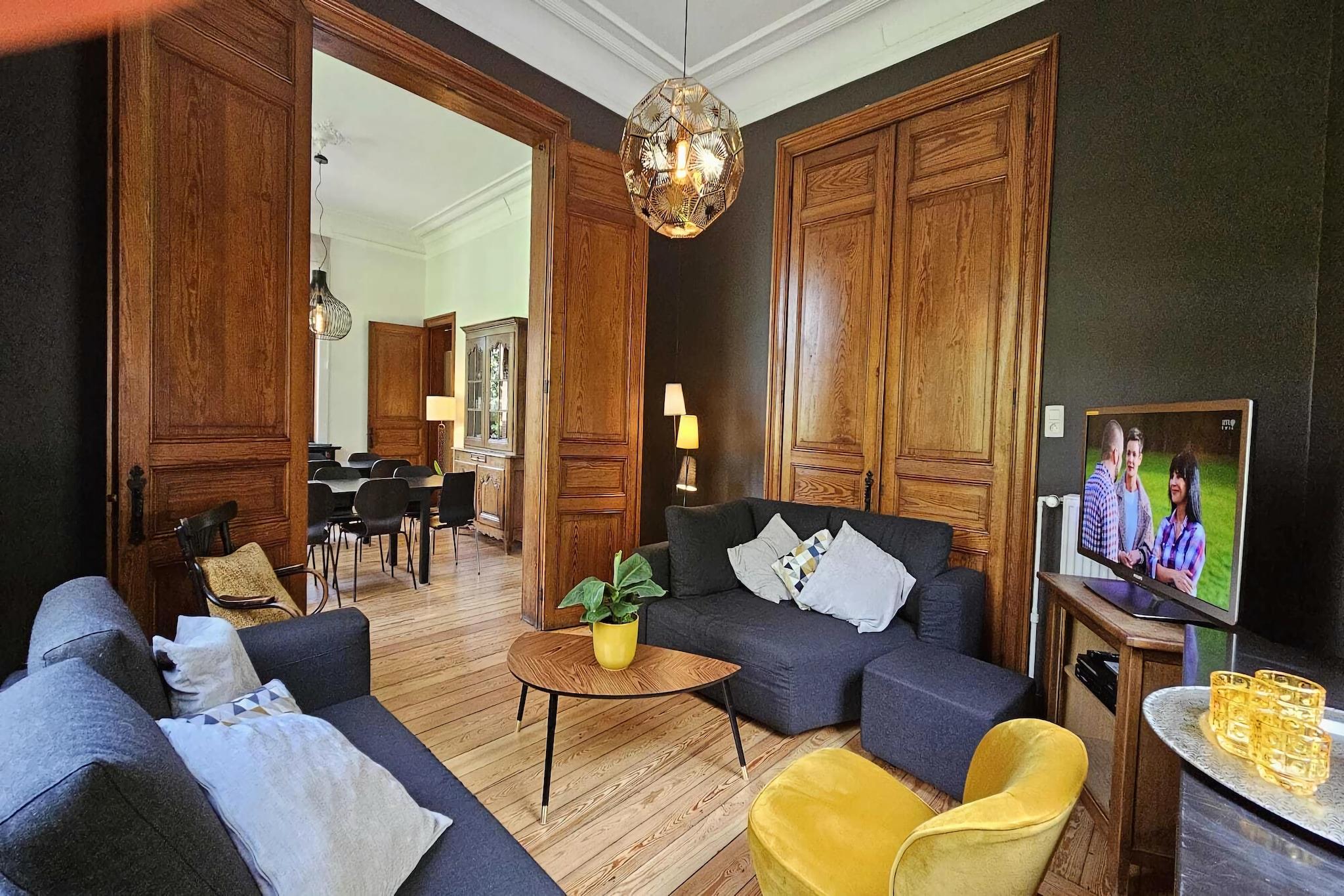The luxurious villa with its own tree park and an ideal location on the hills of the beautiful tourist town Spa. Cosy and comfortably furnished, this villa is ideal for families and can house 15 people in the 8 bedrooms it has. _x000D_ _x000D_ The house includes a garden for you to relax and enjoy evening meets with your loved ones. The terrace offers a panoramic view of the surroundings. You can enjoy the delicious barbecue and have a great time during your stay._x000D_ _x000D_ The place is right by the forest, 0.1 km away, the town centre and restaurants can be visited only about a km away from the house. _x000D_ _x000D_ Also a great destination during the winters, the ski lift is just a km away for you to enjoy the breathtaking view of the area. You can visit the beautiful lake, 5 km away._x000D_ _x000D_ Note: Tenants must bring their own sheets. (6 bedrooms with a double bed and 2 bedrooms with 2 single beds)_x000D_