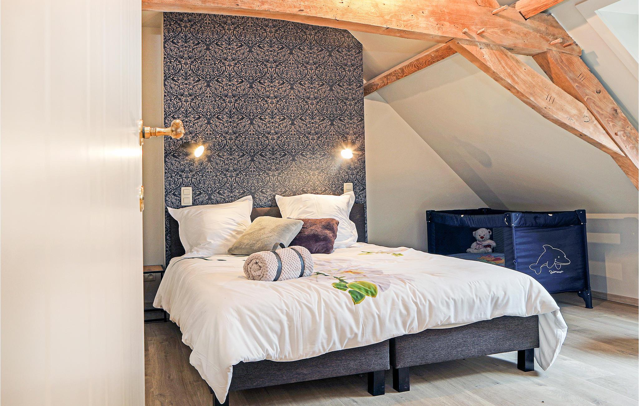 Dieses einladende und gepflegte Ferienhaus in der schönen flämischen Landschaft Westhoek ist wunderbar eingerichtet und perfekt für einen abwechslungsreichen Urlaub mit der ganzen Familie. Das fantastisch eingerichtete Ferienhaus befindet sich in ruhiger Lage auf den Wiesen zwischen den Städten Poperinge und Veurne, nahe der französischen Grenze. Nehmen Sie gerne Ihren Hund mit in den Urlaub. Der große Garten ist komplett von einem hohen Zaun umgeben und bietet einen tollen Blick auf die Landschaft. Der Garten ist auch mit einem gemütlichen Picknicktisch, Sonnenliegen, Grill, Trampolin, Fußballtor und Badmintonschlägern ausgestattet. Dieses komplett renovierte Ferienhaus war in der Vergangenheit ein Café, heute noch an der schönen Bar im großen Speisesaal zu erkennen. Im Ferienhaus gibt es auch ein gemütliches Wohnzimmer mit einem Smart-TV. Die ländliche Küche ist komplett ausgestattet und verfügt über einen Geschirrspüler, Backofen, Mikrowelle, Fritteuse, Toaster und Stabmixer. Über eine kleine Treppe erreichen Sie die Toilette und ein gemütlichen Schlafzimmer mit Etagenbett. Im ersten Stock befinden sich die anderen 3 Schlafzimmer, 2 Badezimmer und eine separate Toilette.