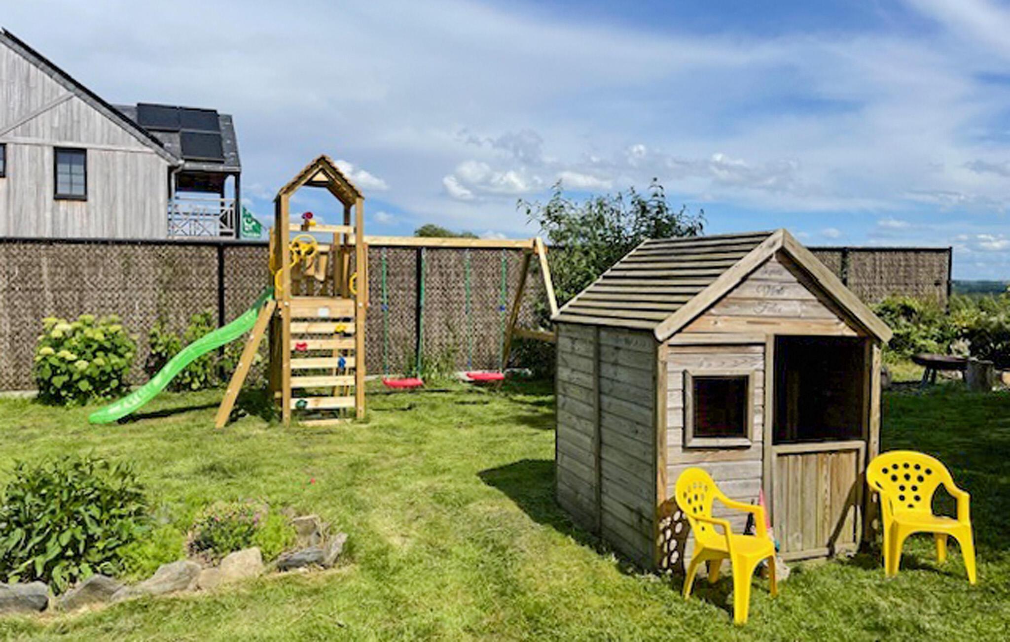 Dieses freistehende und einladende Ferienhaus in Wibrin liegt in einer ruhigen und natürlichen Umgebung. Hier können Sie die Privatsphäre und einen schönen Blick genießen. Der Holzofen im Wohnzimmer bietet eine angenehme Atmosphäre. Das Wohnzimmer verbindet sich mit der offenen Küche und ist mit einer gemütlichen Sitzecke und einem Esstisch ausgestattet. Durch das Wohnzimmer gelangen Sie direkt in den Garten mit offener Terrasse, verstellbaren Gartenmöbeln, Picknicktisch und Grill. Sie haben auch Zugang zum Gartenhaus mit einem Kickertisch und einer überdachten Terrasse. Genießen Sie Ihren Urlaub im Herzen der Hohen Ardennen. Besuchen Sie von diesem Ferienhaus den höchsten Punkt von Belgien mit Skipisten und Loipen. Rund Wibrin sind nicht weniger als 11 Naturschutzgebiete mit unberührter Natur und schönen Wanderwegen auf bewaldeten Hängen sowie große Täler mit herrlichem Panoramablick zu entdecken. Kinderfamilien können in Houffalize, im Freizeitzentrum Houtopia und im Schwimmbad Aqua l'O schöne Stunden erleben. Weitere Attraktionen in der Umgebung sind der Parc Chlorophylle in Doschamps, der Safaripark Monde Sauvage in Aywaille und der Freizeitpark Plopsa Coo. Troisvierges in Luxembourg erreichen Sie innnerhalb eine halbe Stunde.