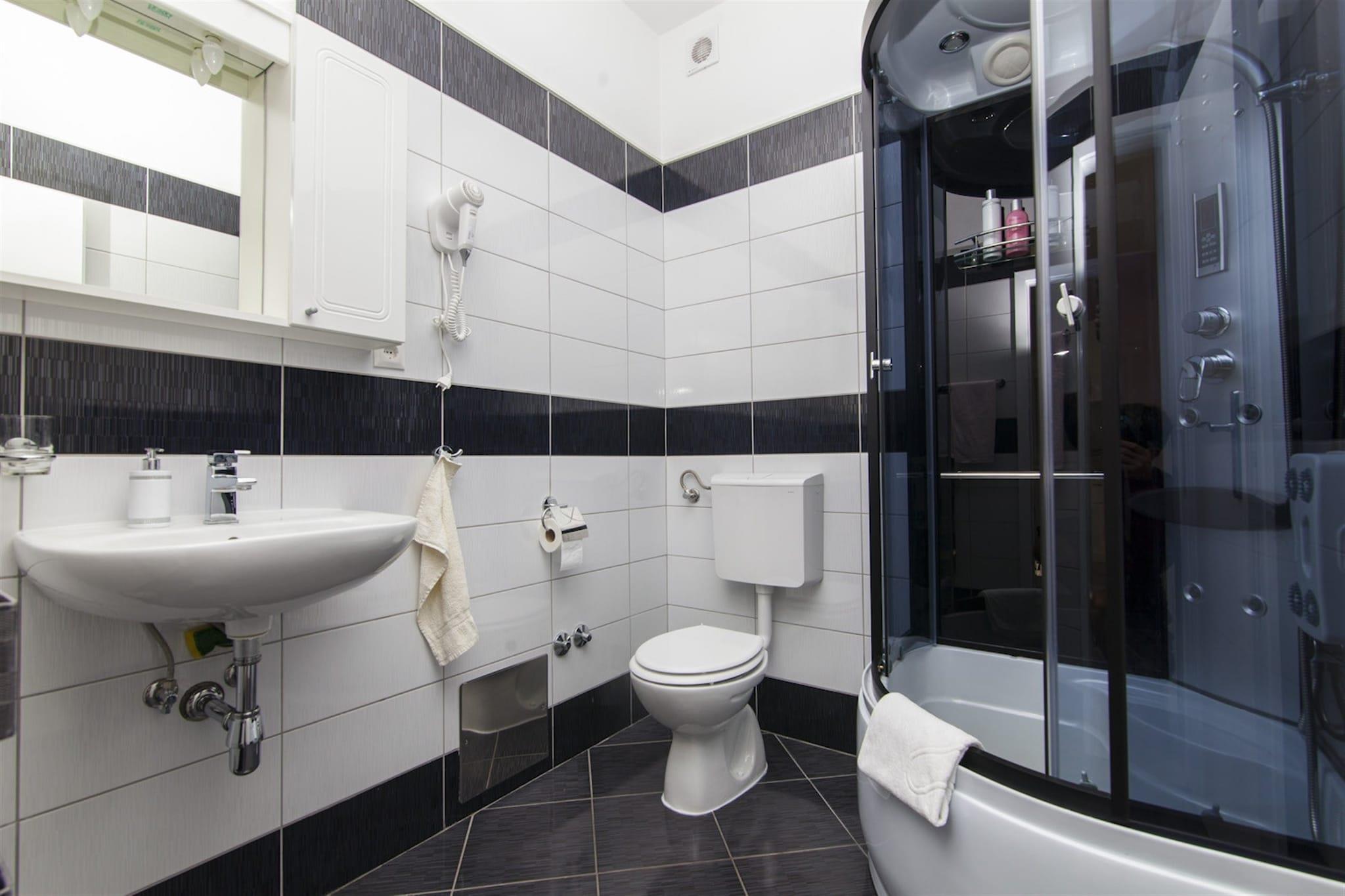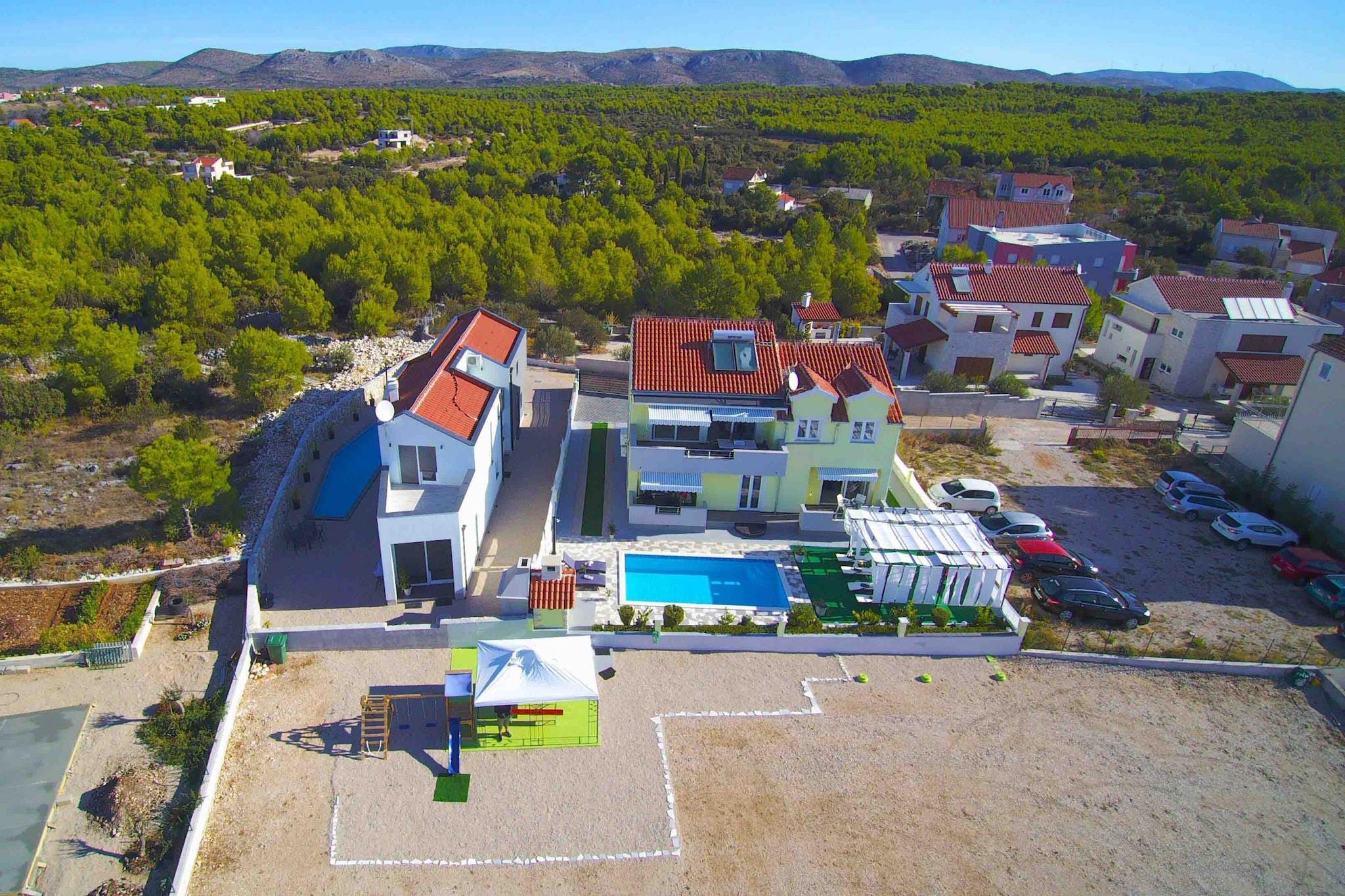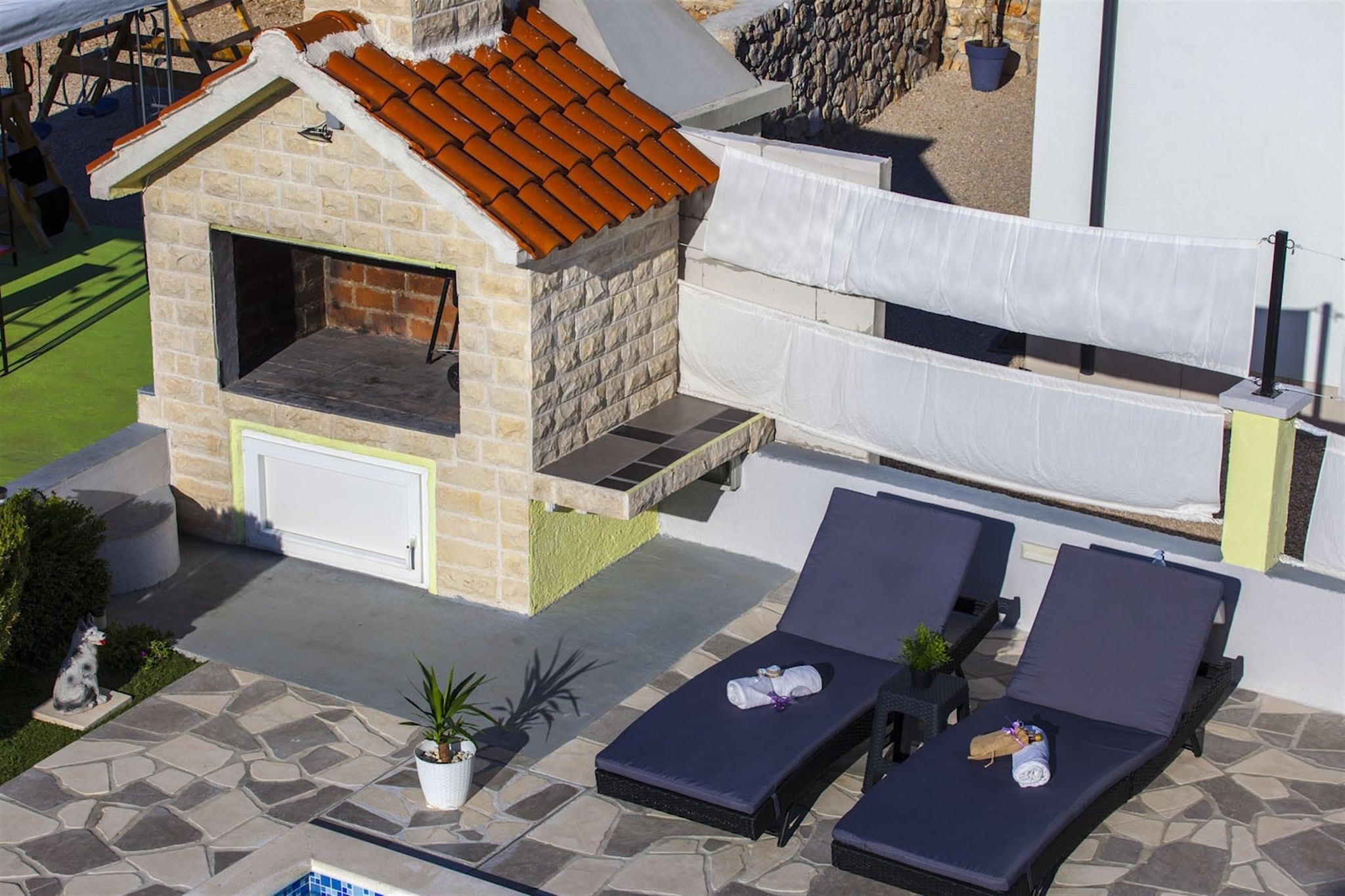 The house in Šibenik-Brodarica has 5 bedrooms and capacity for 10 persons. Accommodation of 250 m², It has waterfront. The property is located 250 m supermarket, 350 m bus station "Local bus station", 500 m the restaurant, 500 m coffee shop, 500 m rock beach "Brodarica beach", 4 km hospital "Šibenik hospital", 5 km city "Šibenik city centre", 15 km nature reserve "National Park Krka", 45 km airport "Split International Airport" and it is located in a a family-friendly zone and in the center of the city. The accommodation is equipped with the following items: garden, outdoor furniture, fenced plot, 40 m² terrace, washing machine, barbecue, iron, safe, internet (Wi-Fi), hair dryer, balcony, children area, gym / fitness centre, sauna, air conditioning in the living room and in some bedrooms, swimming pool private, covered parking in the same building, 5 electric anti-mosquito devices, 3 TVs, satellite tv (Languages: English). The open plan kitchen, of induction, is equipped with refrigerator, microwave, oven, freezer, dishwasher, dishes/cutlery, kitchen utensils, coffee machine, toaster, kettle and stove.