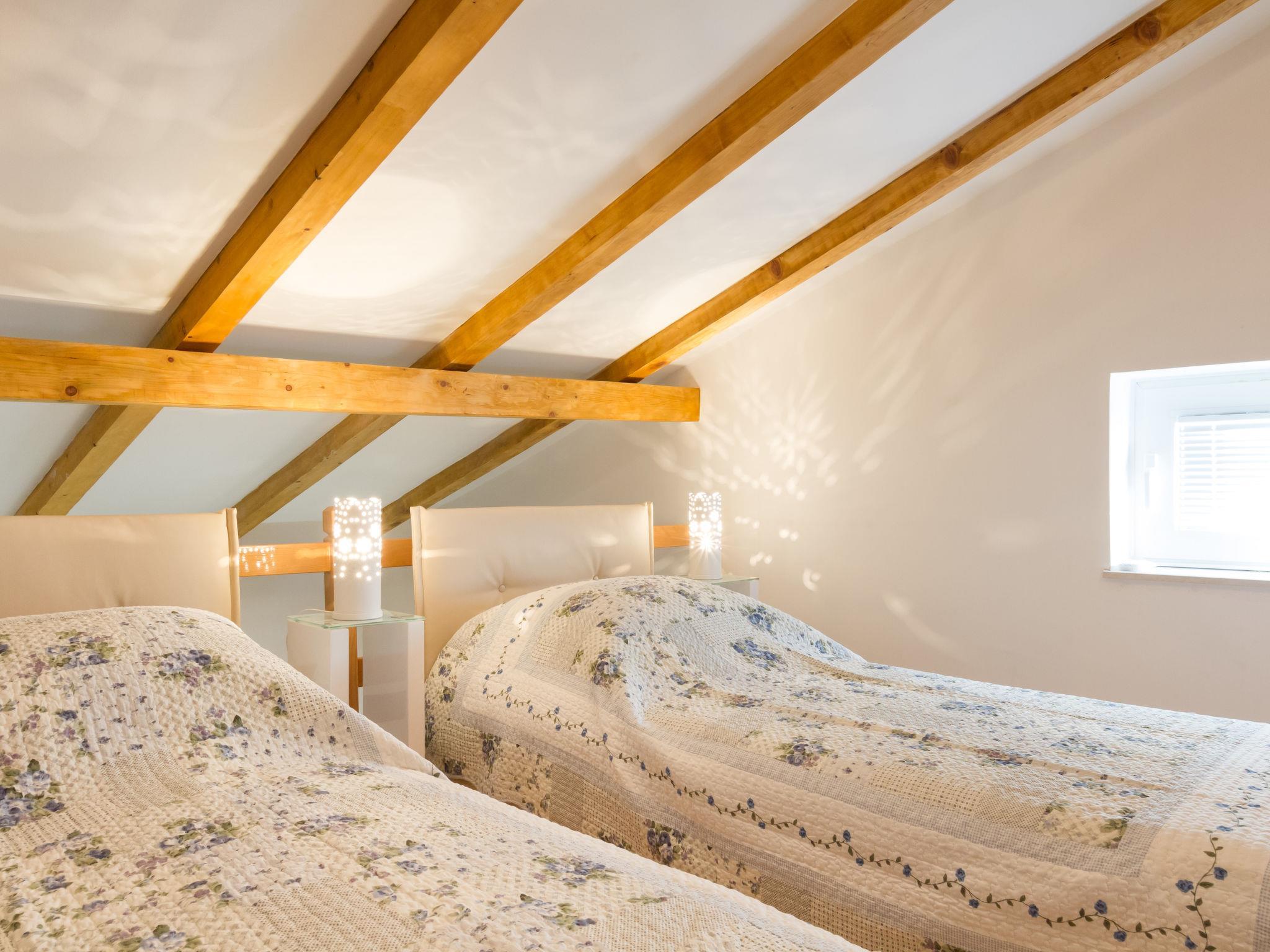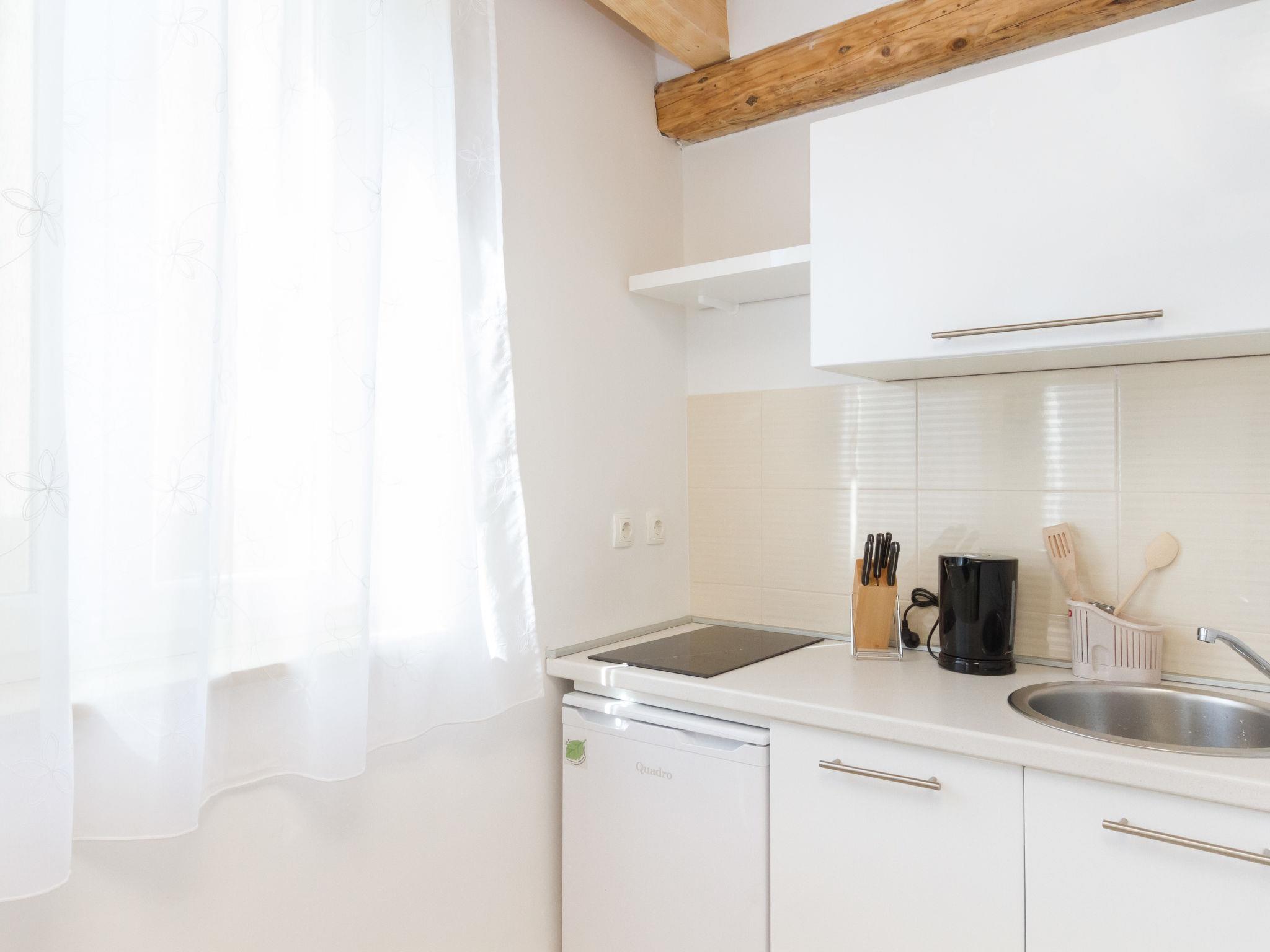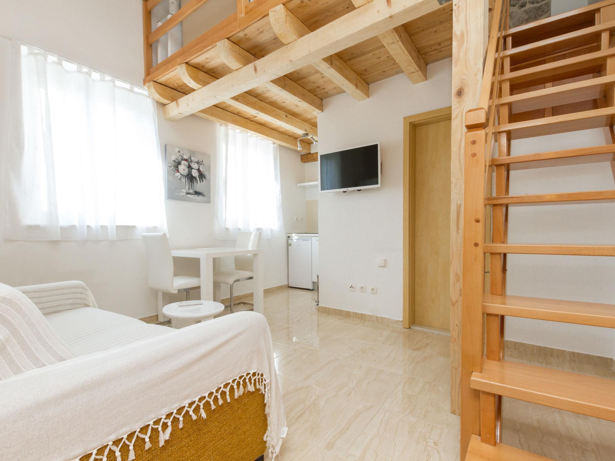 1-room apartment 25 m2 on 2 levels, on the ground floor. Living/dining room with 1 sofabed (120 cm, length 200 cm), TV (flat screen). Open kitchen (2 ceramic glass hob hotplates, kettle). Shower/WC. No heating option. Upper floor: open gallery with sloping ceilings, ceiling height 60 - 200 cm with 2 beds (90 cm, length 200 cm), air conditioning. Facilities: Internet (WiFi, free).