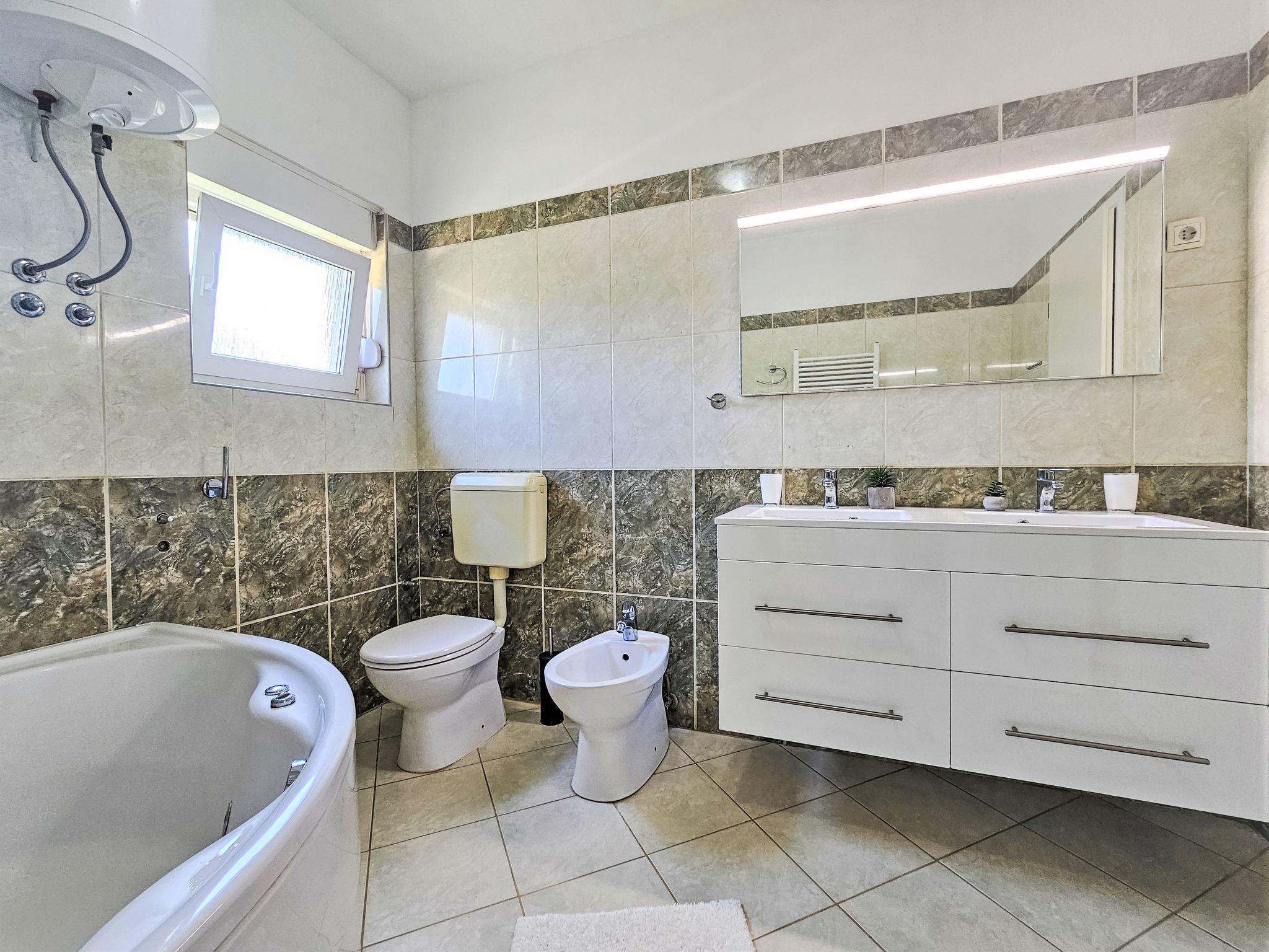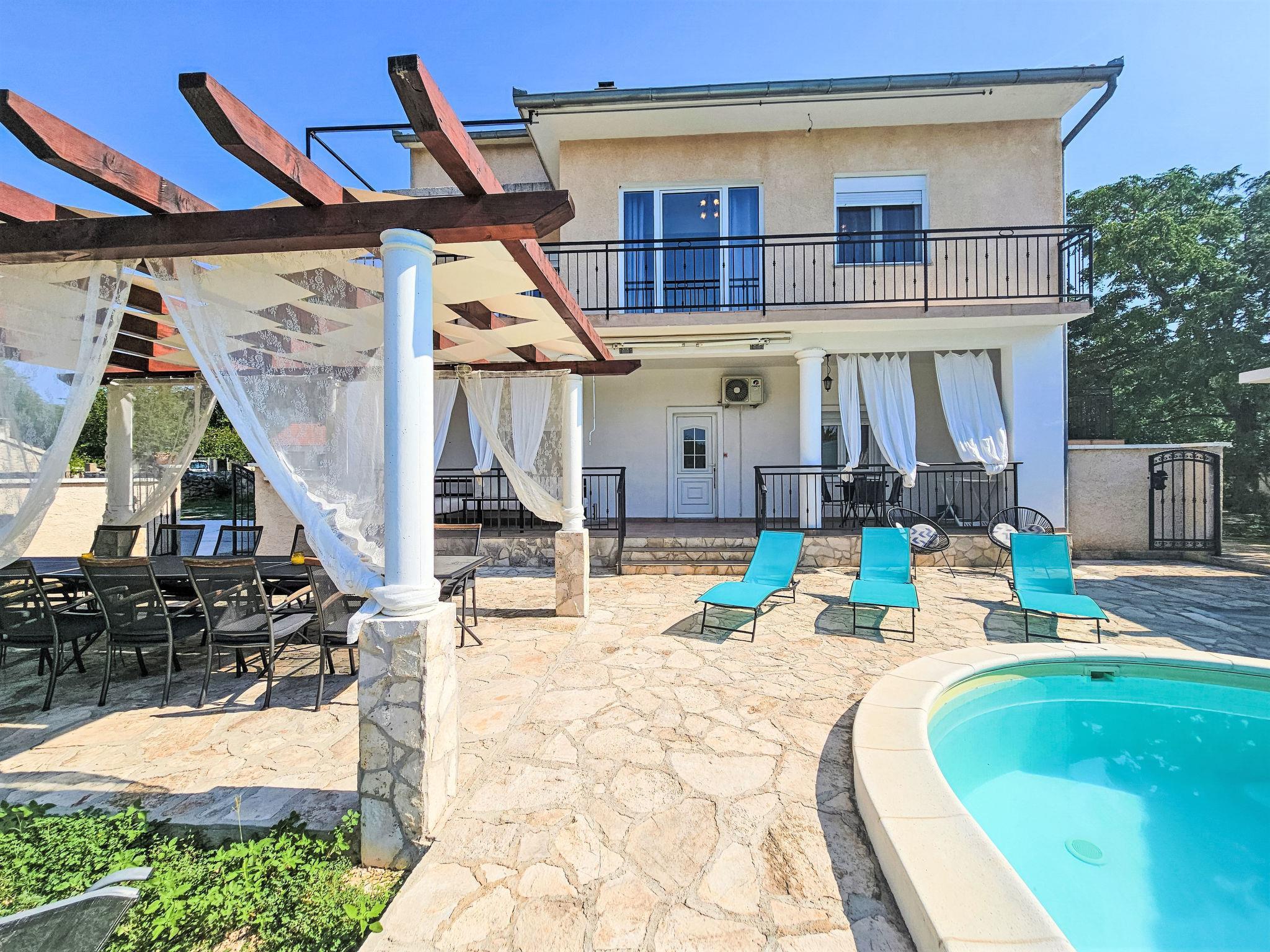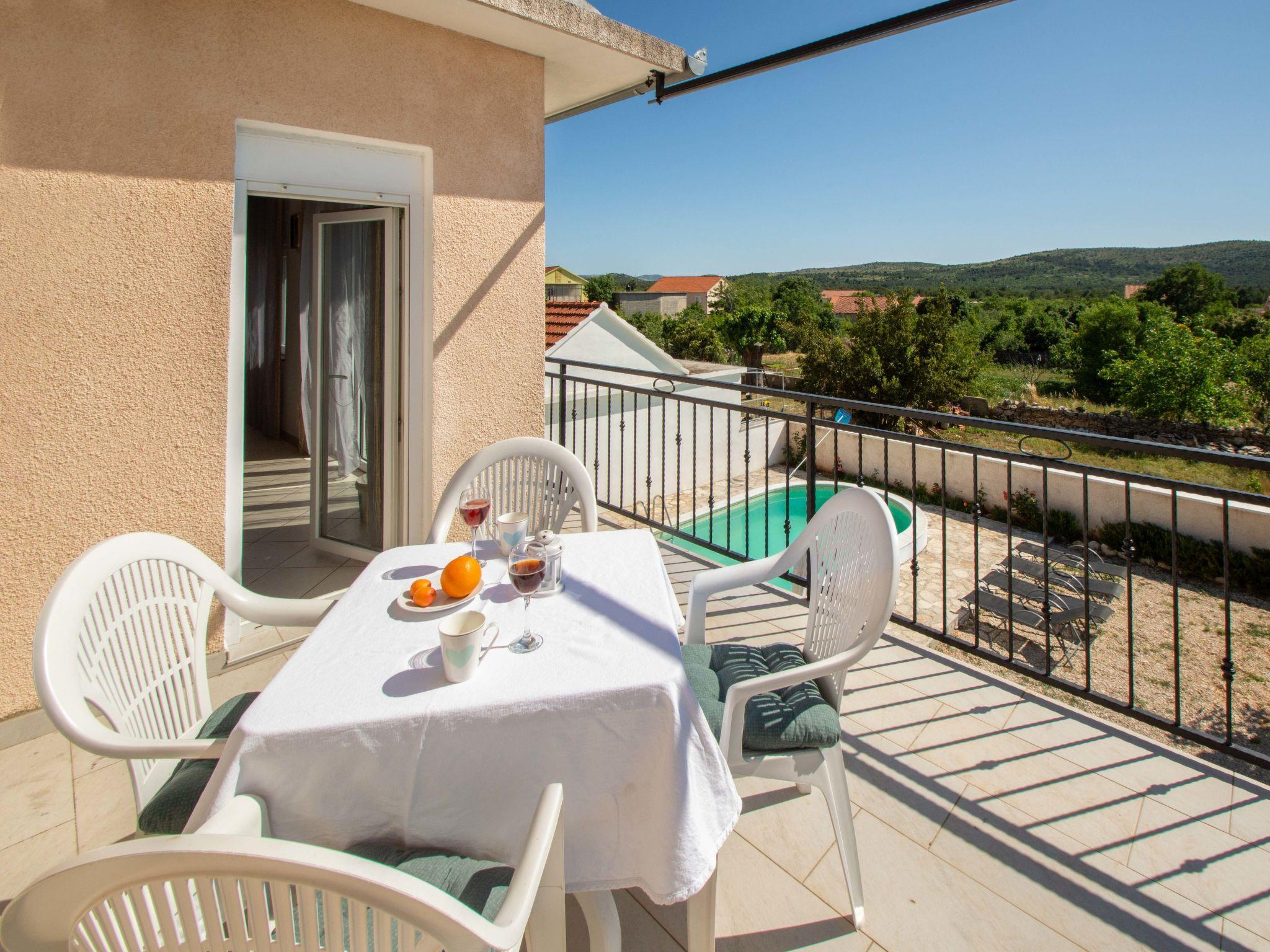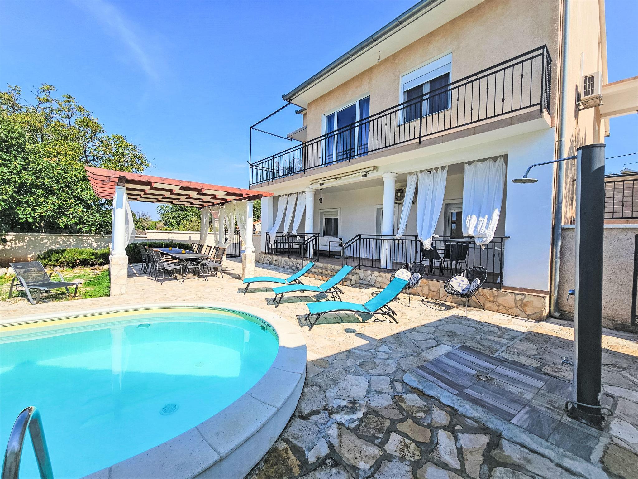 Dubrava: Beautiful single-family house "Joy on Countryside", 2 storeys. 8 km from the centre of Šibenik, in a quiet, sunny position, 8 km from the sea. Private: property 1'000 m2, wildlife garden and trees, swimming pool angular (7 x 3 m, 26 m2, depth 150 cm, seasonal availability: 01.Jun. - 10.Sep.). Outdoor shower, terrace (10 m2), garden furniture, barbecue. In the house: internet access, trampoline, washing machine. Parking (for 6 cars) at the house on the premises. Shop 2.5 km, restaurant 8 km, bus stop 850 m, pebble beach 10 km. Riding stable 1 km. Nearby attractions: NP Krka 12 km. Please note: suitable for families. Groups of teenagers on request only. Airfield 45 km from the property. The house consists of 3 apartments rented as one unit. Two apartments on the ground floor and one apartment on the first floor.