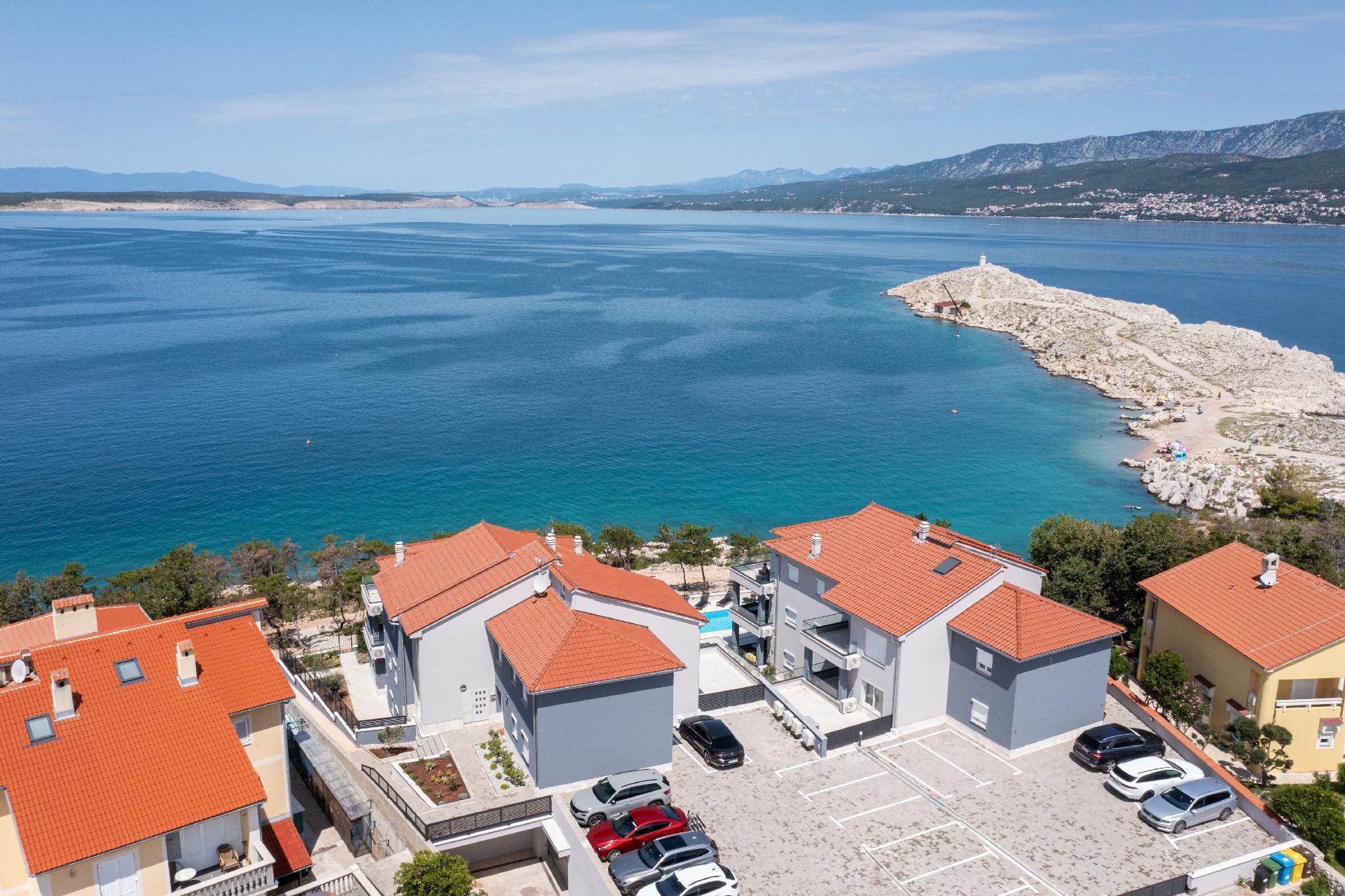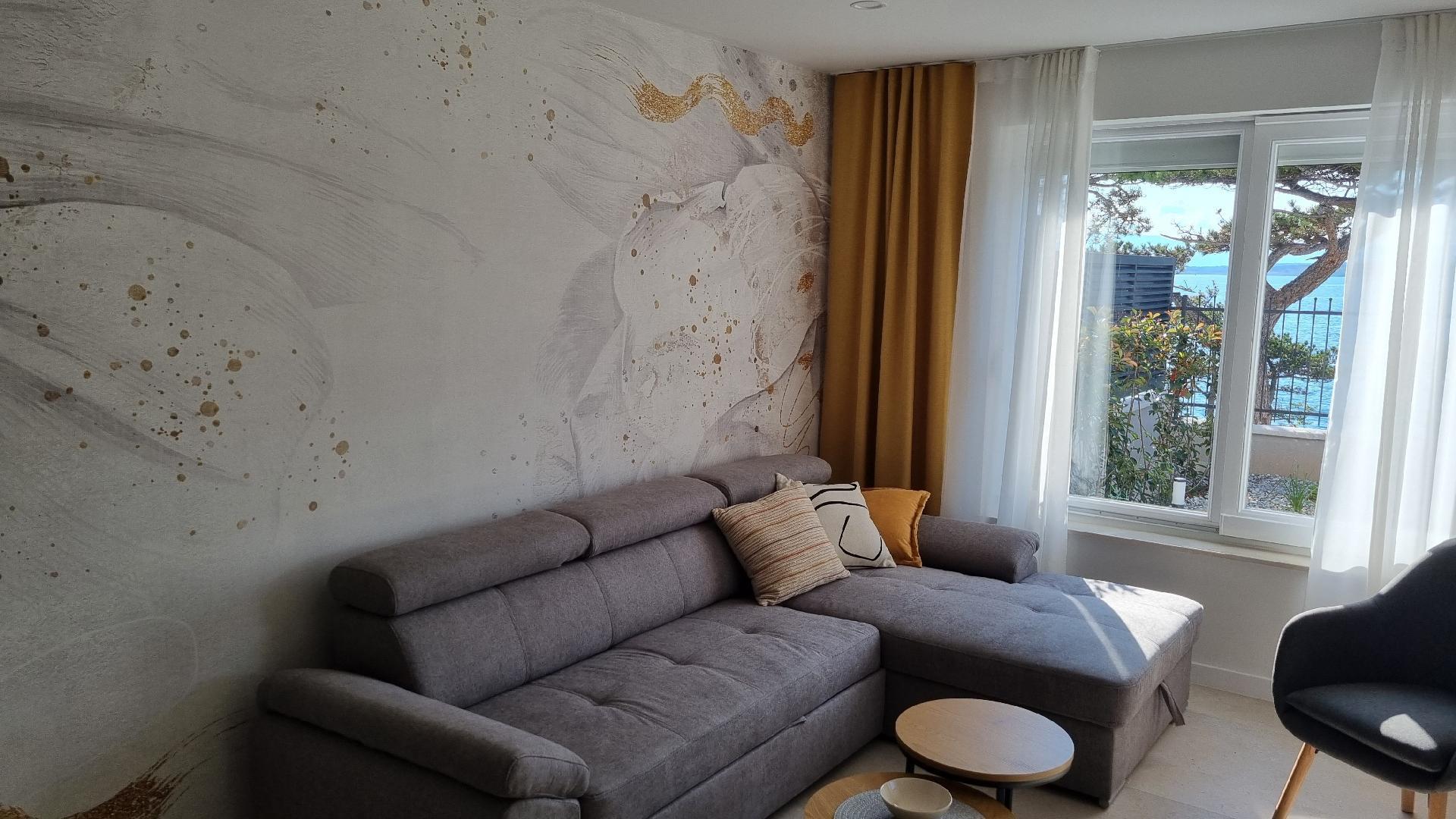 This luxurious and modern flat is located in a quiet apartment complex just 30 metres from the sea, surrounded by nature, many bays, pebble beaches and hiking trails. It offers a communal saltwater pool (36 m2), which is open from May to October and whose temperatures usually reach 20-26 °C. The flat is located on the ground floor and has a bedroom with a double bed, a modern kitchen with induction hob, fridge-freezer, kettle, coffee machine, toaster, microwave and dishwasher. The bathroom has a shower and toilet. The dining area and living room offer a cosy space with a sofa and smart TV, while free WiFi is available throughout the building.