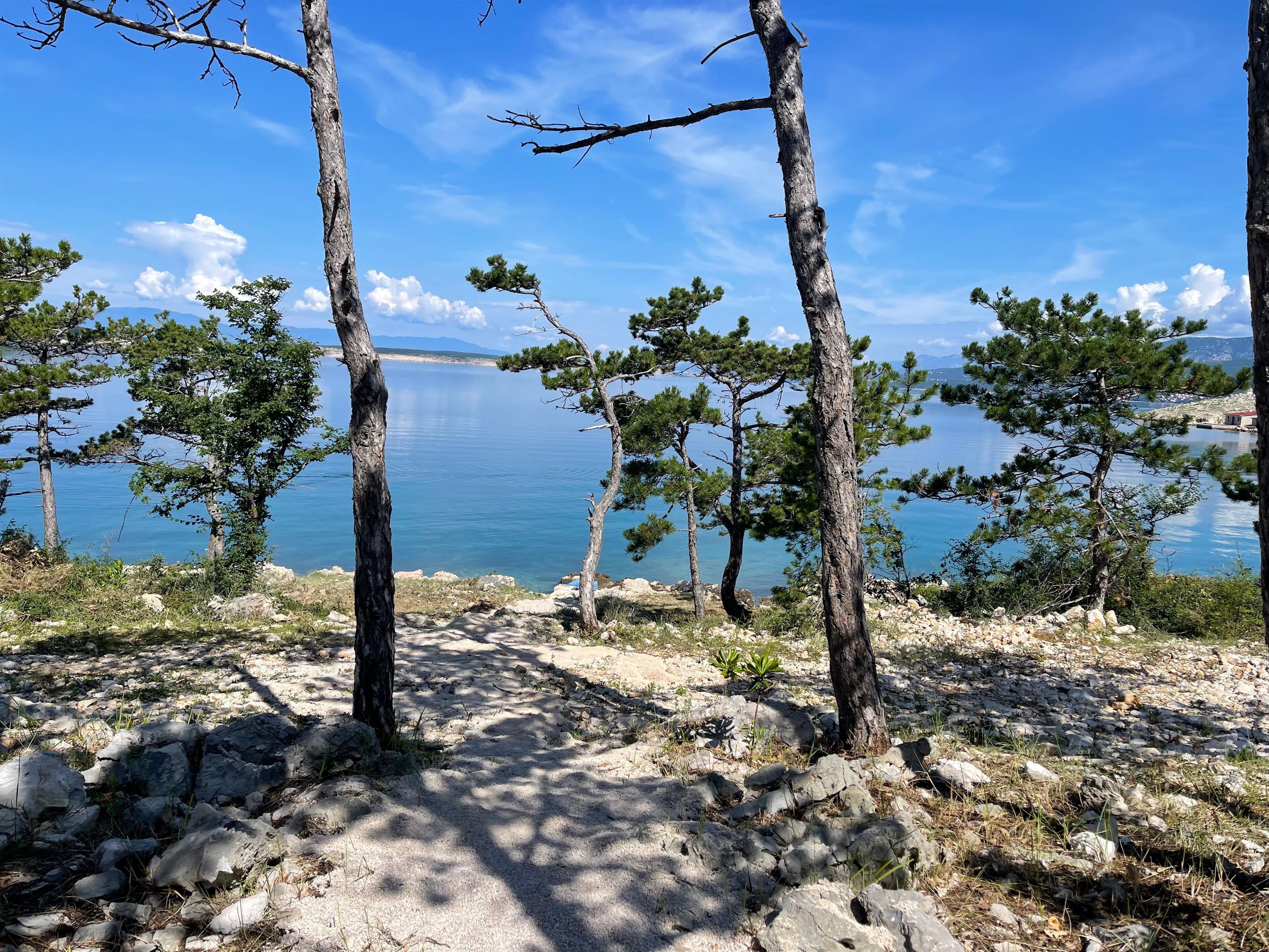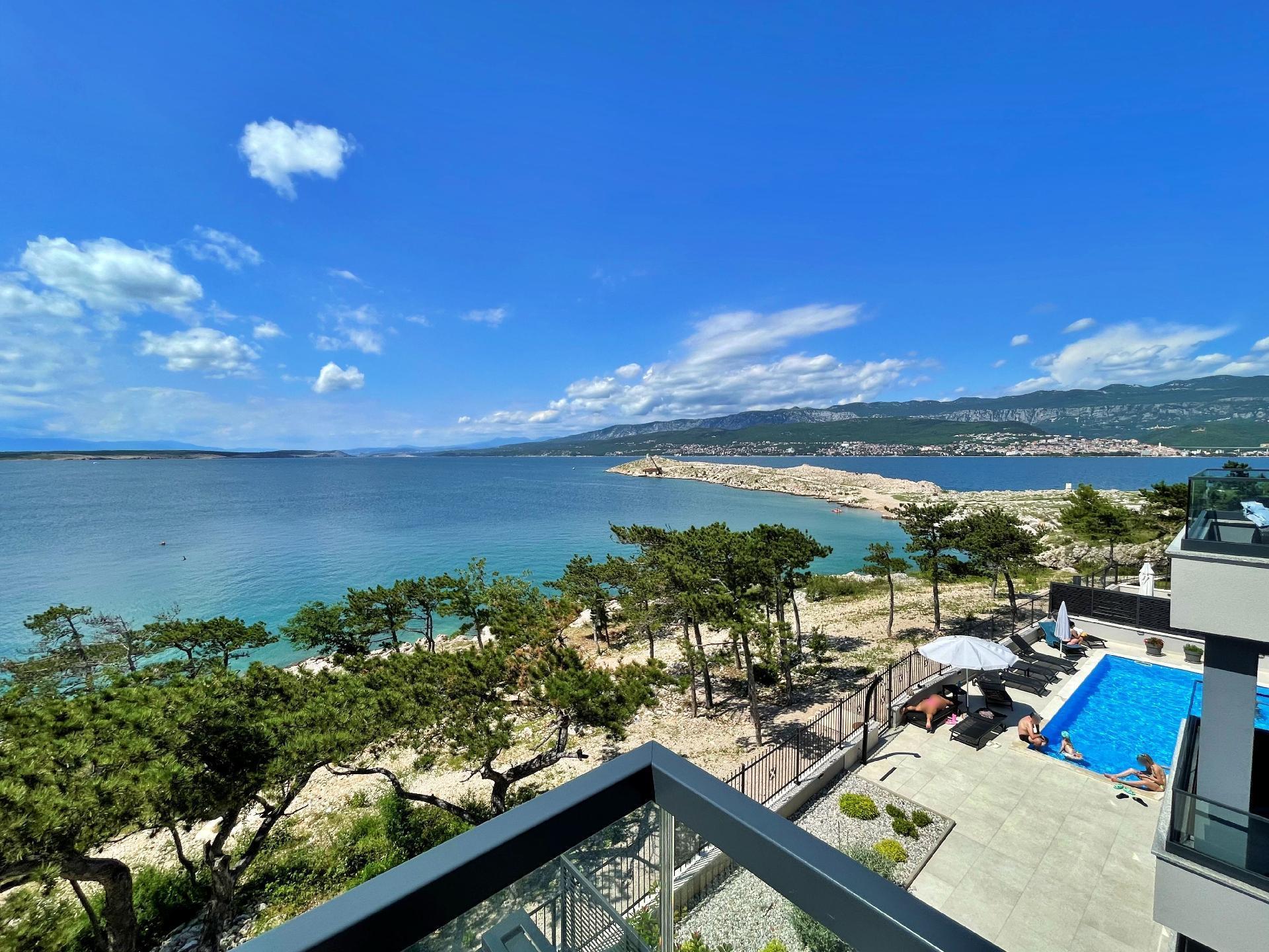 This luxurious, modern seafront flat is located in a quiet apartment complex just 30 metres from the sea, surrounded by nature, secluded coves, pebble beaches and hiking trails. It offers a communal saltwater pool (36 m2), which is open from May to October and whose temperatures usually reach 20-26 °C. The flat is located on the 2nd floor and has two bedrooms, each with a double bed, a modern kitchen with induction hob, fridge-freezer, kettle, coffee machine, toaster, microwave and dishwasher. The bathroom has a shower and toilet. The dining area and living room offer a cosy space with a sofa and smart TV, while free WiFi is available throughout the building.