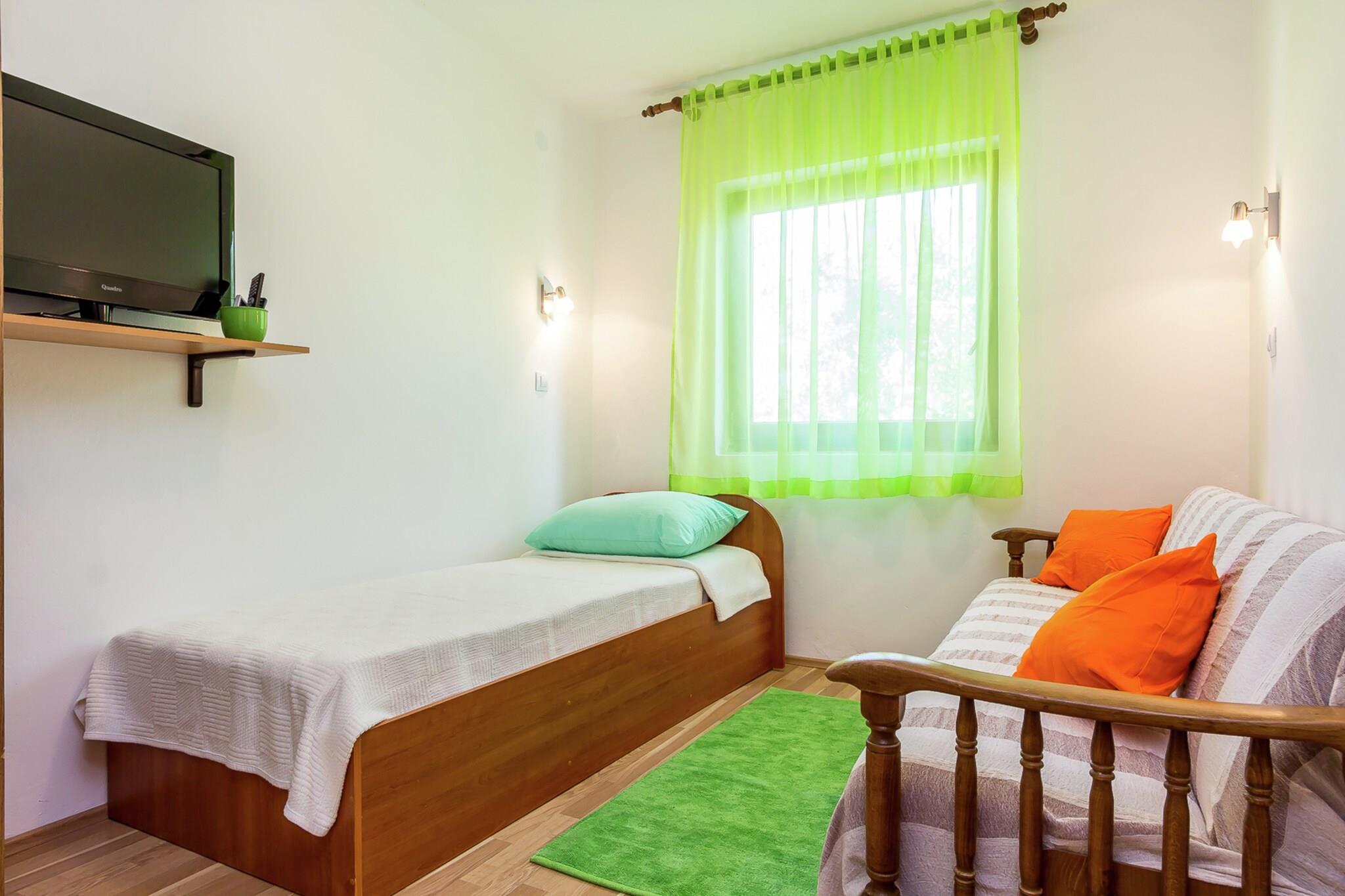 Renovated in 2014, this charming holiday home in Pula offers accommodation for four people on the ground floor with a garden. The interior is comfortable, the decor is dominated by wood, the floors are tiled in the living area and in the bathroom and covered with laminate in the bedrooms. Due to the large green garden, guests who bring their pets on vacation will surely enjoy this wonderful natural environment. In the courtyard there is a fireplace, and there is also a furnished terrace for al fresco dining.