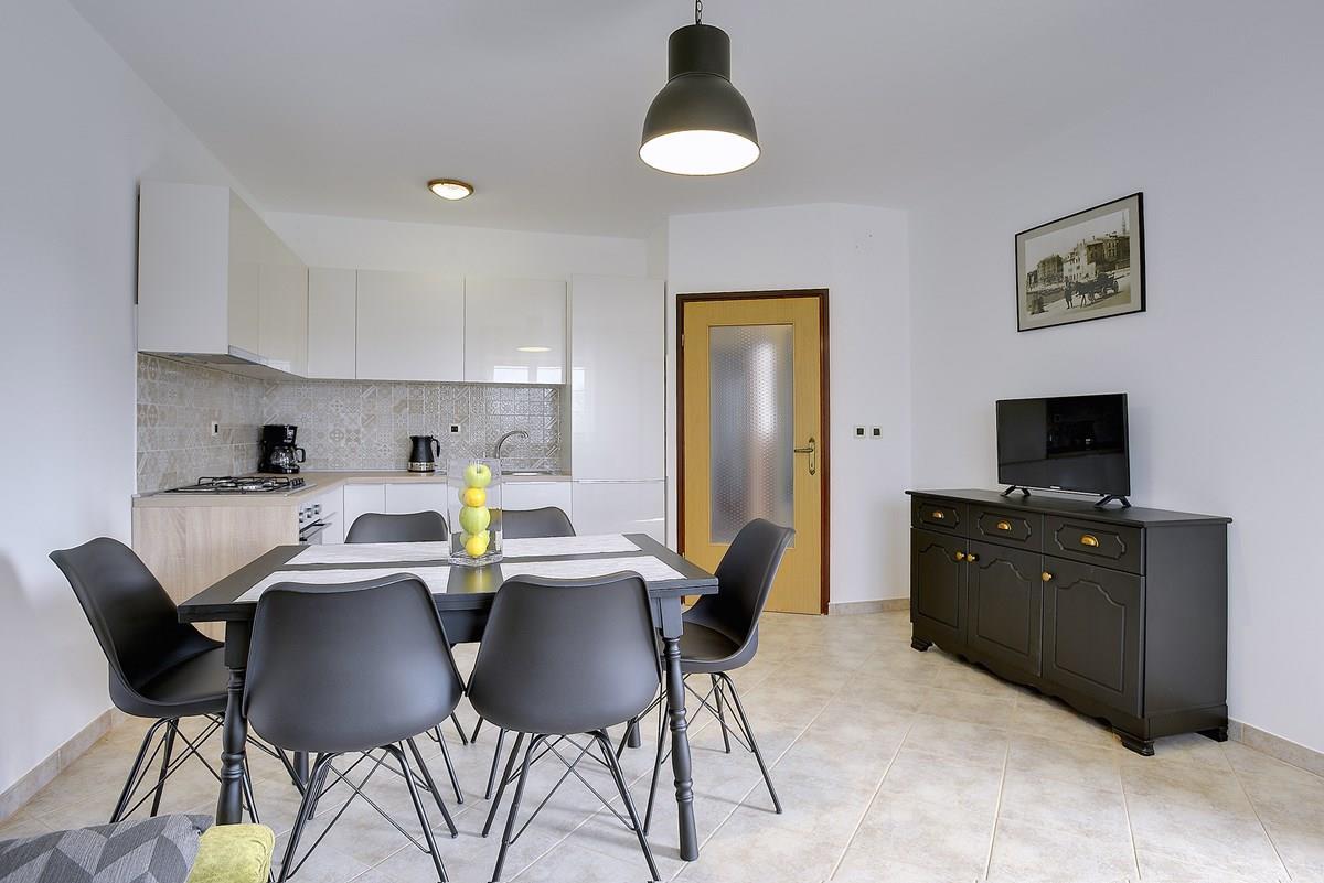 Visit this wonderful apartment Falu in Štinjan, not far from the historical town of Pula. The apartment is located on the ground floor of a family house and can accommodate up to six persons. The interior of this apartment is nicely decorated and consists of a living room, dining room with fully equiped kitchen, two bedrooms and a bathroom with shower. In the evening nights You can relax on the private terrace with pool or play table football. To make your stay even more fun, bicycles are at your disposal and the youngest ones can enjoy on the children's playground with sandpit.