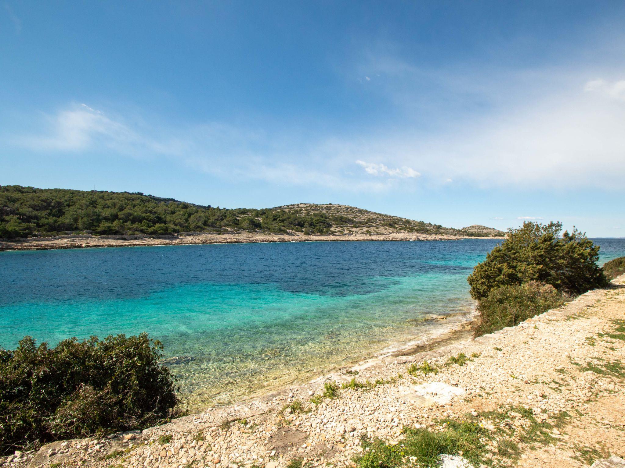 Uvala Mikavica: Single-family house "Petra", 2 storeys. 3 km from the centre of Žirje, in a quiet, sunny position, at the seaside, on the beach. Private: property 400 m2. Barbecue. In the house: internet access. Motor access to the house (30 m via unmade road). Parking (for 2 cars) at the house on the premises. Shop 4 km, restaurant 600 m, bus stop 53.6 km, ferry 4 km, pebble beach, rocky beach 10 m. Walking paths from the house 200 m, cycle lane 250 m. The tap water has no drinking water quality. Rain water (cistern). Ground floor is closed and not occupied. .