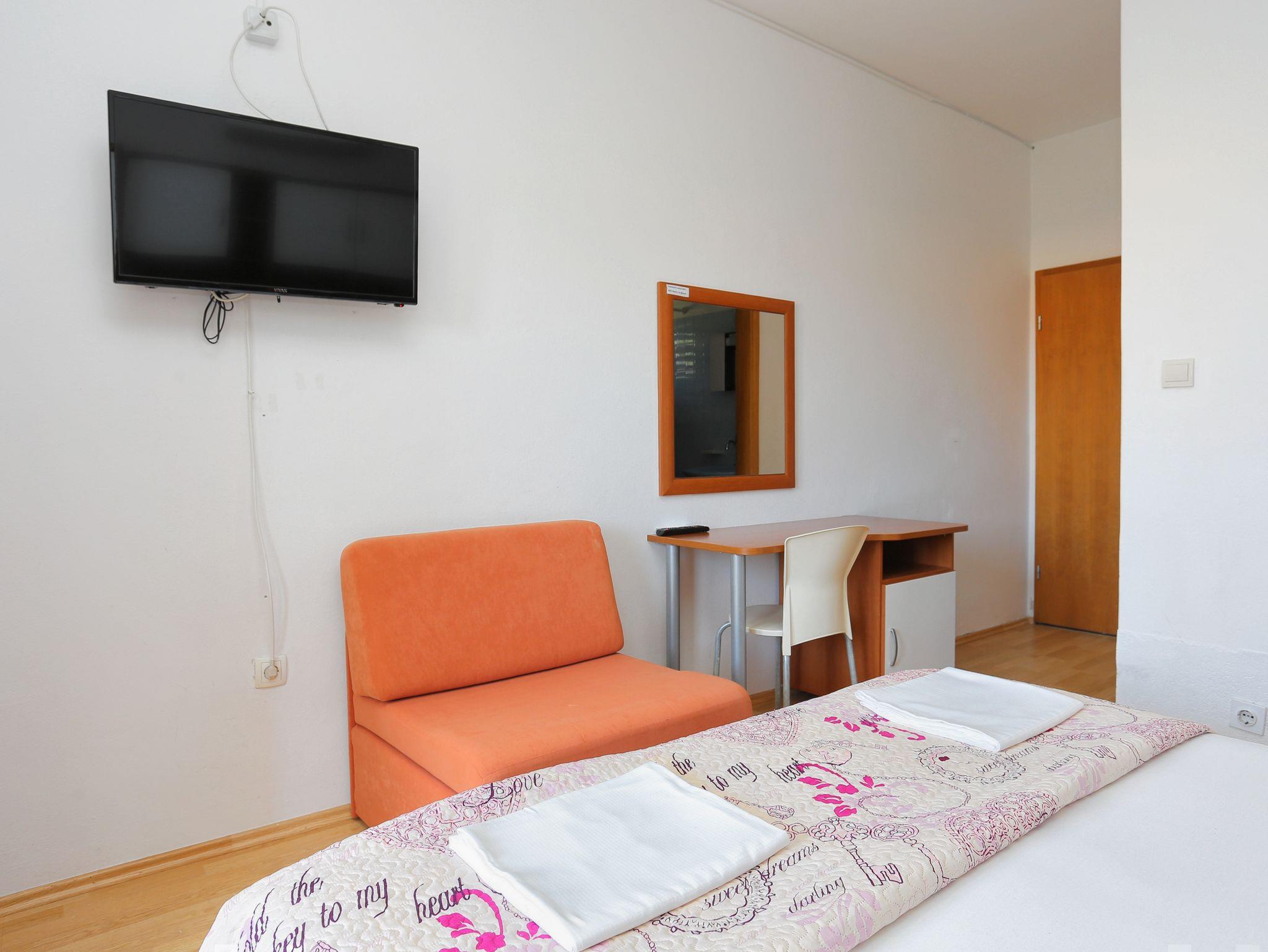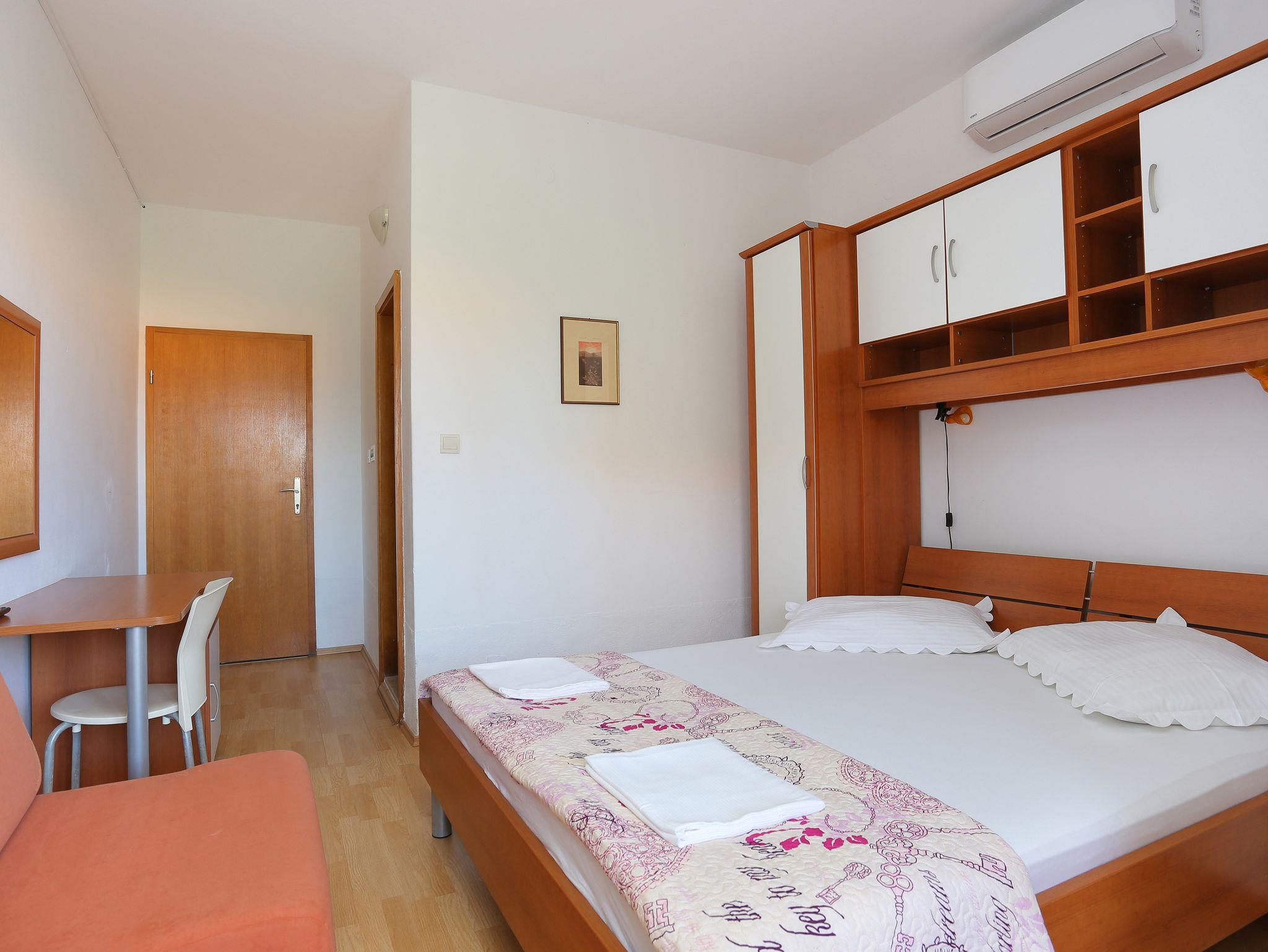 Studio bietet Platz für 3 Gäste. Die Betten sind in Schlafzimmern, die es 1 gibt, innerhalb einer Gesamtfläche von 18m2, angeordnet. Die Gäste haben eine eigene Terrasse zur Verfügung, auf der sie in warmen Sommernächten genießen können. IM PREIS INBEGRIFFEN: Kurtaxe, Endreinigung, Parkplatz, Internet, Bügeleisen, Bügelbrett, Föhn. VERBINDLICHE ZUSÄTZLICHE KOSTEN: Aufzahlung für Kurzaufenthalte (prozentualer Zuschlag pro Nächtigungsanzahl: 30% - 1, 20% - 2, 10% - 3). UNVERBINDLICHE ZUSÄTZLICHE KOSTEN: Klimatisierung (5,00 € pro Nacht). Die Verfügbarkeit zusätzlicher Dienstleistungen in Ihrem reservierten Termin und die Preise derselben (falls nicht aufgeführt) müssen im Voraus überprüft werden. Zusätzliche Dienstleistungen die in der Zahlungsaufforderung nicht aufgeführt sind werden direkt beim Vermieter bezahlt, angenommen der Gast nutzt auch diese. Ermäßigung auf den Grundpreis: Gratistag 14=13 (bei einem Aufenthalt von 14 Tagen oder mehr erhalten Sie einen Gratistag für den Aufenthalt bis 31.12.26).