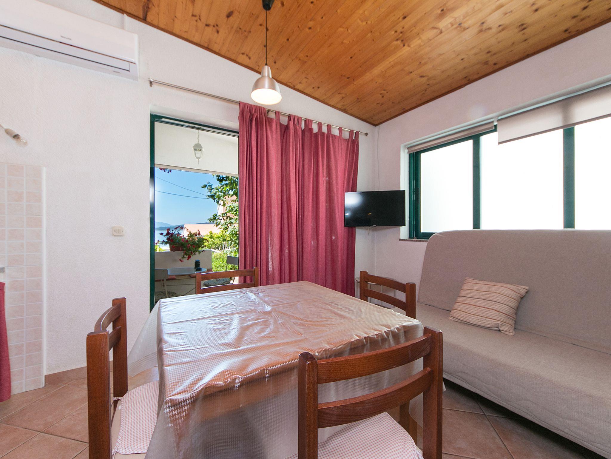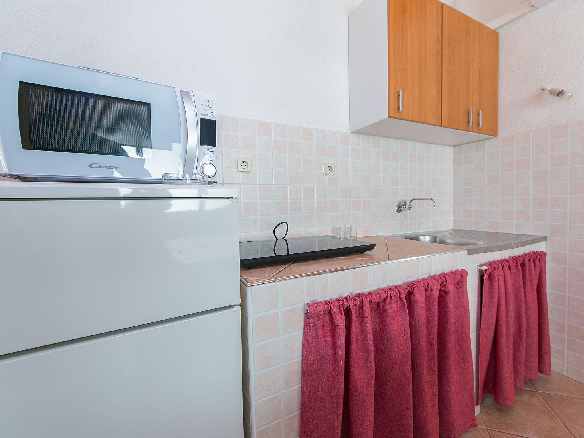 Studio bietet Platz für 3 Gäste. Die Betten sind in Schlafzimmern, die es 1 gibt, und in Esszimmer, innerhalb einer Gesamtfläche von 19m2, angeordnet. Die Gäste haben eine eigene Terrasse zur Verfügung, auf der sie in warmen Sommernächten genießen können. Das Studio-Apartment bietet Meerblick. Für vollen Genuss und Entspannung gibt es einen privaten Grill für Gäste dieser Unterkunft. IM PREIS INBEGRIFFEN: Kurtaxe, Endreinigung, Parkplatz, Internet, Bügeleisen, Bügelbrett, Föhn. VERBINDLICHE ZUSÄTZLICHE KOSTEN: Aufzahlung für Kurzaufenthalte (prozentualer Zuschlag pro Nächtigungsanzahl: 30% - 1, 20% - 2, 10% - 3). UNVERBINDLICHE ZUSÄTZLICHE KOSTEN: Klimatisierung (5,00 € pro Nacht). Die Verfügbarkeit zusätzlicher Dienstleistungen in Ihrem reservierten Termin und die Preise derselben (falls nicht aufgeführt) müssen im Voraus überprüft werden. Zusätzliche Dienstleistungen die in der Zahlungsaufforderung nicht aufgeführt sind werden direkt beim Vermieter bezahlt, angenommen der Gast nutzt auch diese. Ermäßigung auf den Grundpreis: Gratistag 14=13 (bei einem Aufenthalt von 14 Tagen oder mehr erhalten Sie einen Gratistag für den Aufenthalt bis 31.12.26).