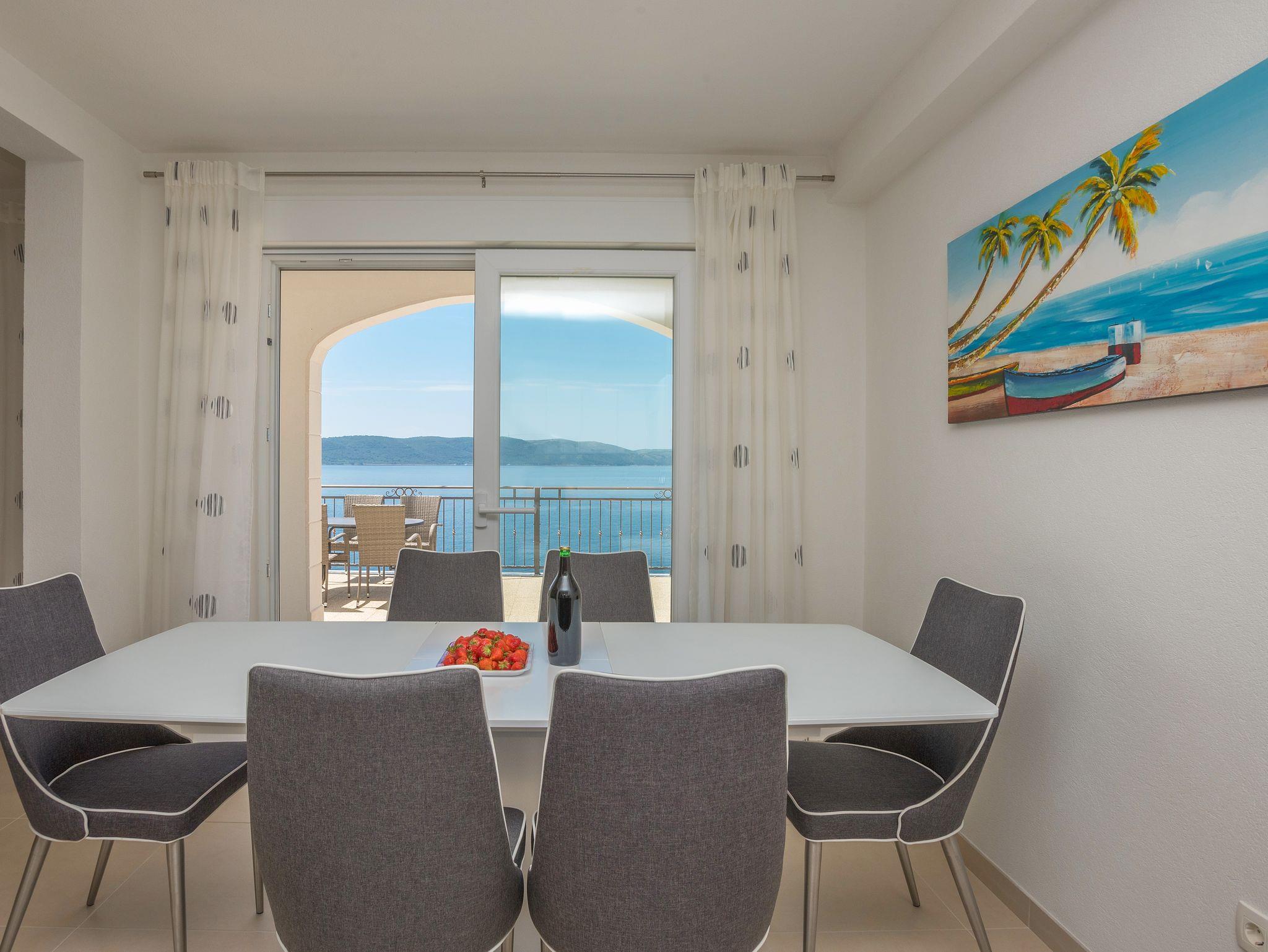 Ferienwohnung bietet Platz für 5 Gäste. Die Betten sind in Schlafzimmern, die es 3 gibt, innerhalb einer Gesamtfläche von 96m2, angeordnet. Die Gäste haben eine eigene Terrasse zur Verfügung, auf der sie in warmen Sommernächten genießen können. Das Apartment bietet Meerblick. Es ist erlaubt, Speisen auf dem Gemeinschafts-Grill vorzubereiten. IM PREIS INBEGRIFFEN: Kurtaxe, Endreinigung, Klimatisierung, Parkplatz, Internet, Bügeleisen, Bügelbrett, Föhn. Die Verfügbarkeit zusätzlicher Dienstleistungen in Ihrem reservierten Termin und die Preise derselben (falls nicht aufgeführt) müssen im Voraus überprüft werden. Zusätzliche Dienstleistungen die in der Zahlungsaufforderung nicht aufgeführt sind werden direkt beim Vermieter bezahlt, angenommen der Gast nutzt auch diese.