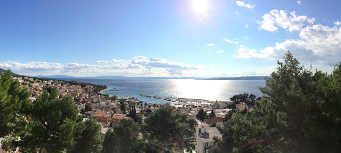 Meerblick zwischen Pinien - das komfortable Haus liegt direkt oberhalb des bekannten Badeortes Baska Voda. 3.000 qm Grundstück garantieren trotz Stadtnähe Ruhe und Erholung - sowie einen malerischen Blick auf die kroatische Adria.